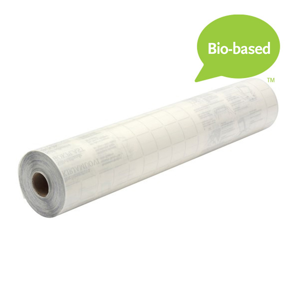 The self-adhesive, glossy protection film is made of bio-based plastic (75% sugar cane) and water-based acrylic adhesive.
