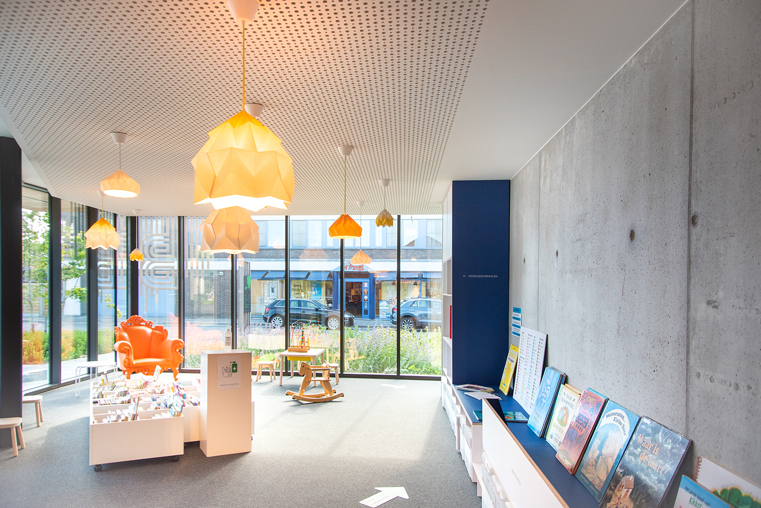 After almost 30 years, Beernem's library was due for a thorough makeover and a future-oriented shift from a purely collection-oriented library to an experience library. With new lighting, customized furniture and new library shelving, a contemporary knowledge center was created where visitors are given a warm welcome. A new construction provides extra space, especially for the young readers. In the clearly legible interior, the visitor will find his way automatically thanks to a clear layout and signage. The use of color and materials with a Scandinavian touch brings visuel rest, but also homely cosiness to the lively library.