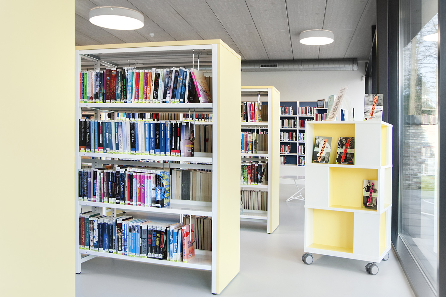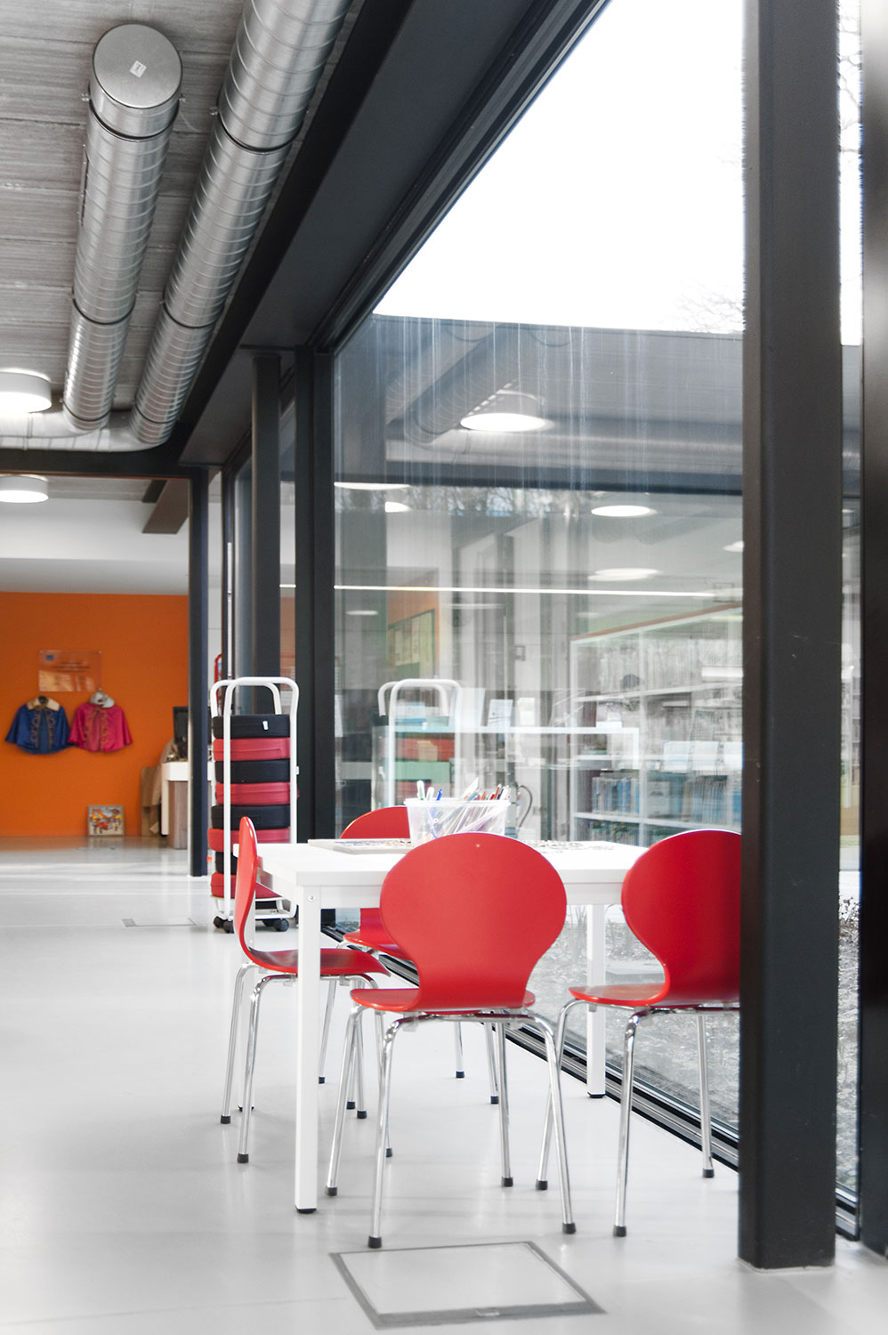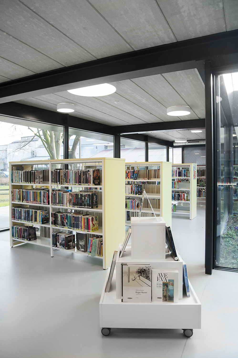 Drongen library was housed in a rented building that no longer met the acquirements of a contemporary library. The new location offers much more usable space, so lower shelving could be used which improves the clarity and sense of space.