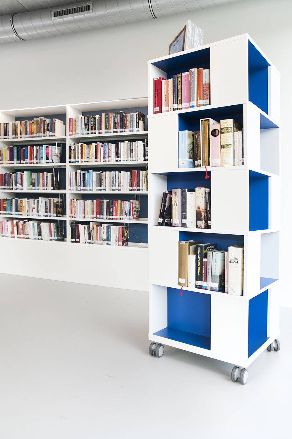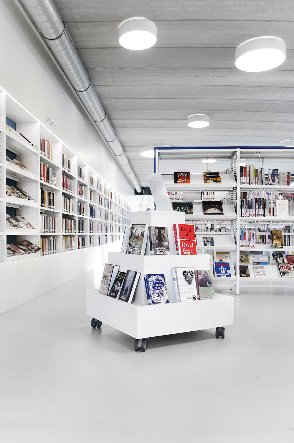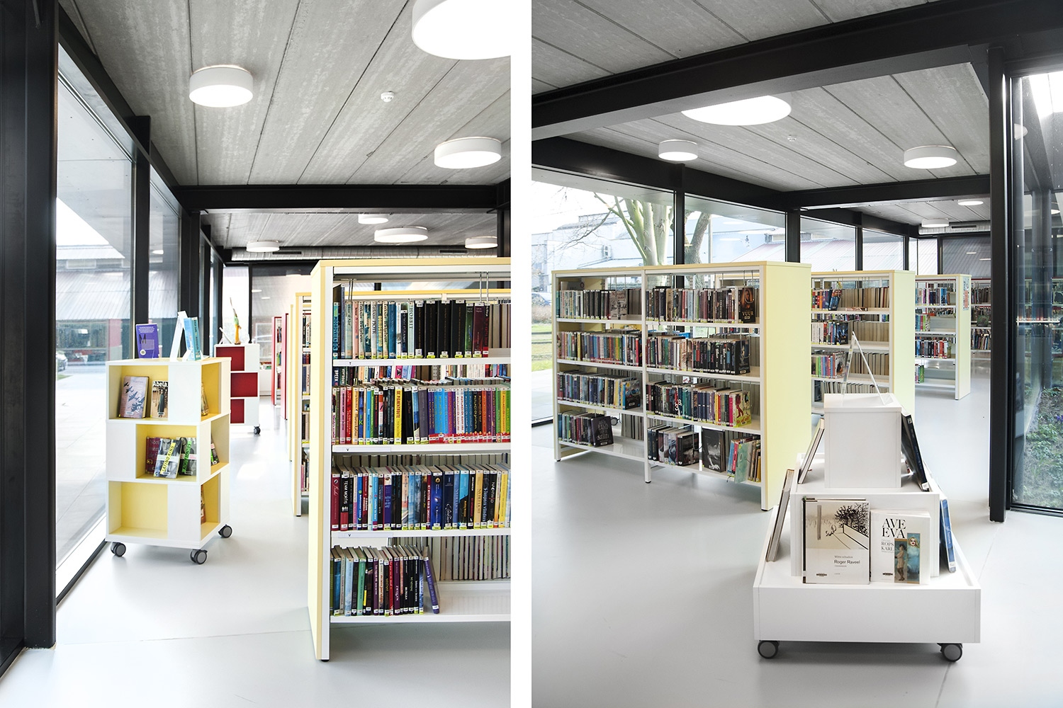 Drongen library was housed in a rented building that no longer met the acquirements of a contemporary library. The new location offers much more usable space, so lower shelving could be used which improves the clarity and sense of space.