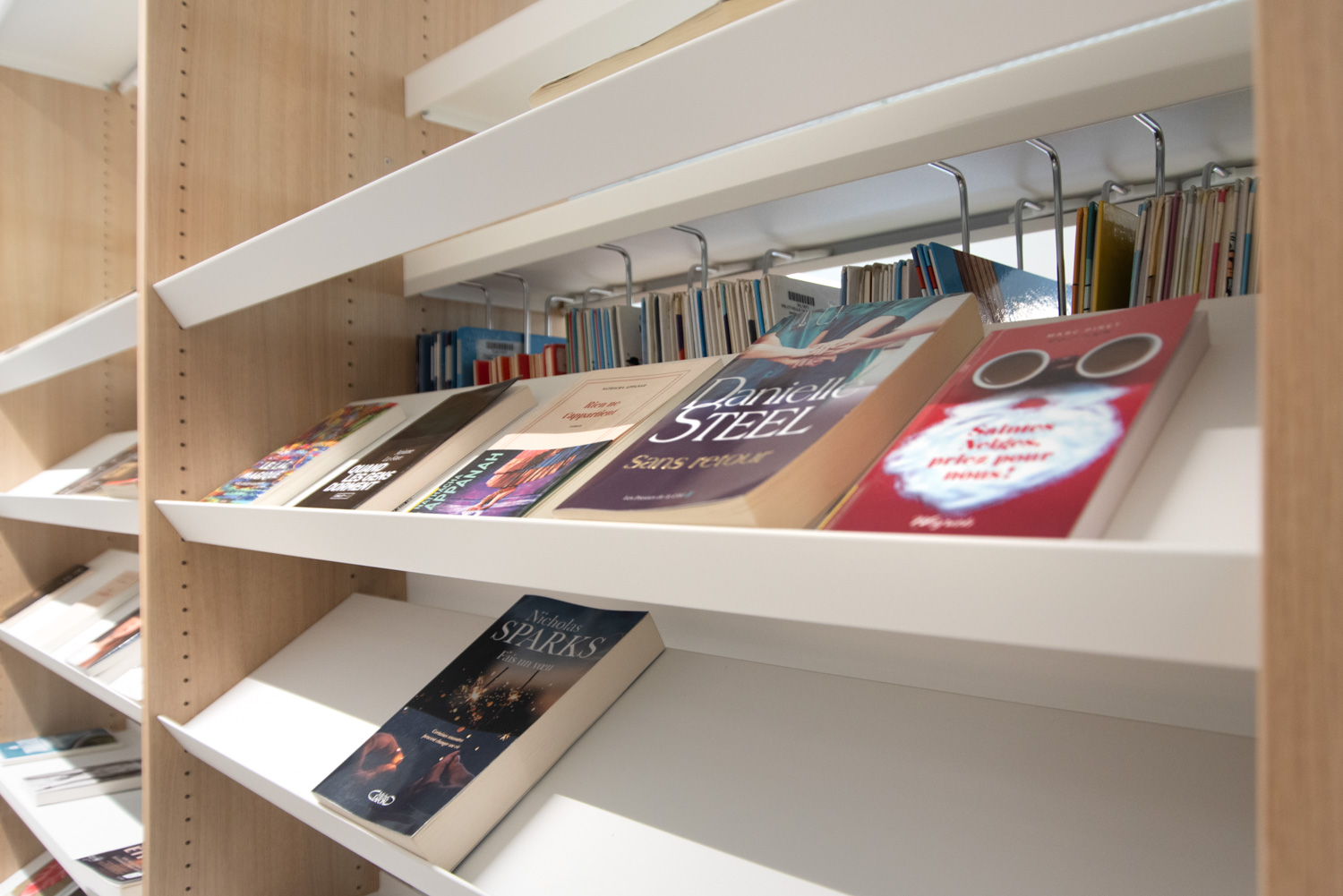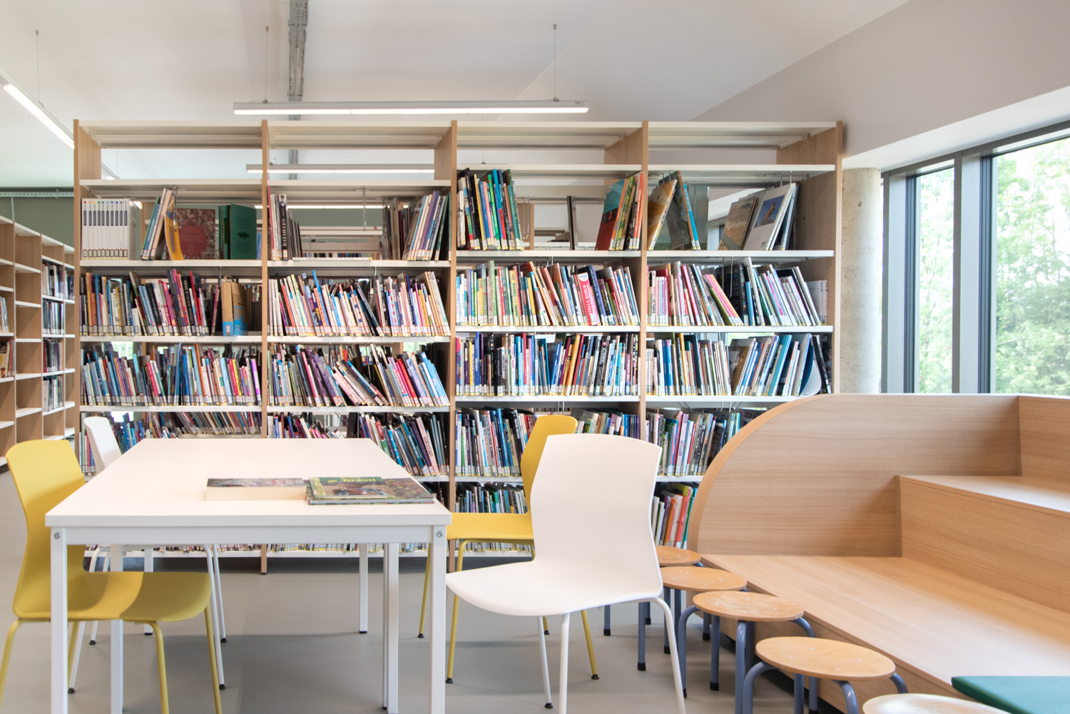 Librarians Jenny Guillaume and Isabelle Prévost describe the library as a pleasant place to stay: “The library is very user-friendly. Families and school children enjoy the manageable and accessible interior of the library. We have gathered books and other media for teens and adults in the same room to optimize the space utilisation and provide easier access. In the children’s library, we have found that our special podium is very popular.”