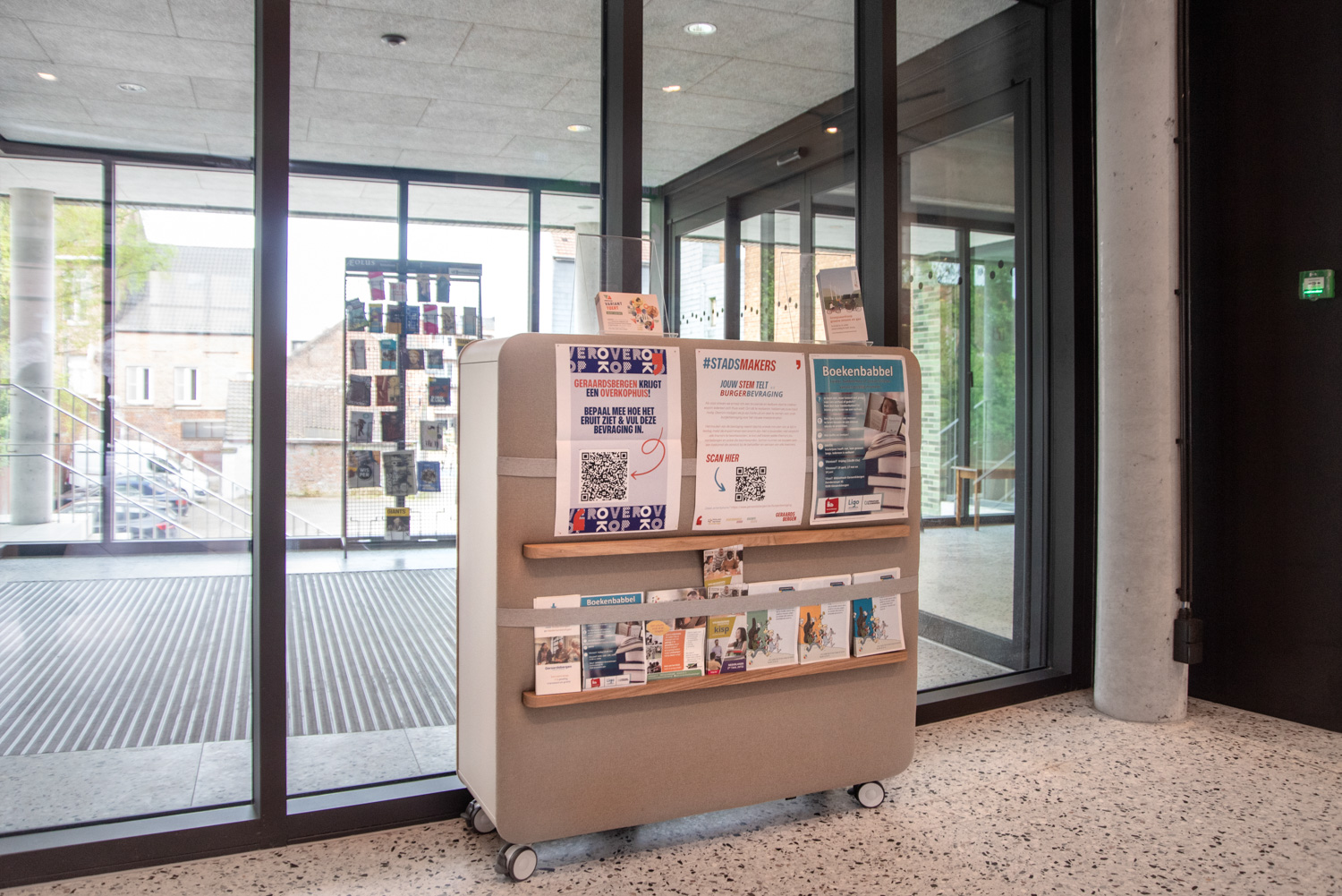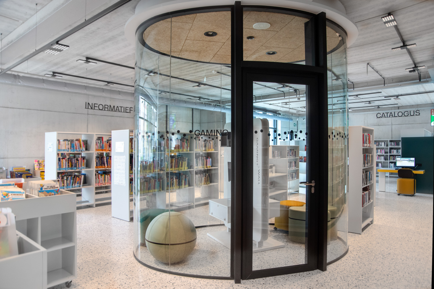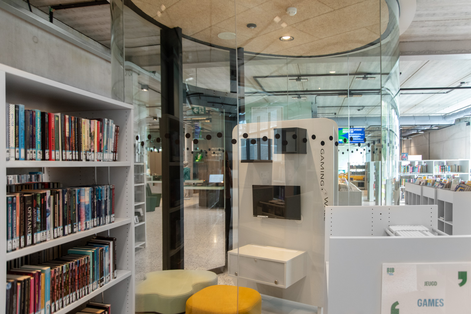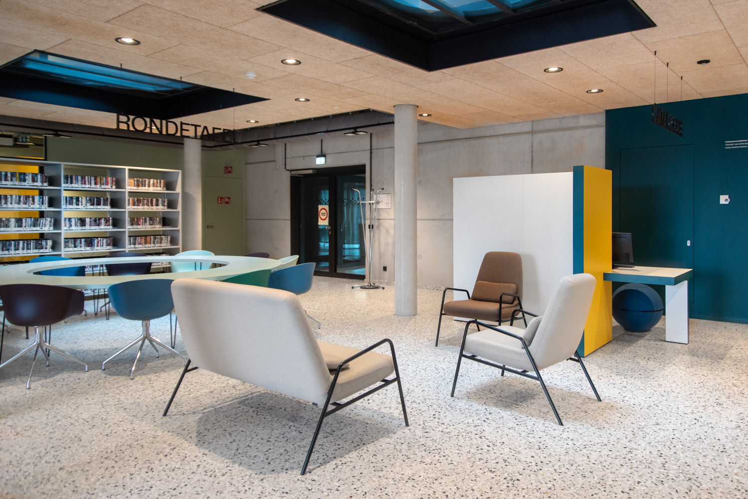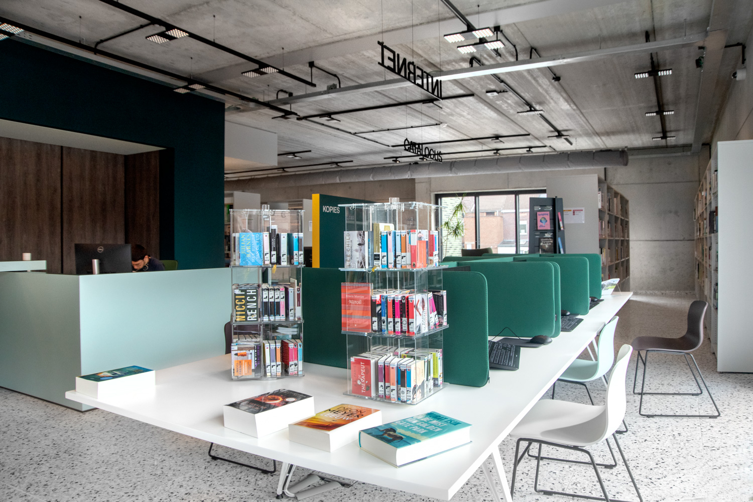 Light and space are central elements to the new library in Geraardsbergen. The library is more than just a place to borrow books; it is a space for reading, studying, playing games and much more. Visitors can choose from a variety of seating options: tables and chairs for working or studying, cosy and comfortable reading armchairs to relax in and poufs for quickly consulting a book.