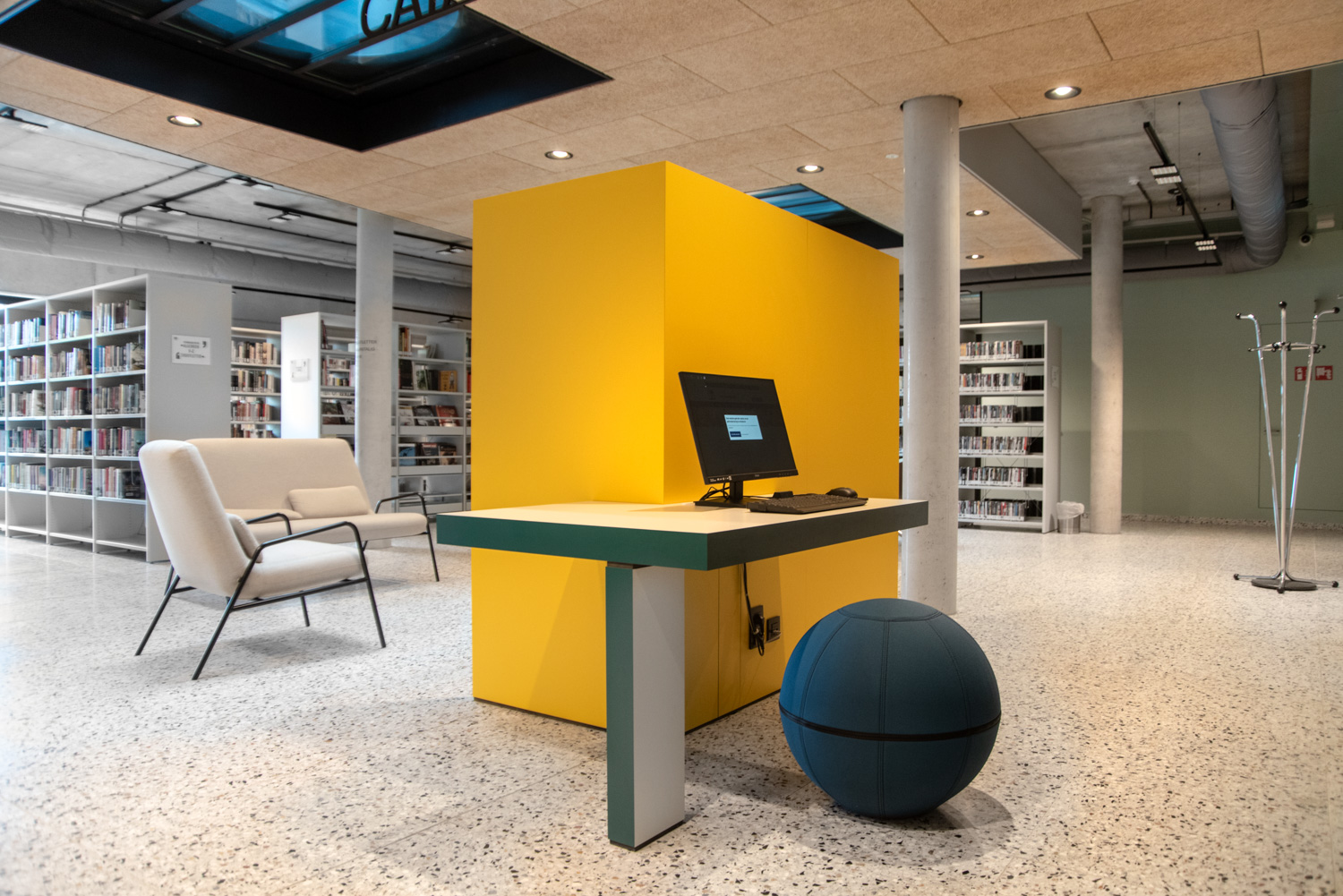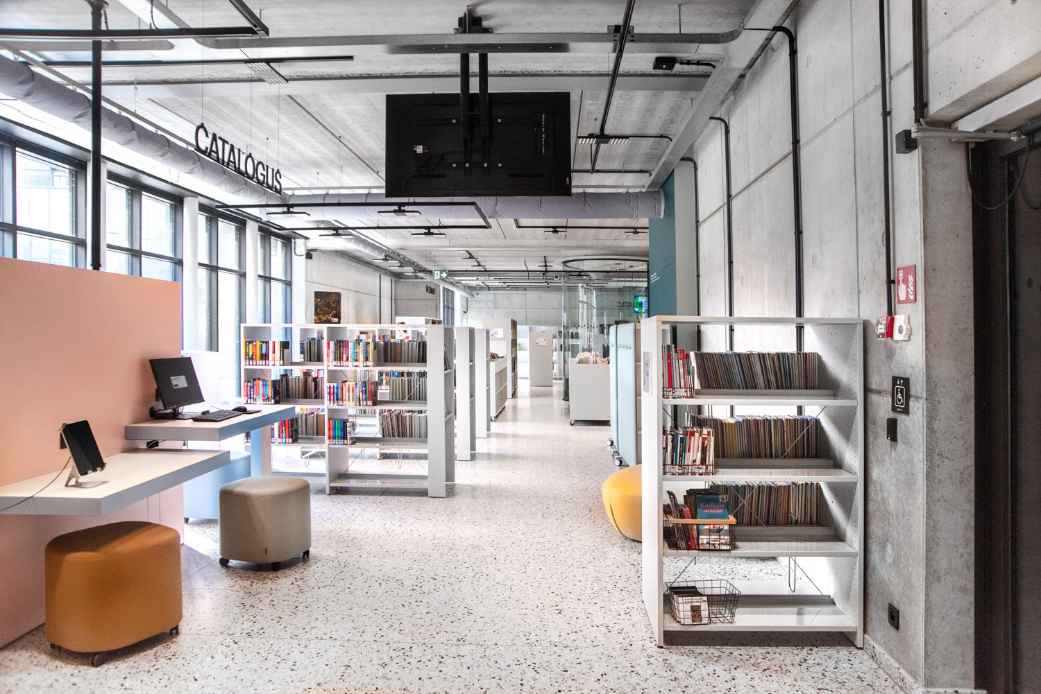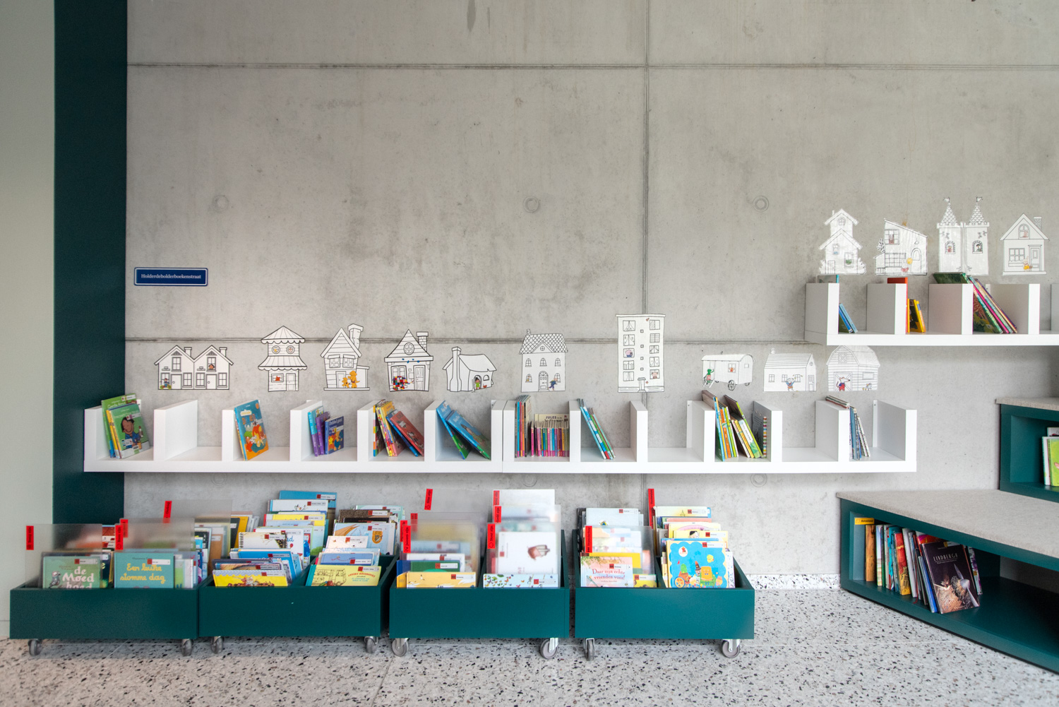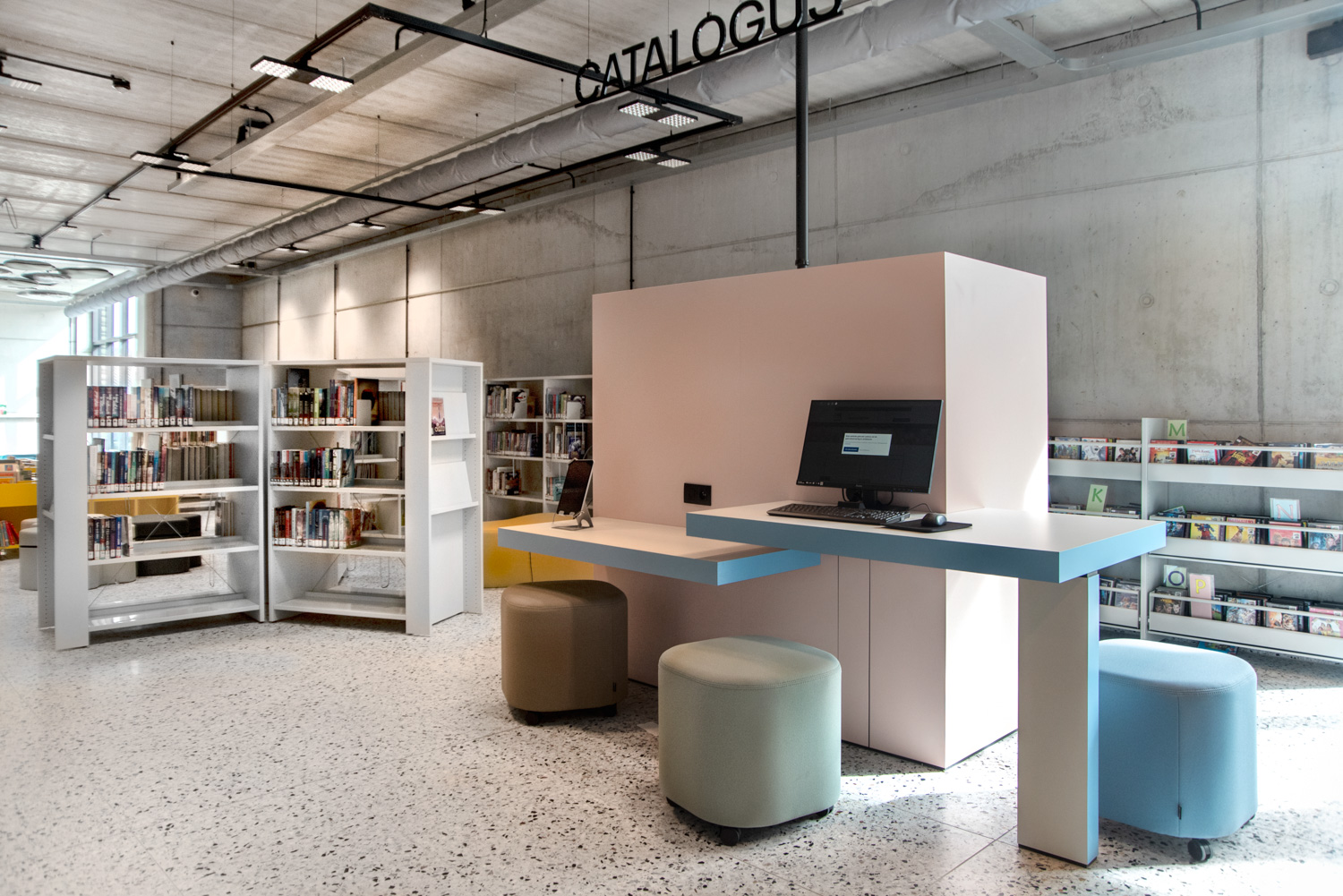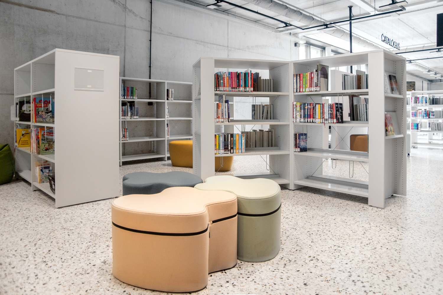 Light and space are central elements to the new library in Geraardsbergen. The library is more than just a place to borrow books; it is a space for reading, studying, playing games and much more. Visitors can choose from a variety of seating options: tables and chairs for working or studying, cosy and comfortable reading armchairs to relax in and poufs for quickly consulting a book.