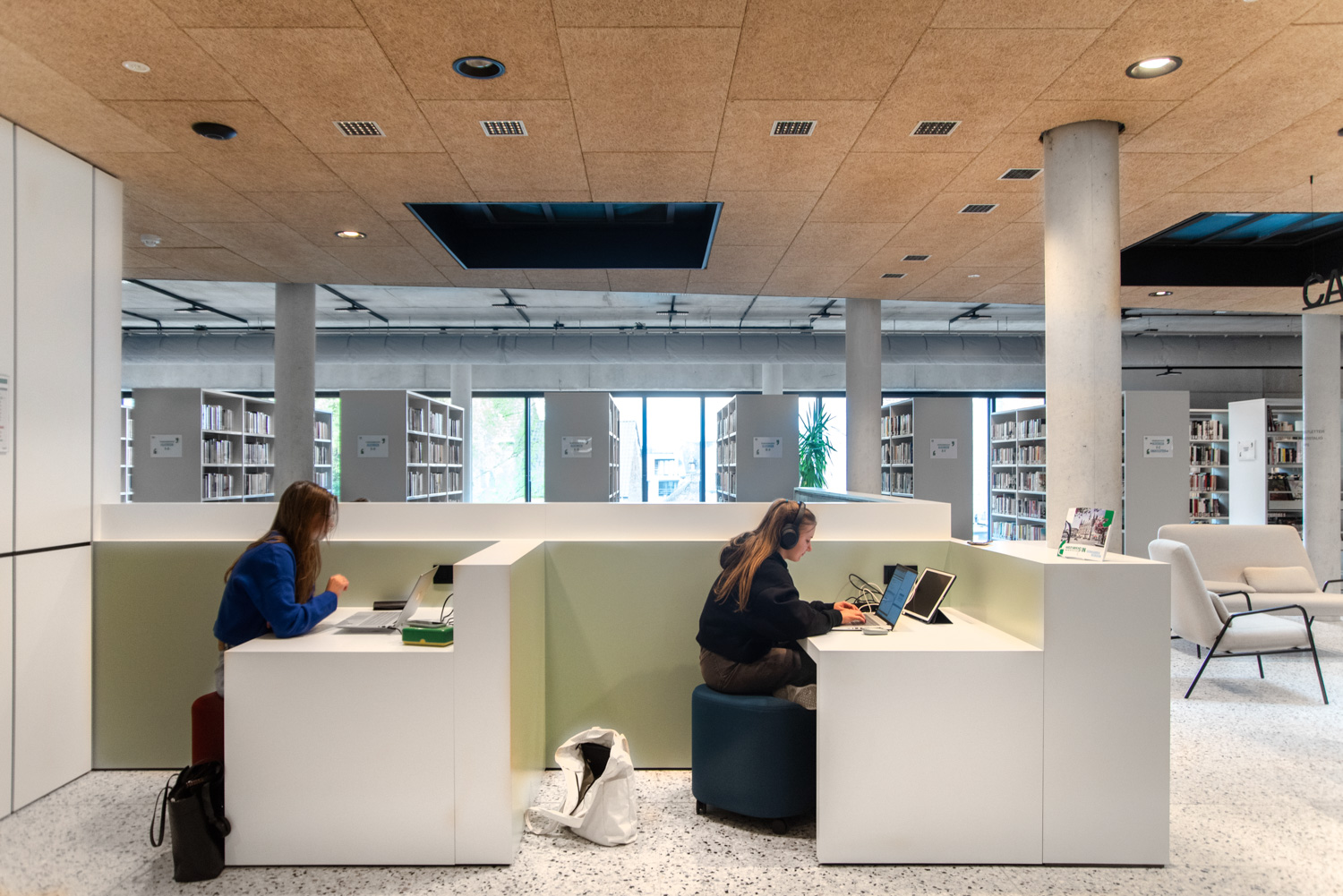 Librarian Paul De Taeye says: “The old library was completely worn out and no longer met the most basic safety and comfort standards. The new library is more spacious and airier, with more seating and study areas. Special attention was paid to providing sufficient rest and seating areas, creating a greater sense of space and achieving uniformity in the design. From the almost unanimously positive reactions, we can conclude that this has been a success.”