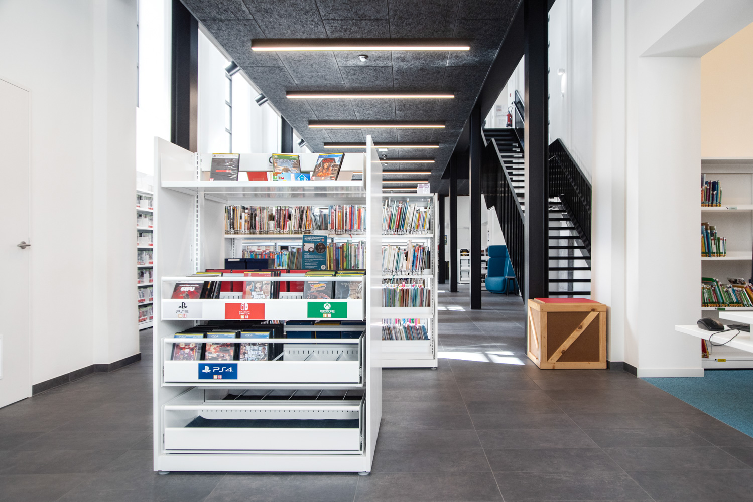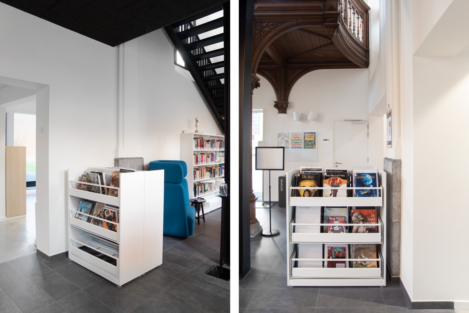 Librarian Katrien Schroyens is proud: “The library users are very enthusiastic about the new library. Especially the appearance and seating elements are very appealing. A frequently heard reaction is that customers want to stay longer in the library. Thanks to its cosy interior, the library has become a public living room in the center of the municipality.”