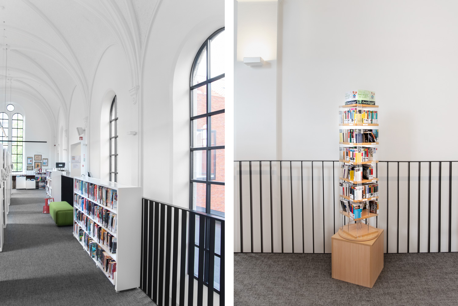 The new library has now been placed in what was the former monastry and Winter Chapel placed in the centre of Hamme. The renovated building has a lot of charm and the position of the columns and pillars in the chapel have been decisive for the interior design.