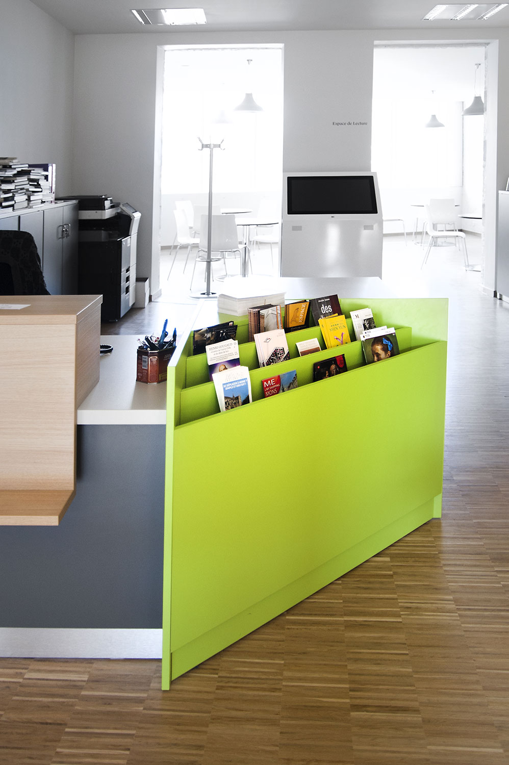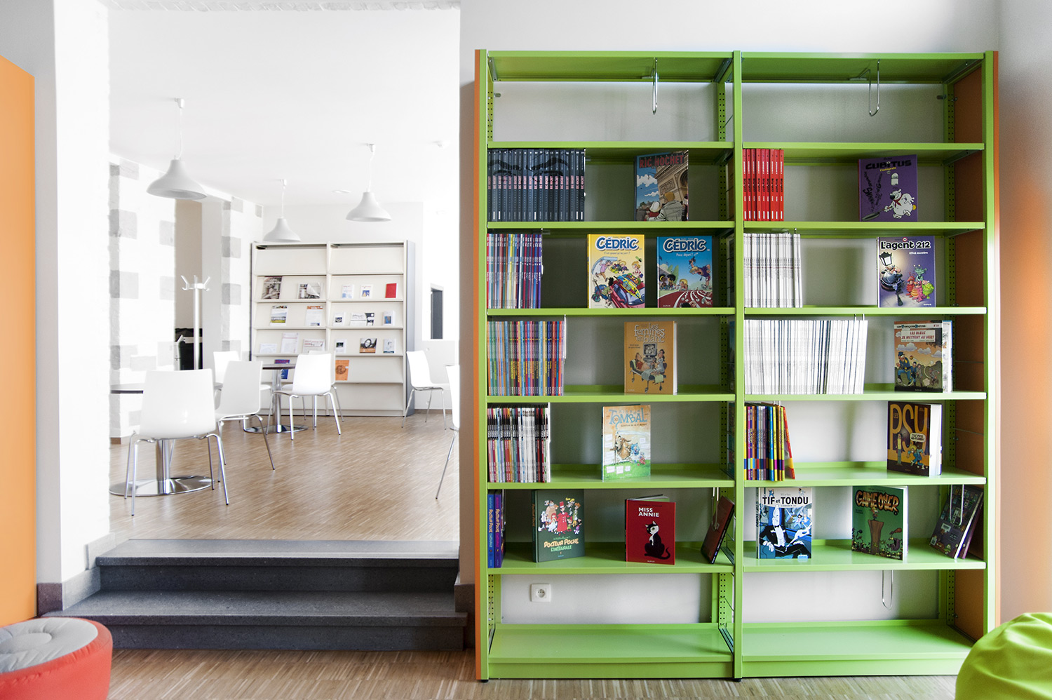 The focus is on accessibility and a welcoming interior with, next to the Uniflex shelving, study tables, comfortable seating, a cosy comics corner and room for expositions. The light, contemporary interior allows the reader to enjoy literature, but equally offers space for encounters and experiences. With success: visitors have embraced the library as the new hotspot of Mons, in 2015 the Cultural Capital of Europe.