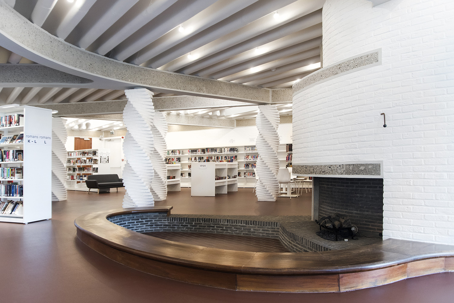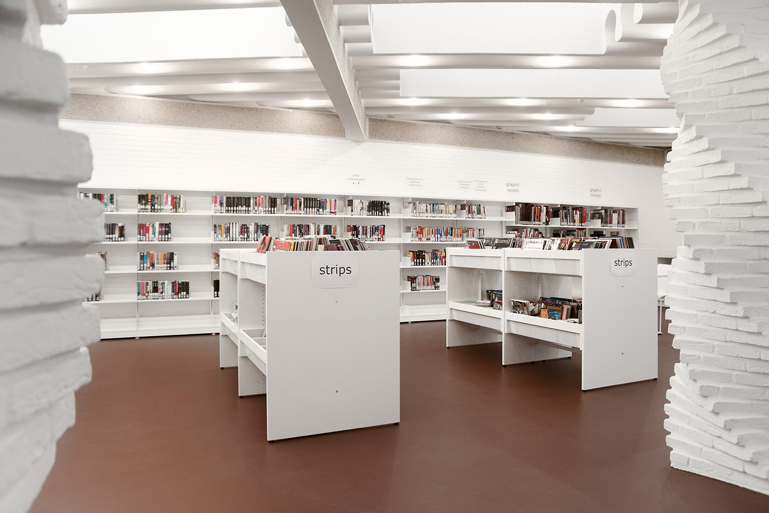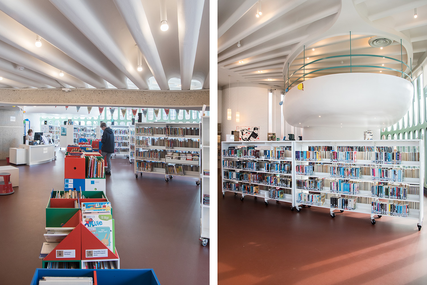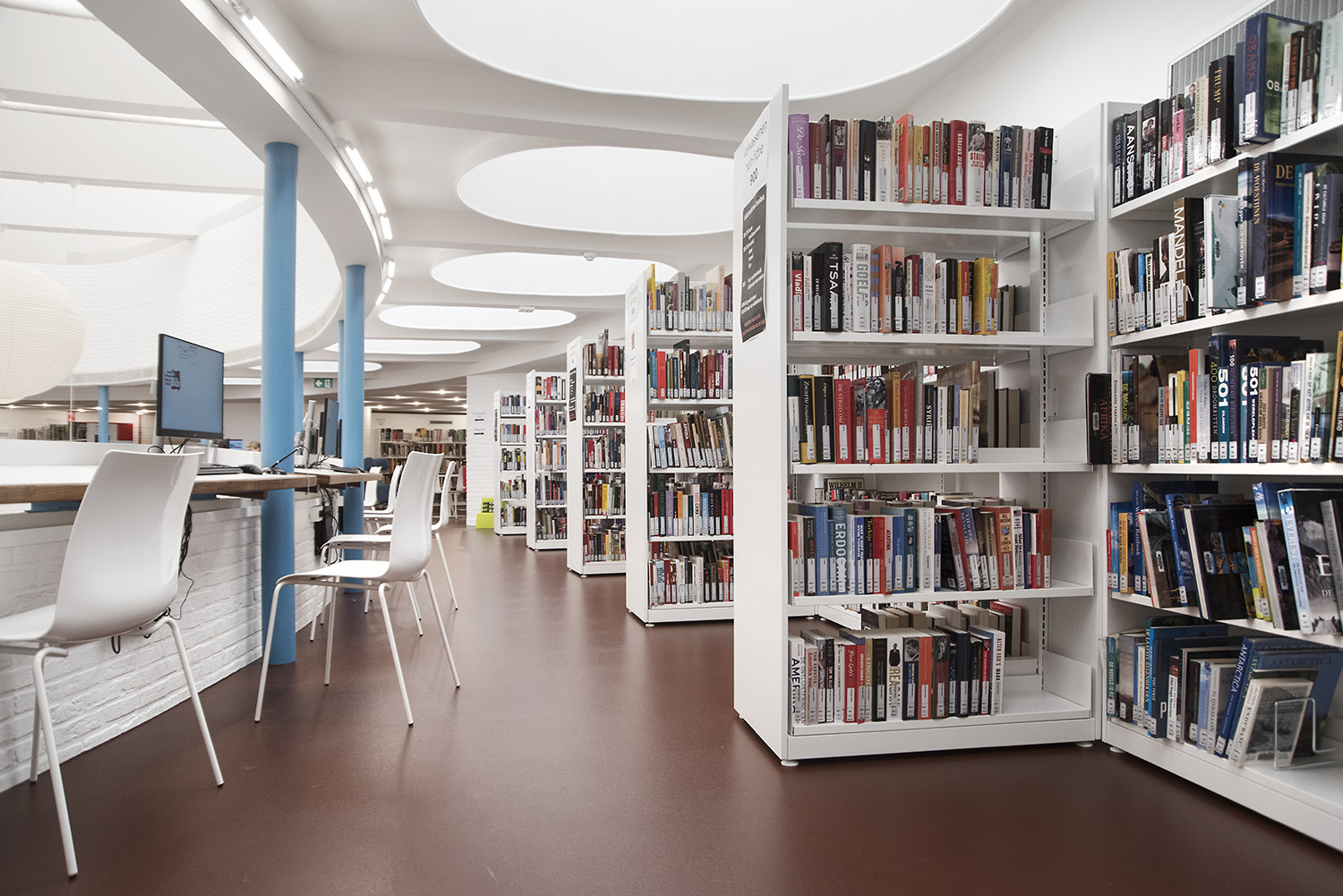 The aim of Braem was to create a building with a playful and organically shaped architecture that works as a cultural magnet for young and old. With this philosophy in mind, we have designed the new interior of the library.