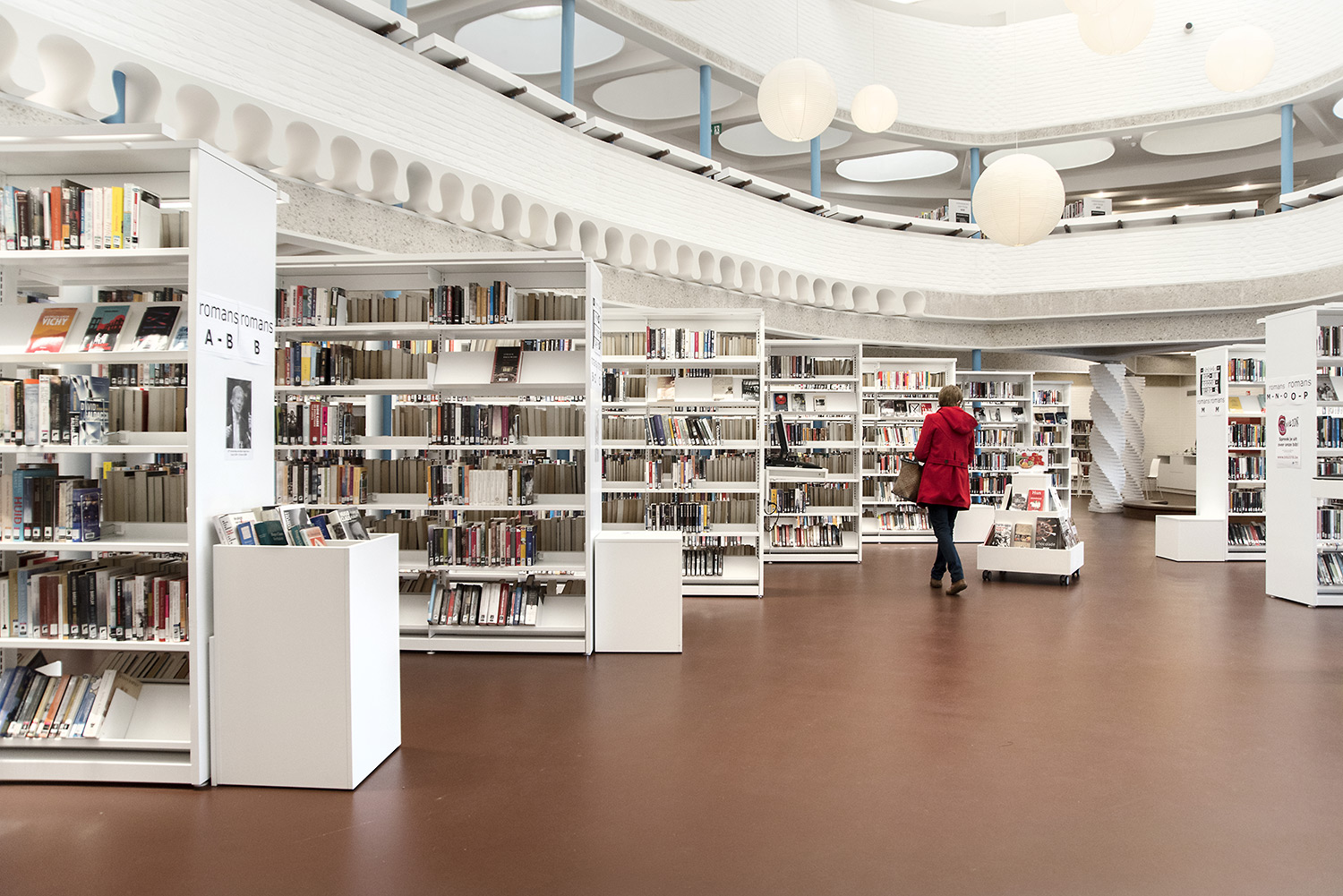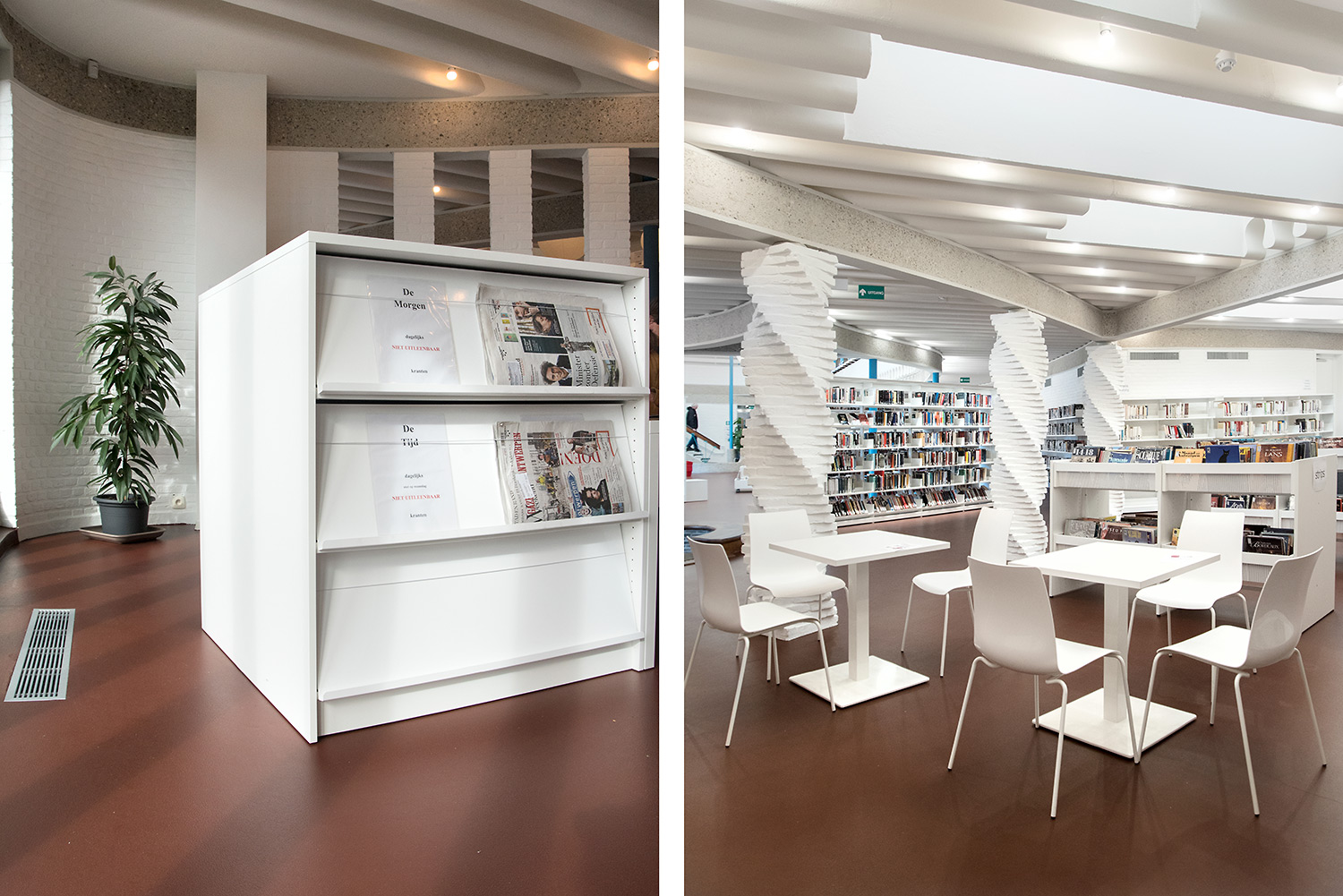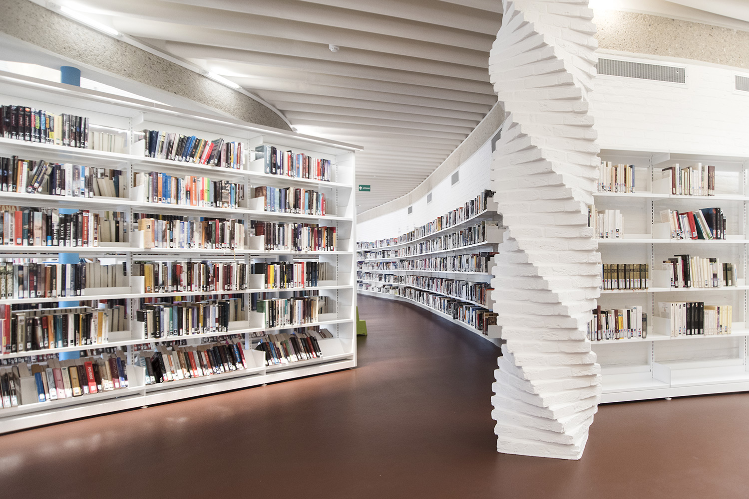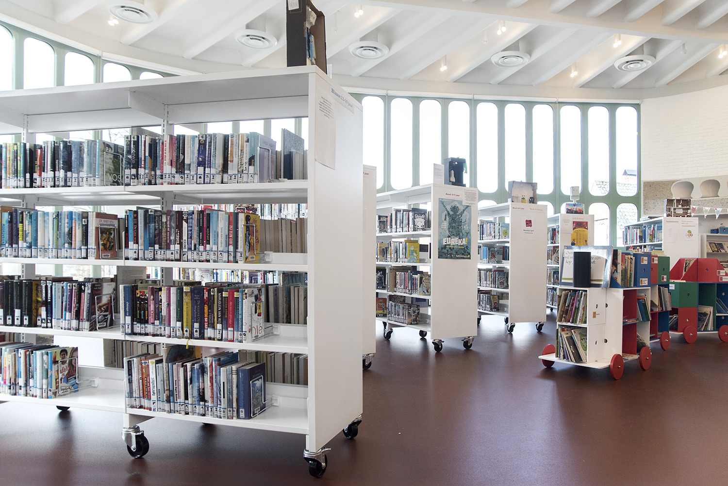The aim of Braem was to create a building with a playful and organically shaped architecture that works as a cultural magnet for young and old. With this philosophy in mind, we have designed the new interior of the library.