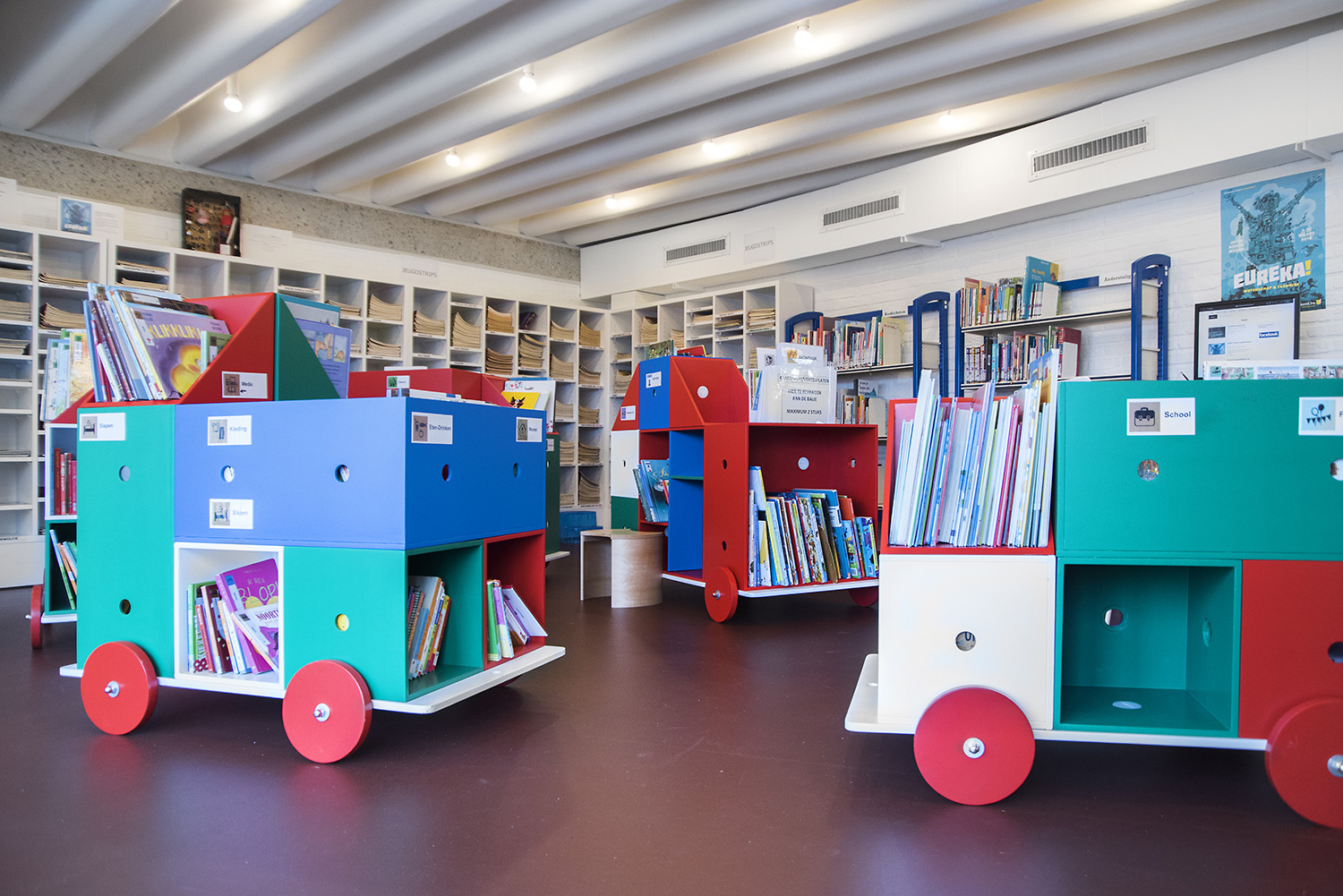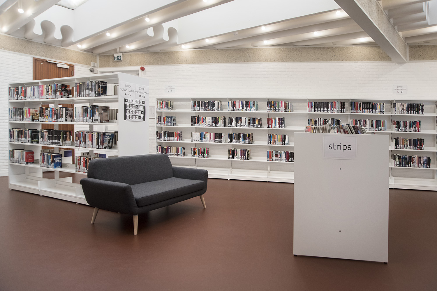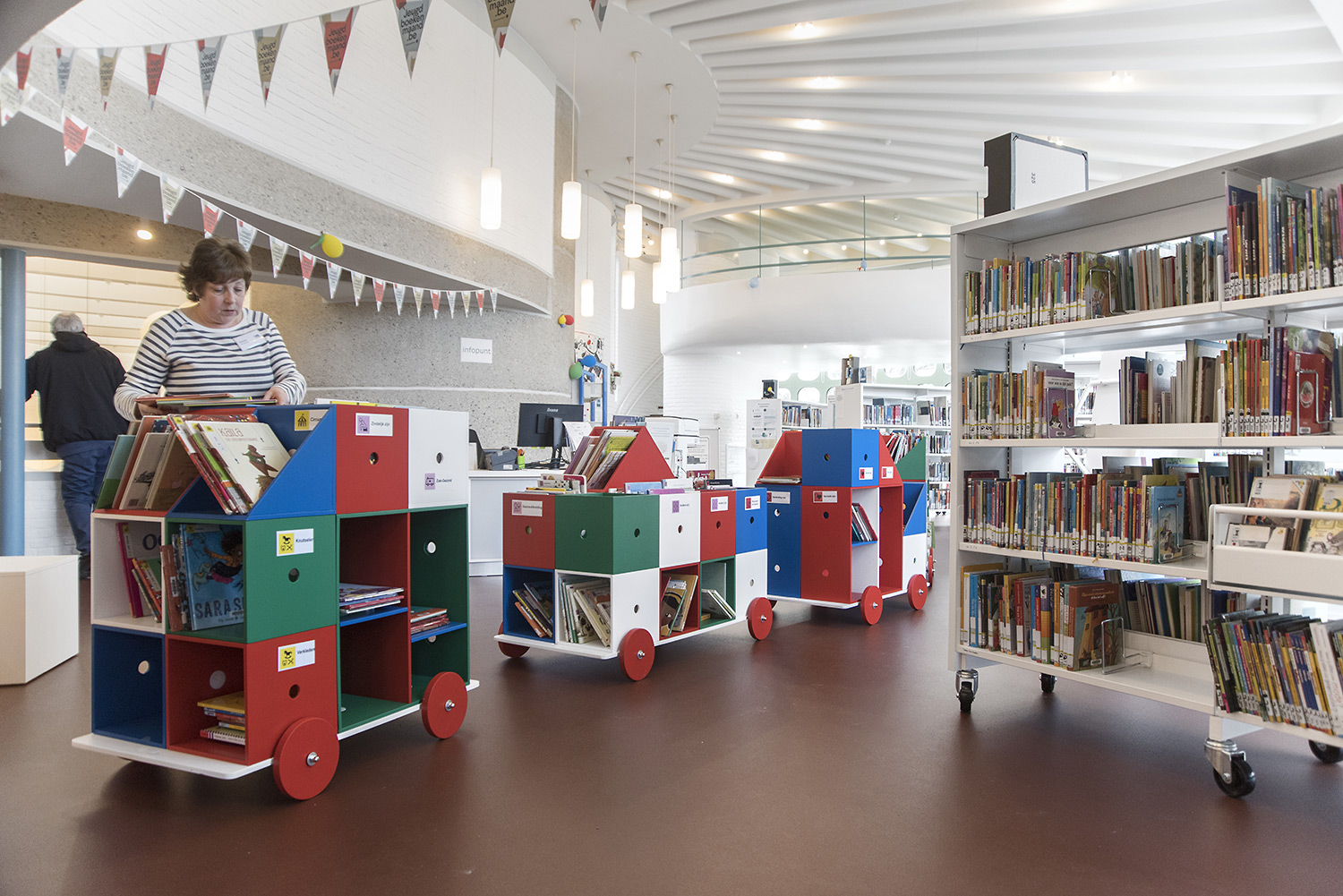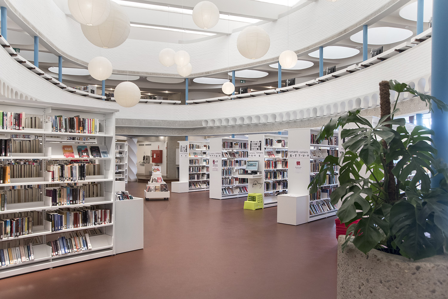 The aim of Braem was to create a building with a playful and organically shaped architecture that works as a cultural magnet for young and old. With this philosophy in mind, we have designed the new interior of the library.