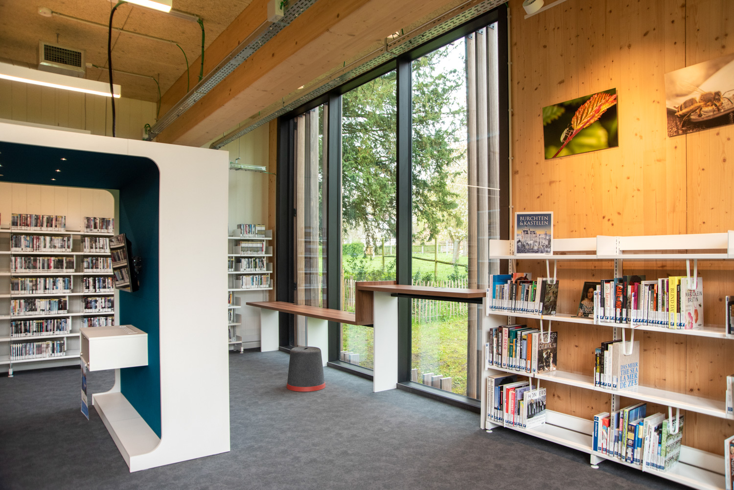 Located in the renovated De Viron country house, which also houses various leisure facilities, the library has become an attractive place with a distinct character. On the ground floor, there is an area with magazines, a reading corner and a toy selection. Next to the entrance, visitors will come across a fablab with a 3D printer. The youth section is located in the basement, and the "quiet zone” for adults is on the second floor.