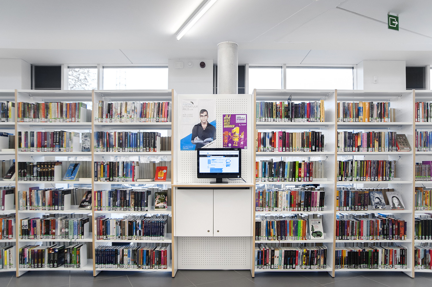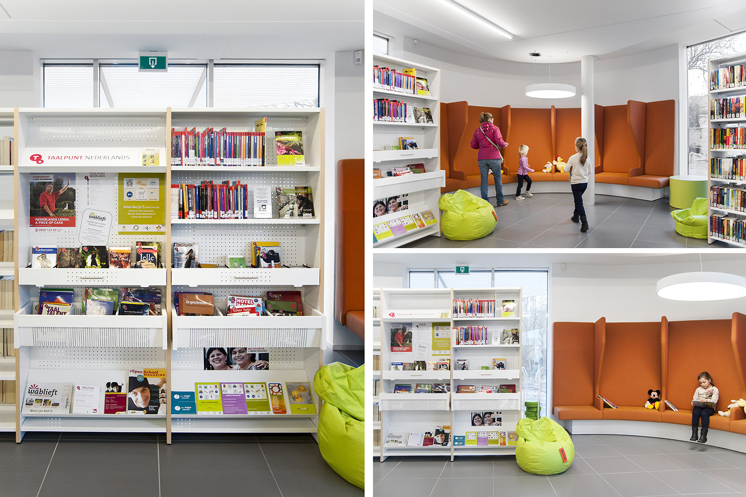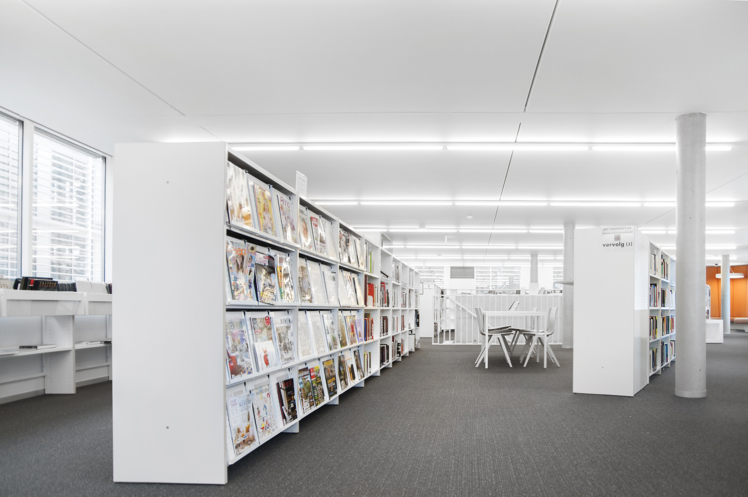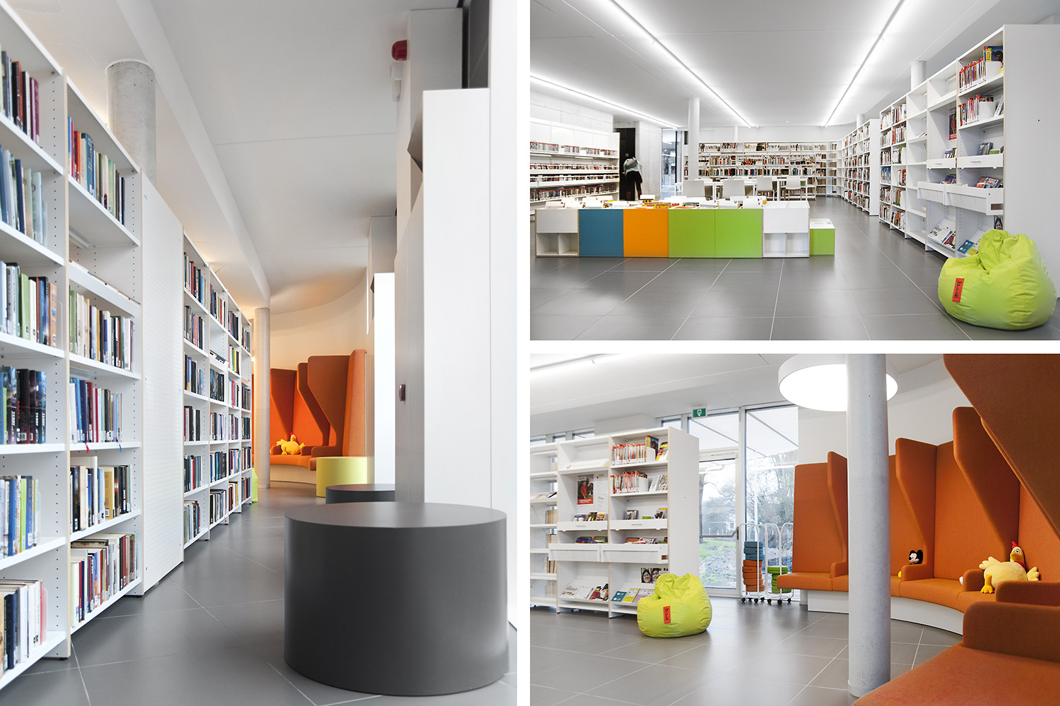 The new library of Ternat was designed as a meeting point and knowledge centre where visitors get access to information through all kinds of media. The bright interior invites to meet, work and relax. In the fully glazed library the shelving are lined out as a second facade around polyvalent open spaces. Quiet zones are separated from lively areas. RFID and e-counters enable the librarians to spent more time with visitors. With focus on accessibility, ergonomics, and customer-friendly service, this contemporary library makes culture and information within reach to all.