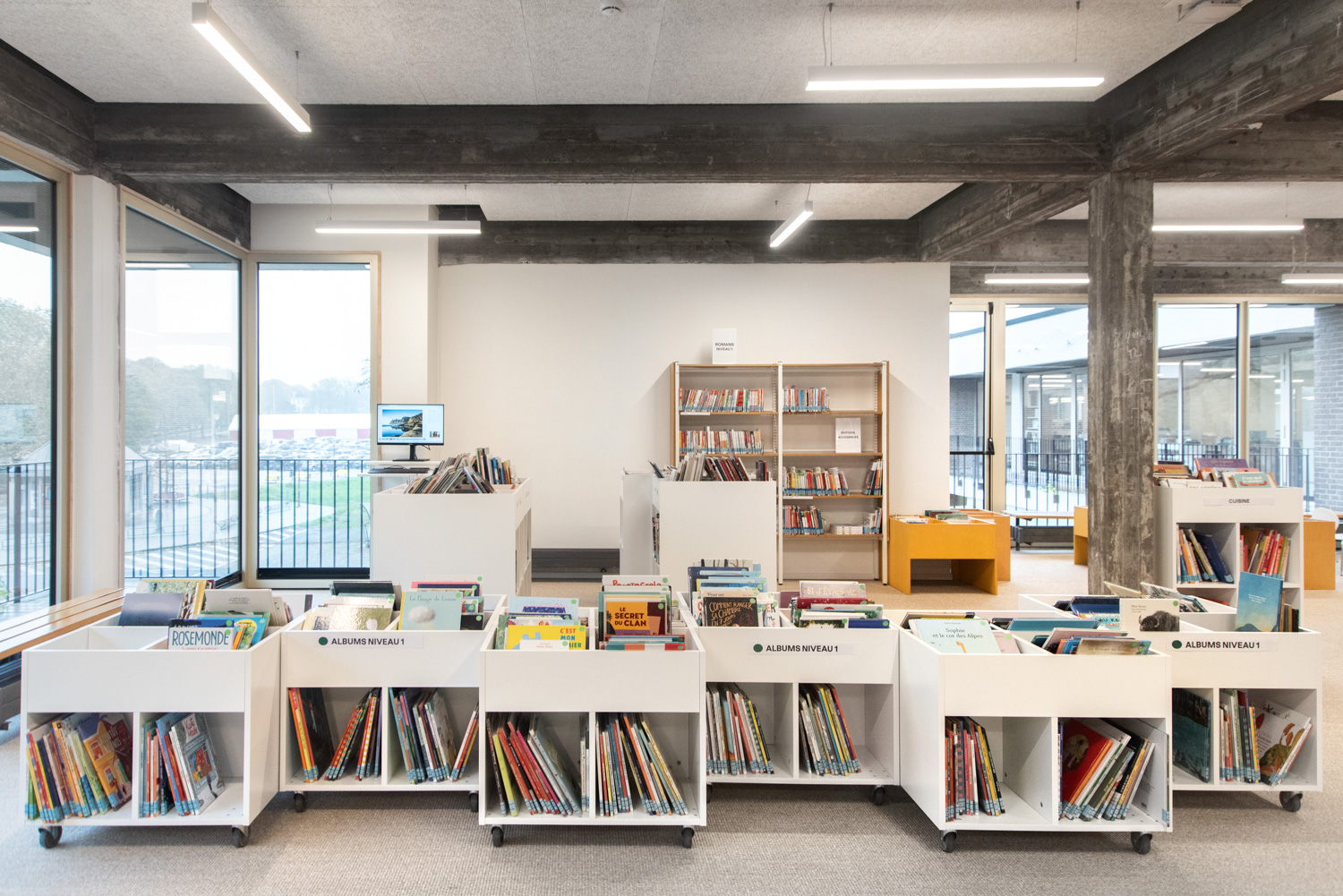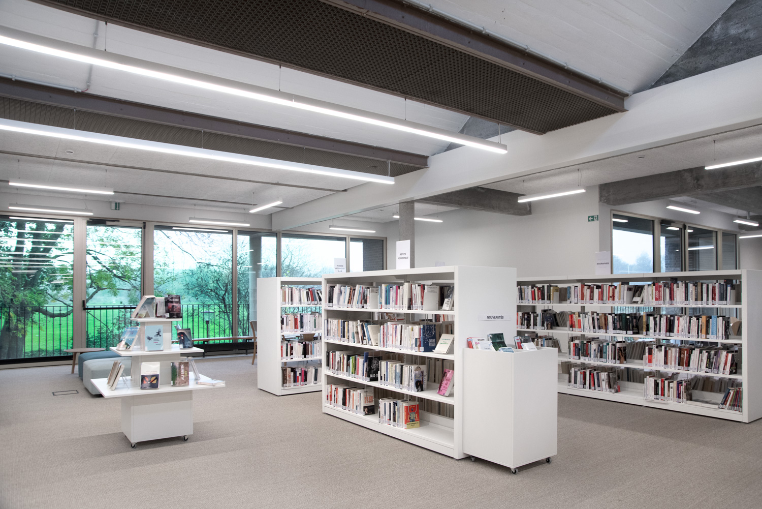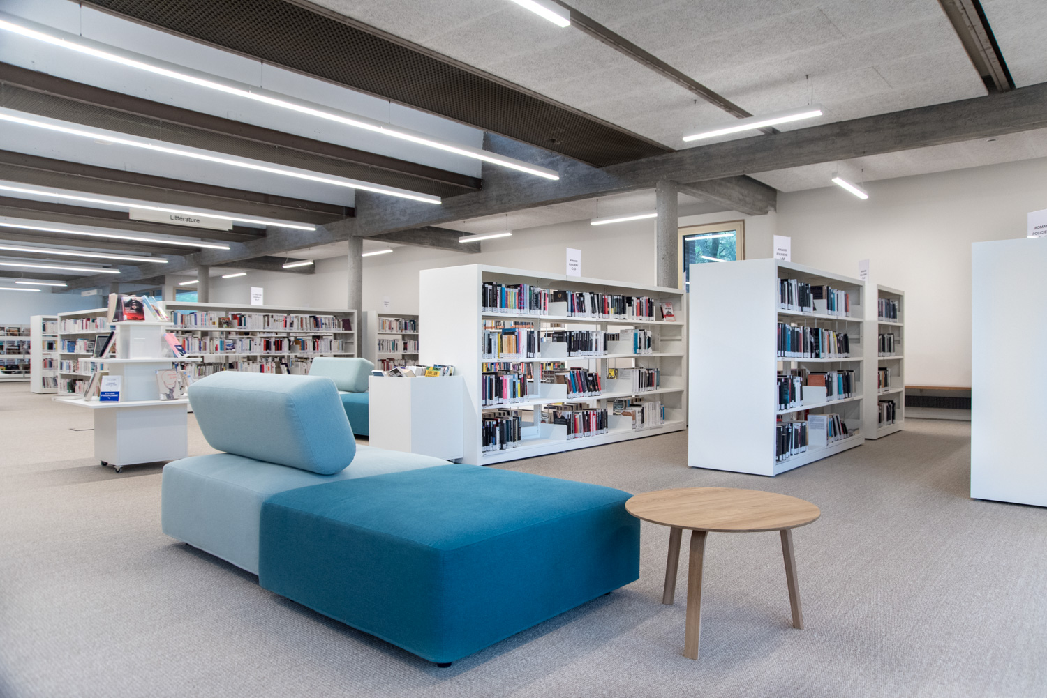 The new library is located in a fully renovated, bright and welcoming area within a cultural centre. It offers a dynamic and open environment where visitors feel instantly at home. With modern furniture and a carefully considered arrangement of shelving systems, the space ensures a seamless flow of movement throughout its spacious, light-filled interior.