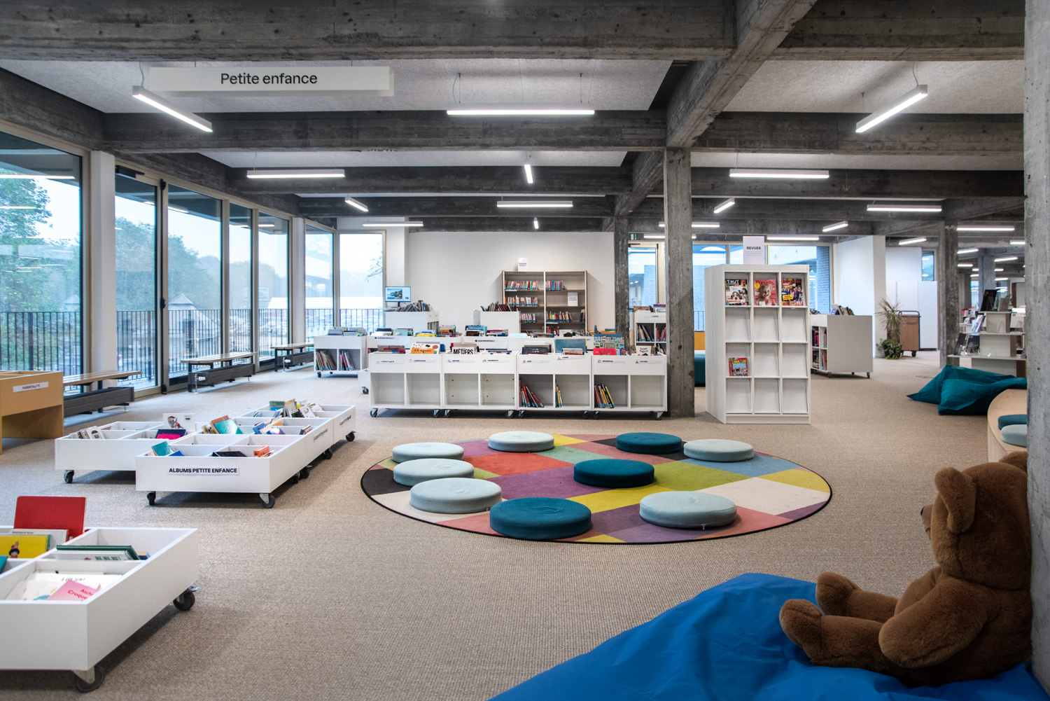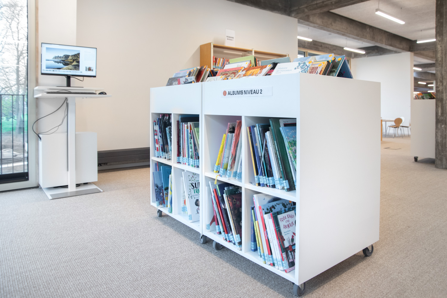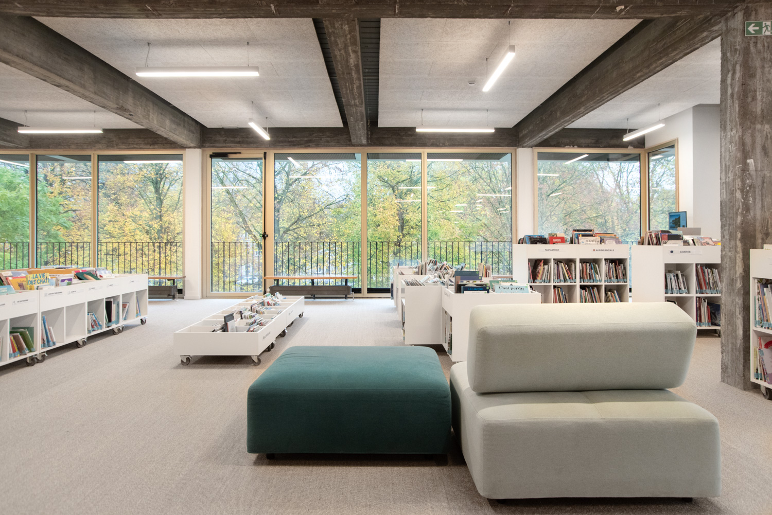 The new library is located in a fully renovated, bright and welcoming area within a cultural centre. It offers a dynamic and open environment where visitors feel instantly at home. With modern furniture and a carefully considered arrangement of shelving systems, the space ensures a seamless flow of movement throughout its spacious, light-filled interior.