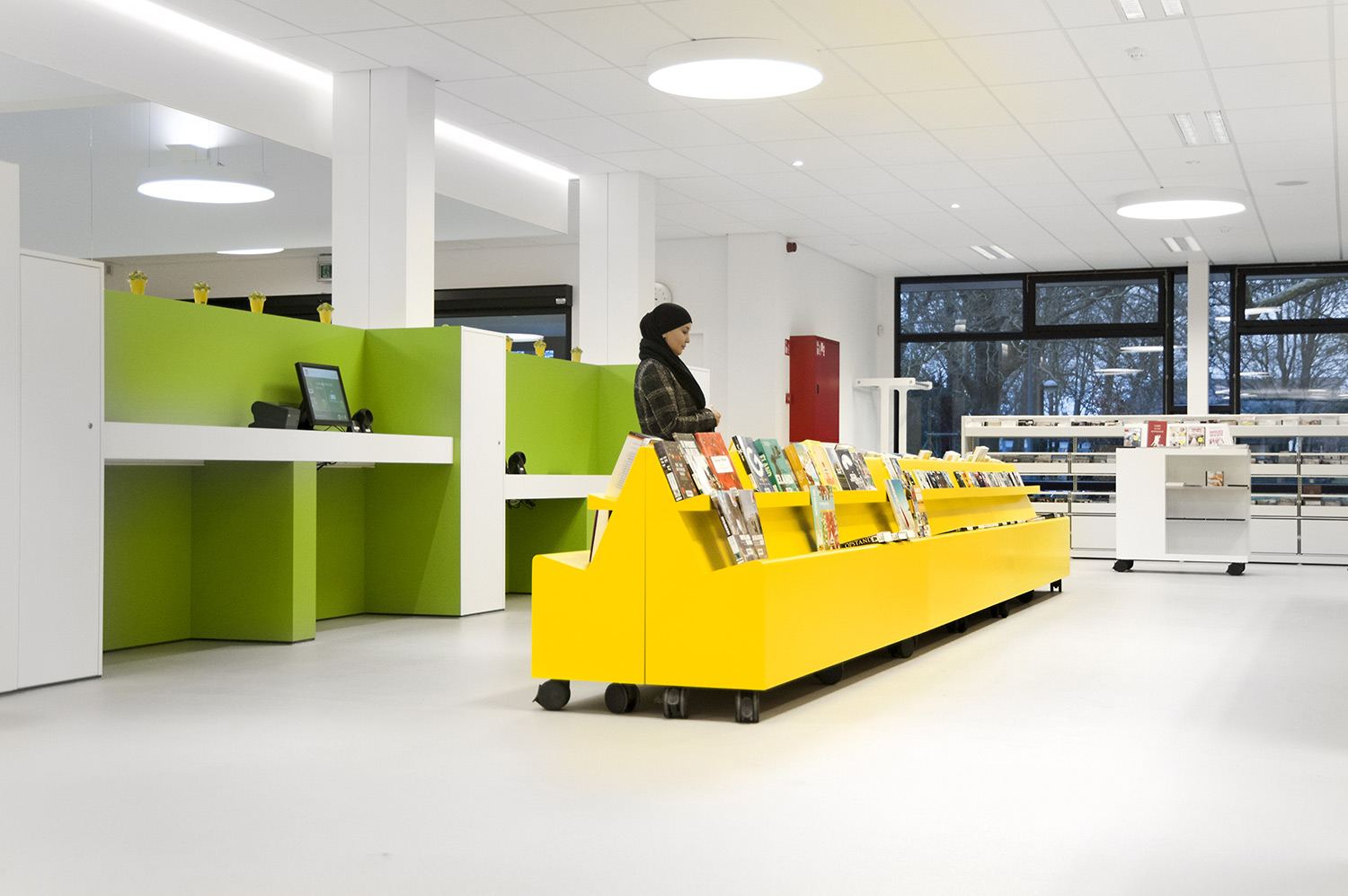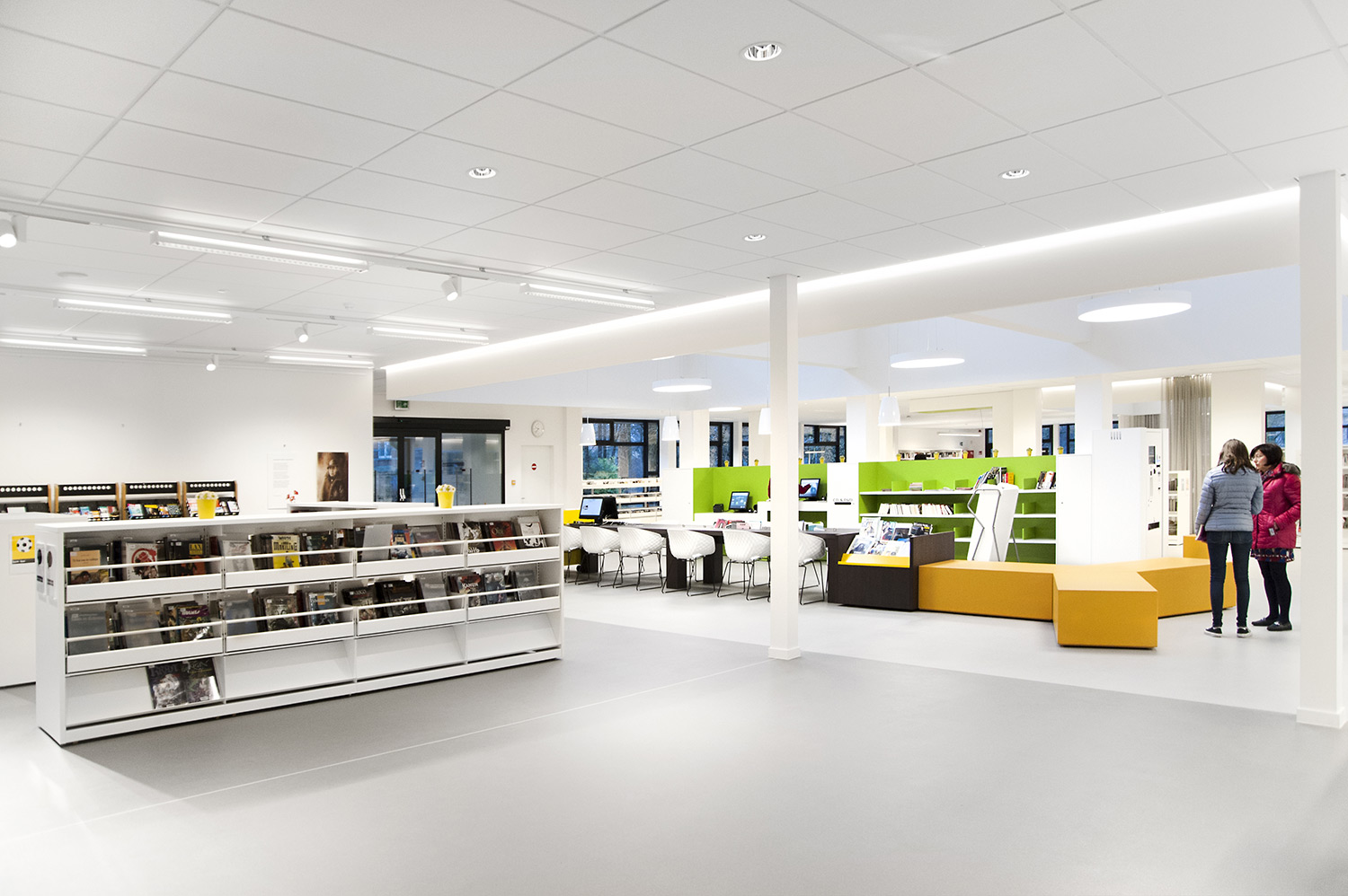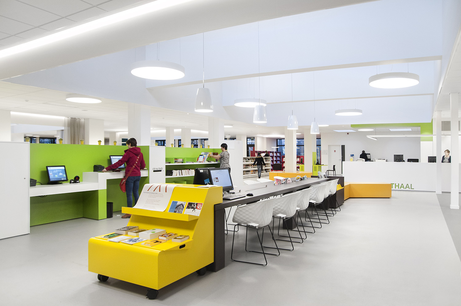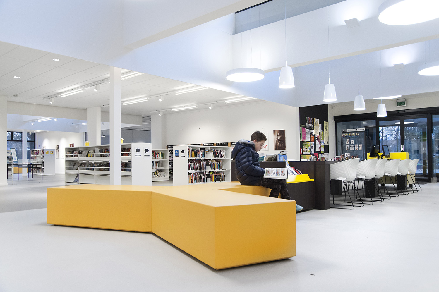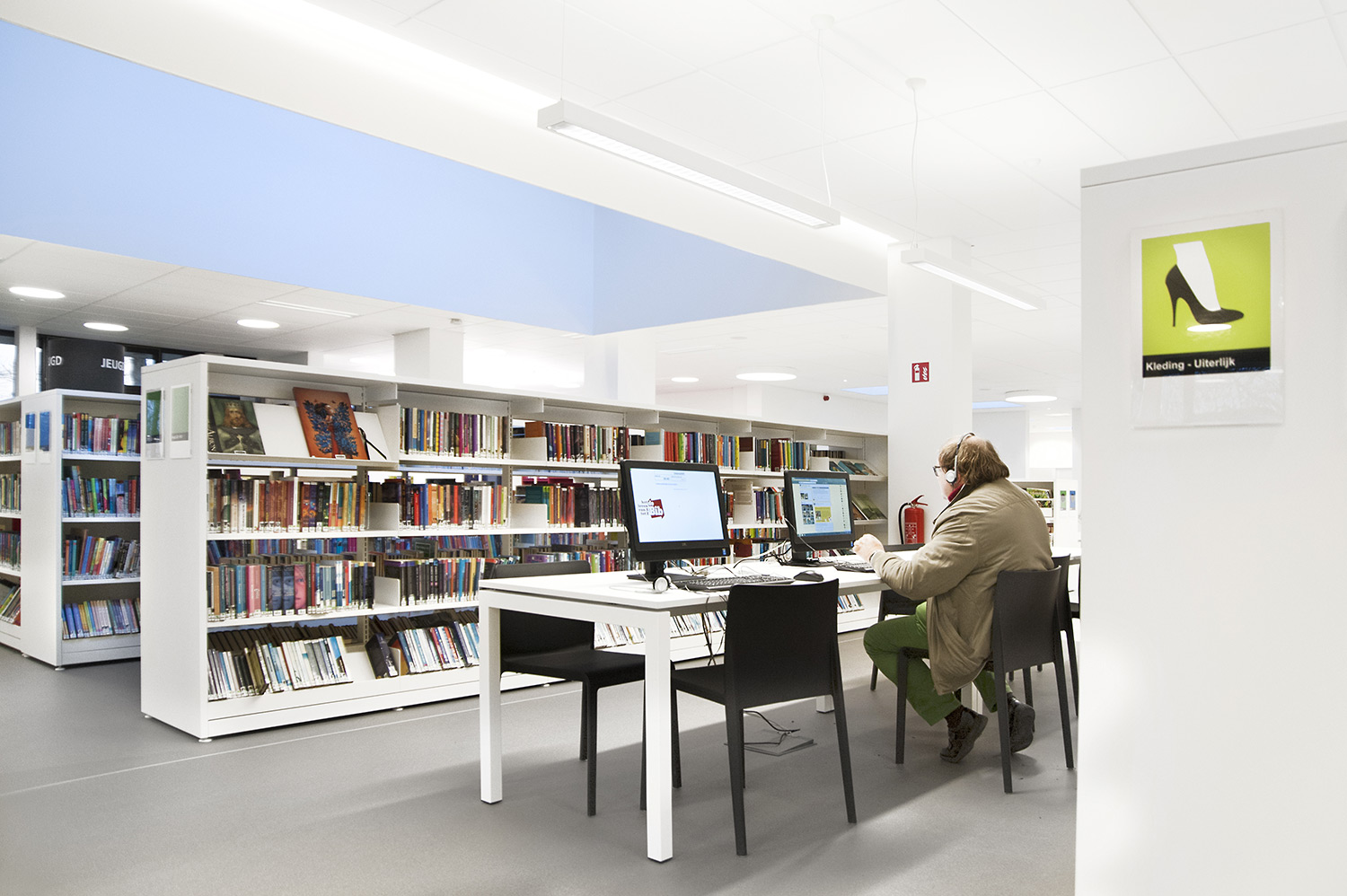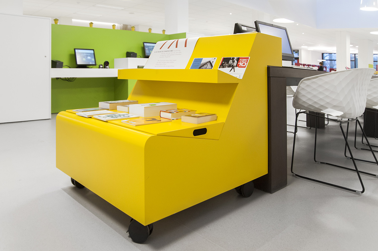 Not only the building has evolved, but also the way the library works. Wevelgem library is a so called user oriented library, a library with a high focus on a question based way of working. Visitors can turn to the library staff who helps and orients them.
