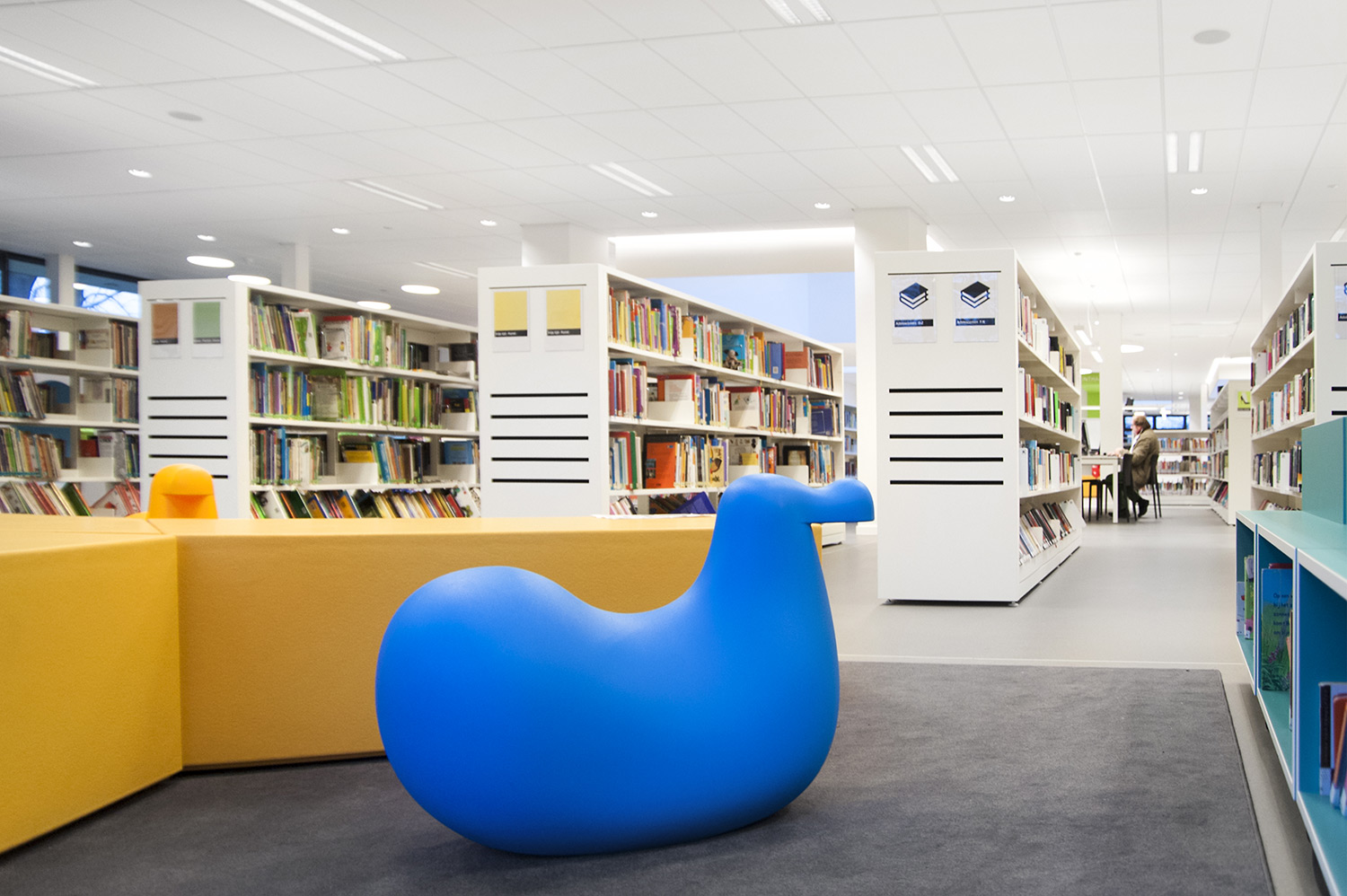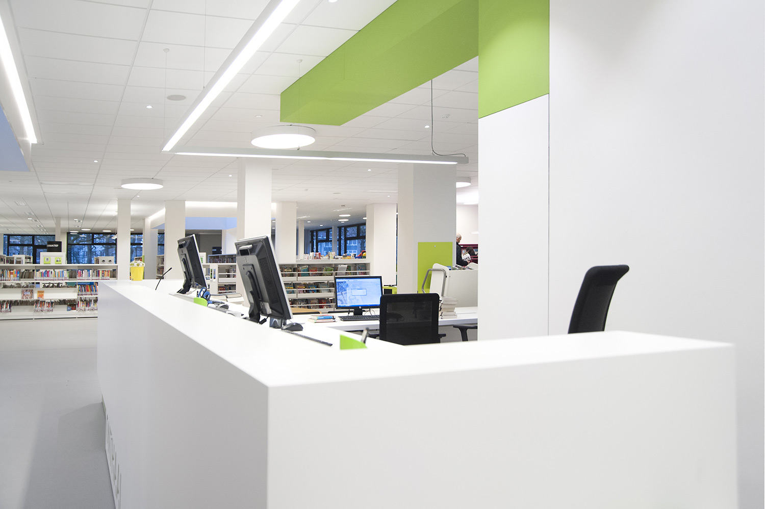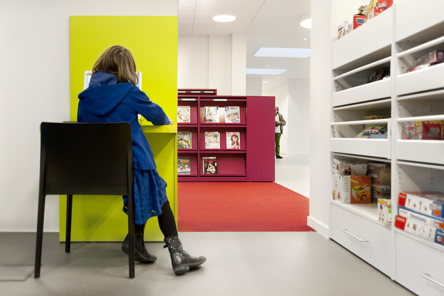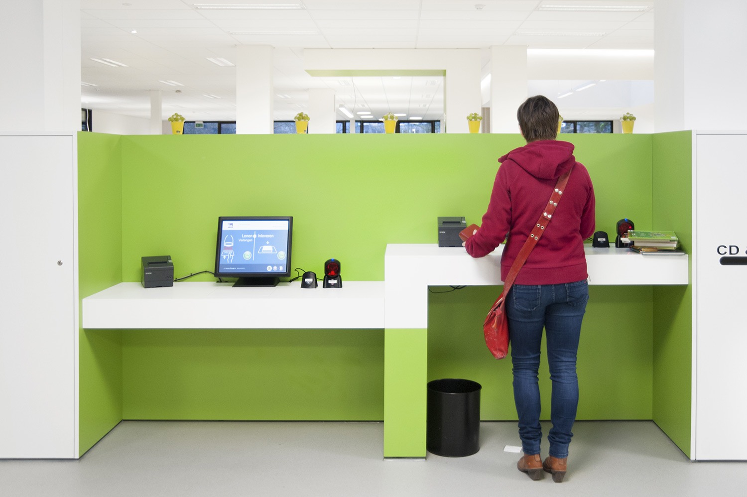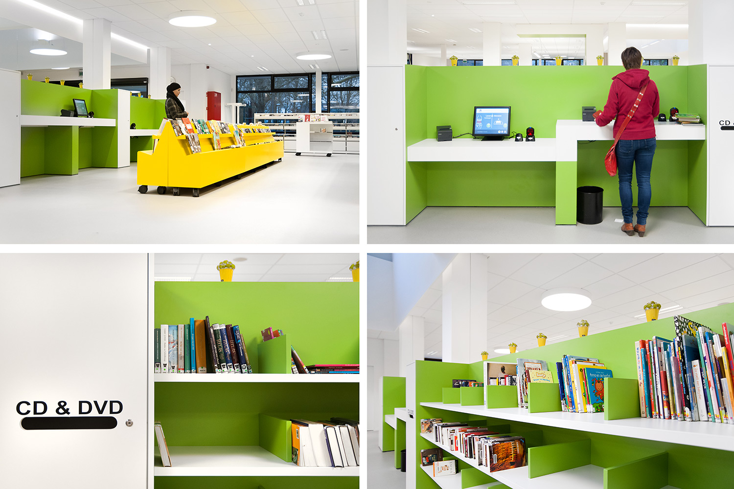 Not only the building has evolved, but also the way the library works. Wevelgem library is a so called user oriented library, a library with a high focus on a question based way of working. Visitors can turn to the library staff who helps and orients them.