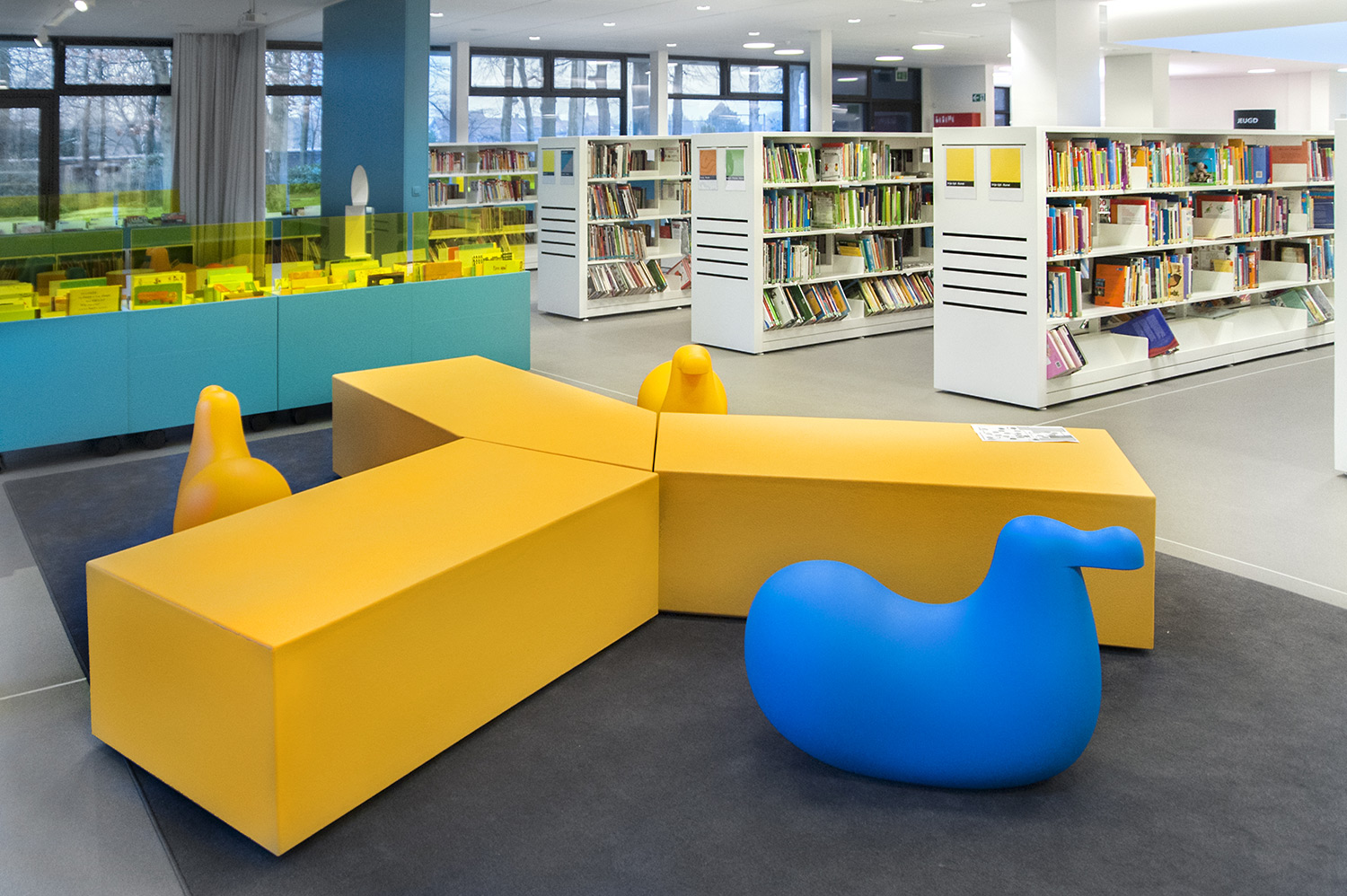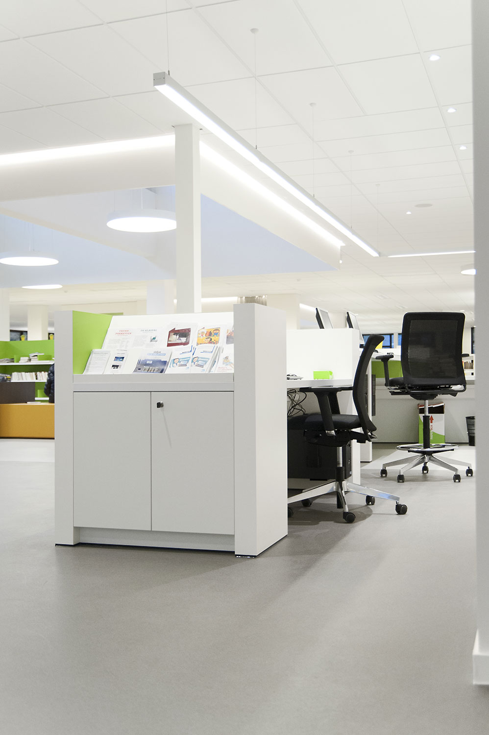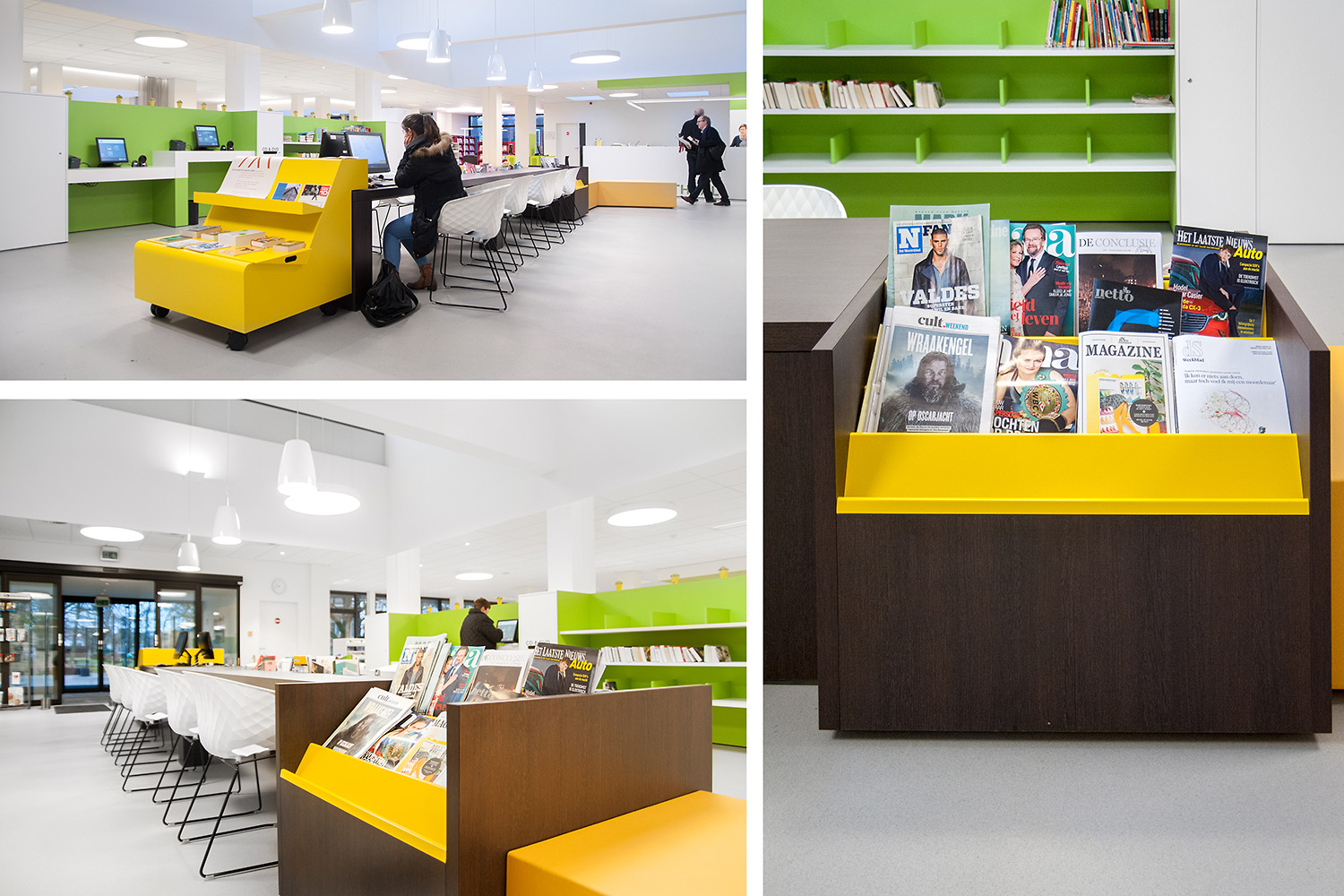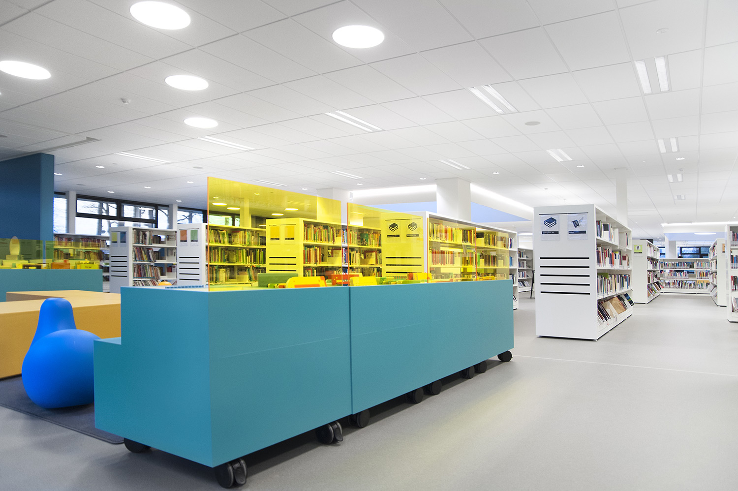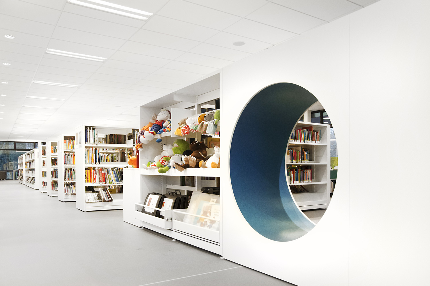 Not only the building has evolved, but also the way the library works. Wevelgem library is a so called user oriented library, a library with a high focus on a question based way of working. Visitors can turn to the library staff who helps and orients them.