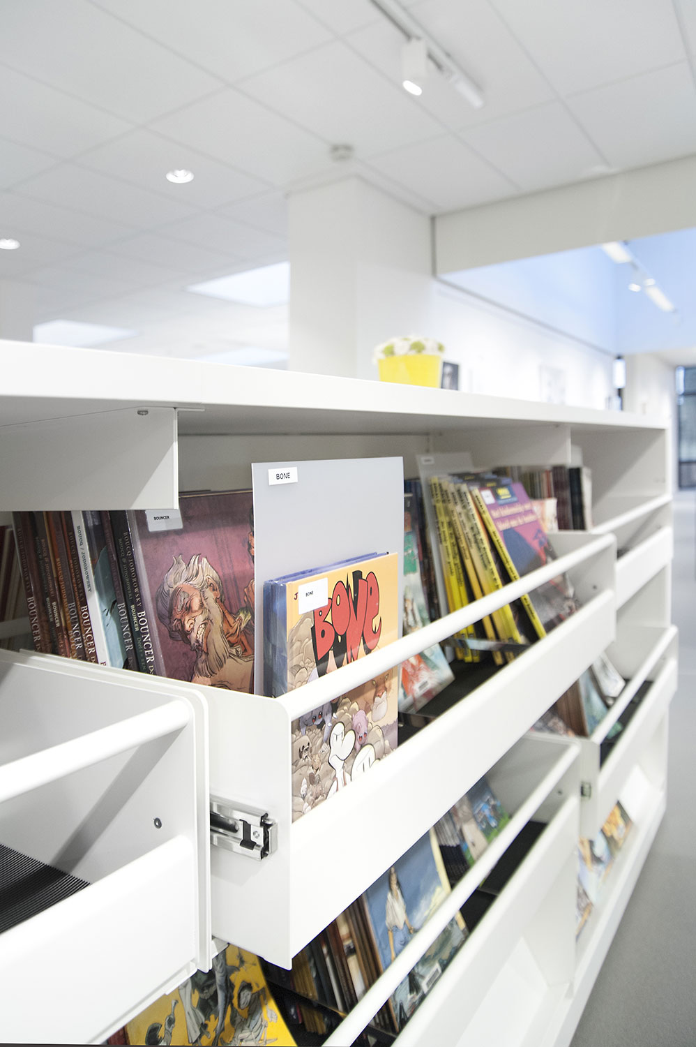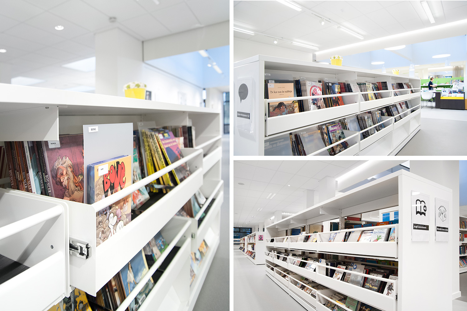 This project is the result of cooperation between different parties: architects, library, custom worker POTTEAU Labo and Schulz Benelux.