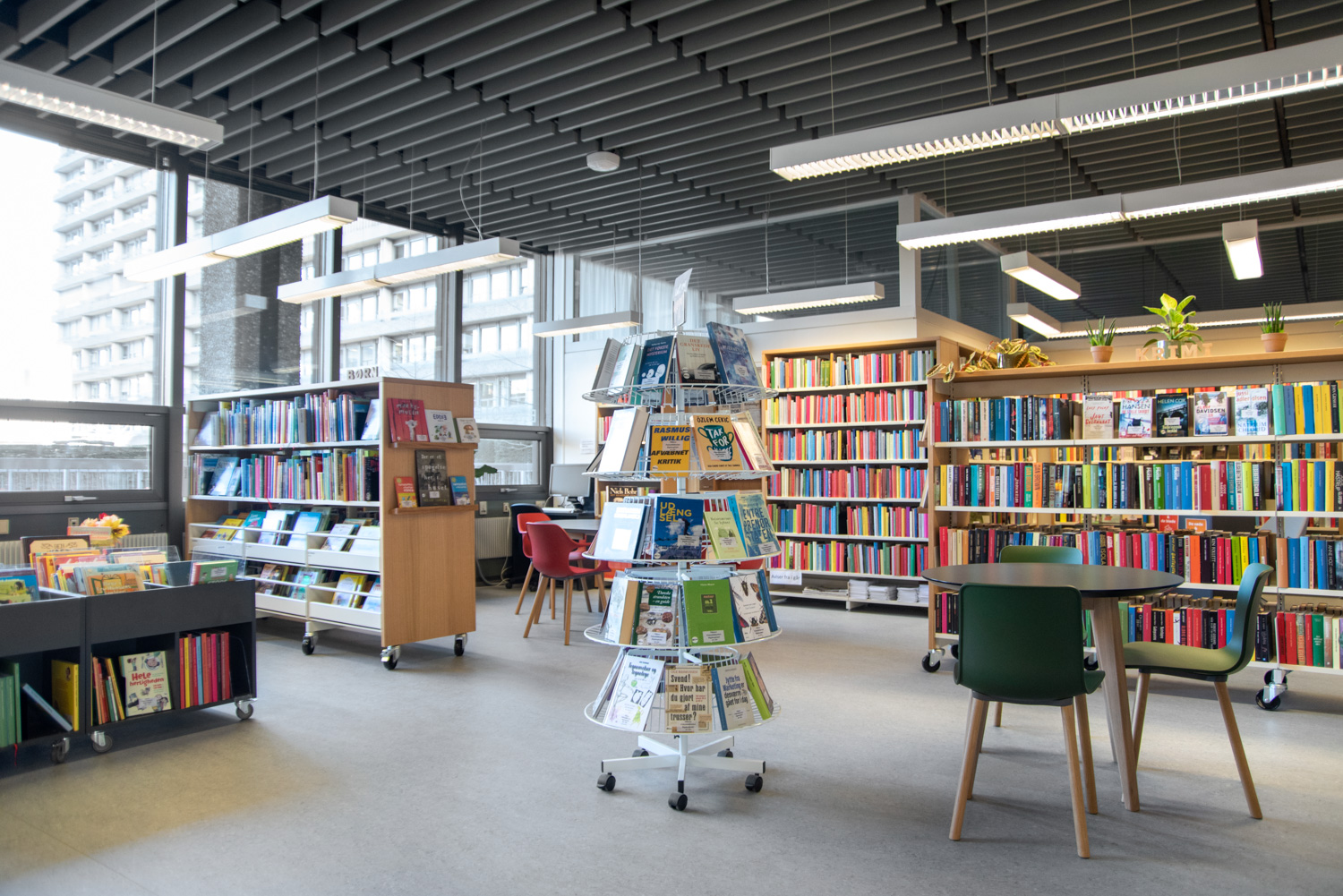 The smaller hangout spaces in the library make it possible for children and adults to enjoy a good book or read a magazine in comfortable couches.