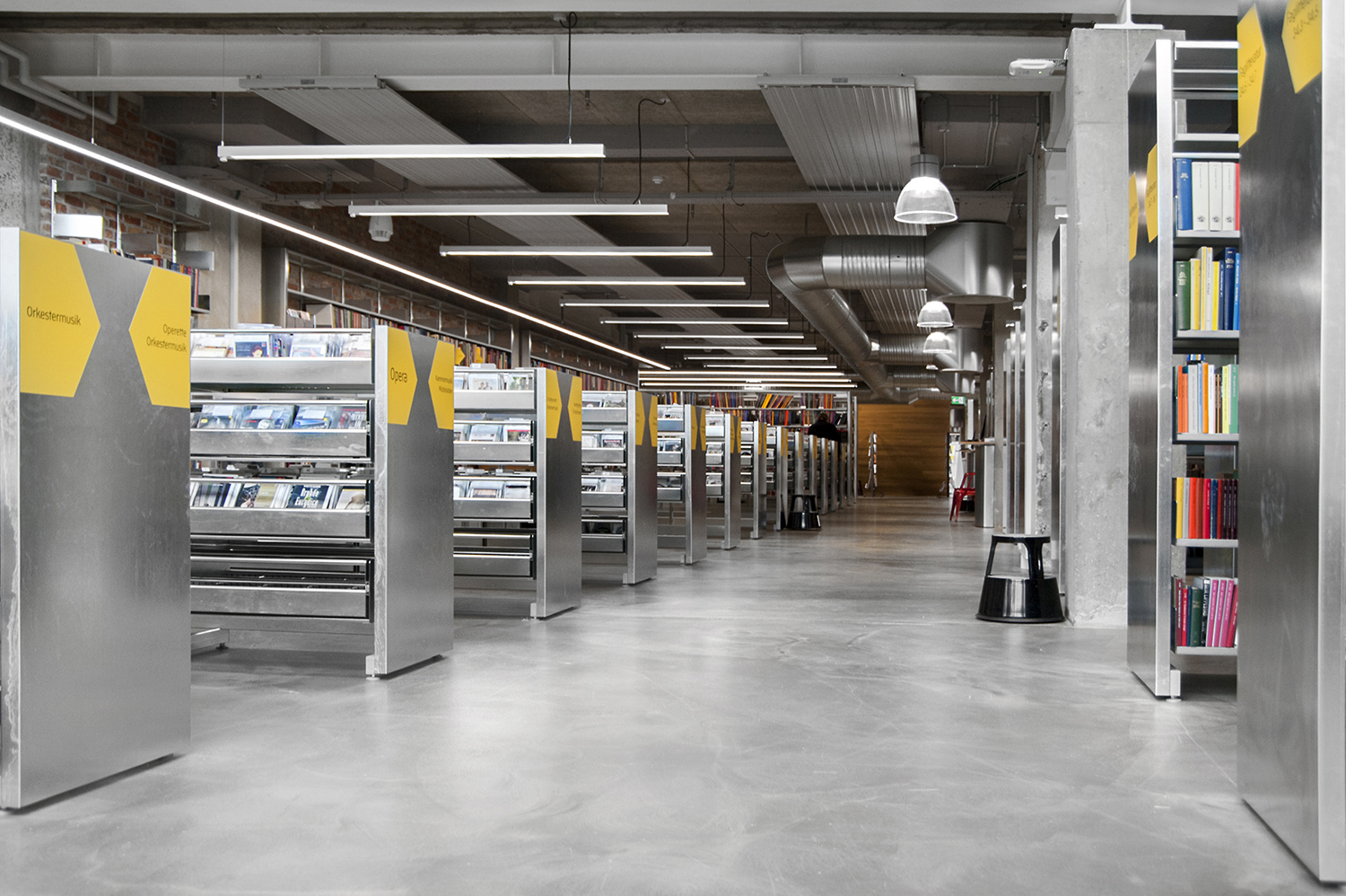 Herning new library opened its doors in August 2014 for a super modern decor that has transformed an old supermarket to a rough New Yorker environment.