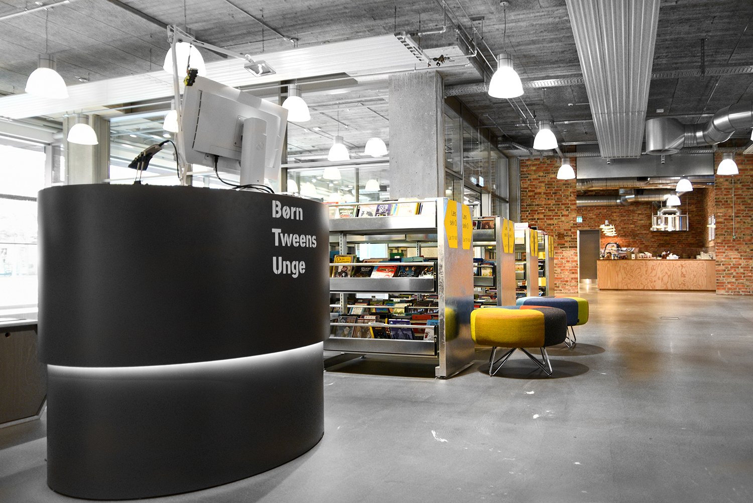 Designer Camilla Larsen from Lammhults Library Design has worked closely with the library staff and made custom furnishing that meet the staff's desire for a library to be a welcoming meeting place and focal point for the city's residents.