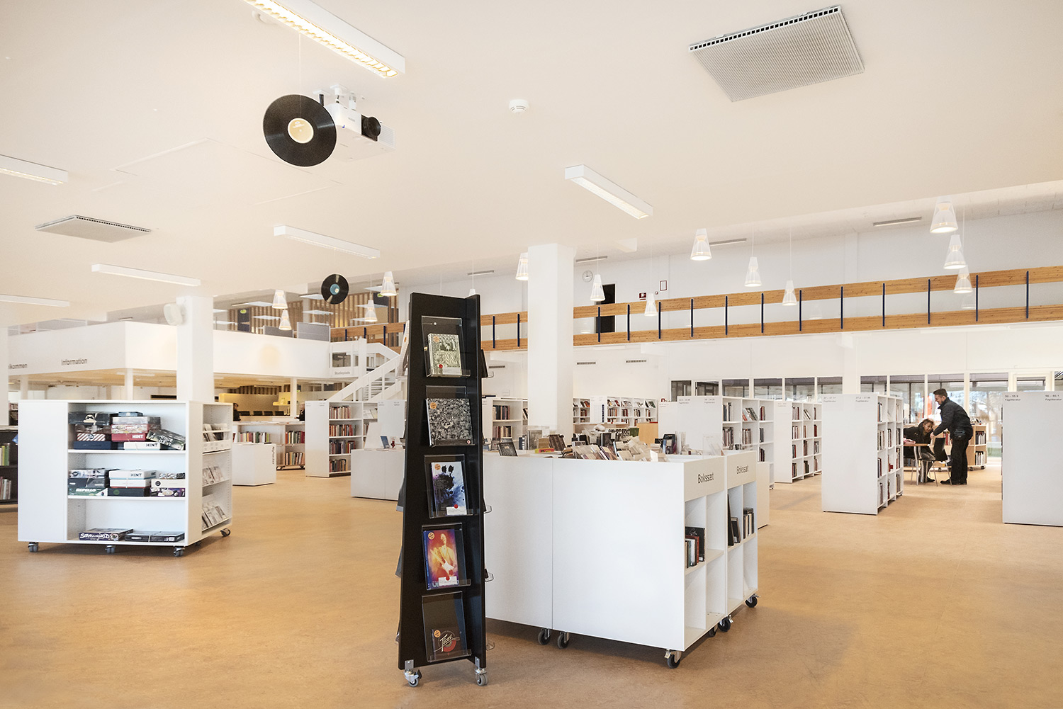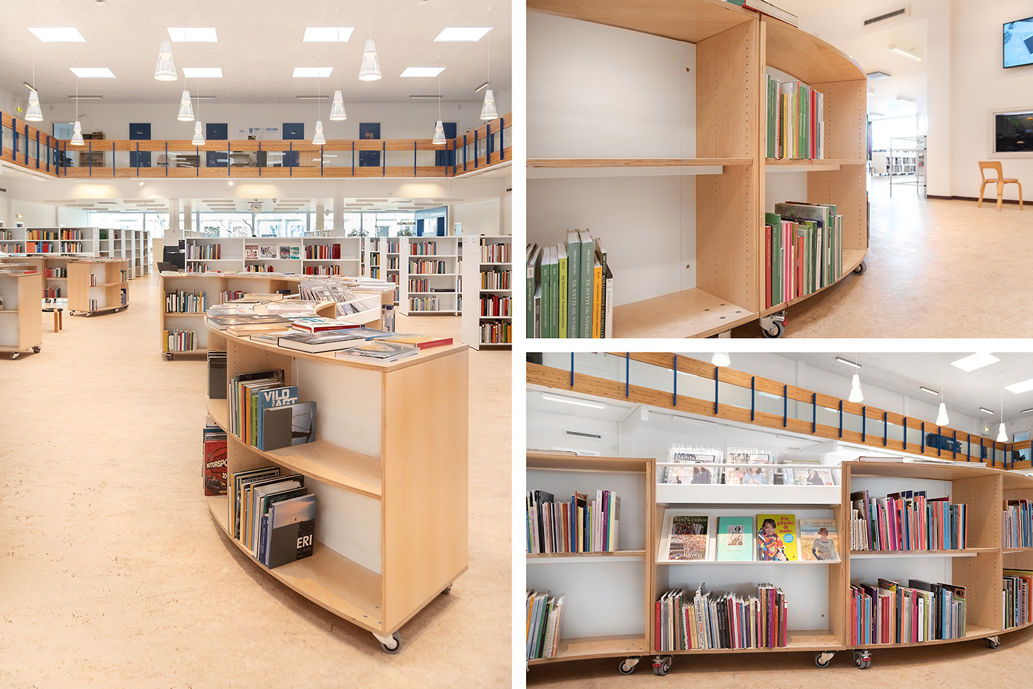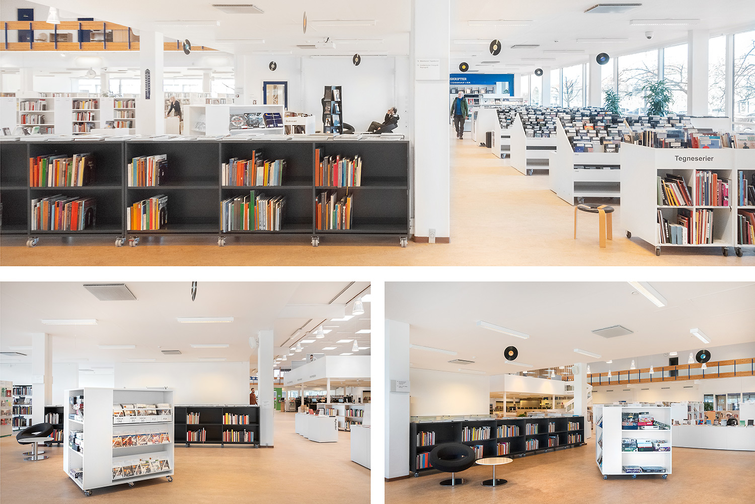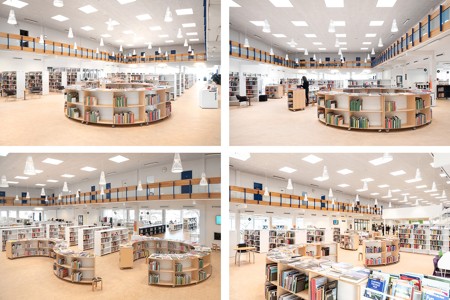 Hvidovre library now also has unmanned opening hours, which makes new demands on the interior design. Low, white shelving makes the room uncluttered and accommodating. Now you can easily see all the way to the large window surfaces where you find room for stay and study.