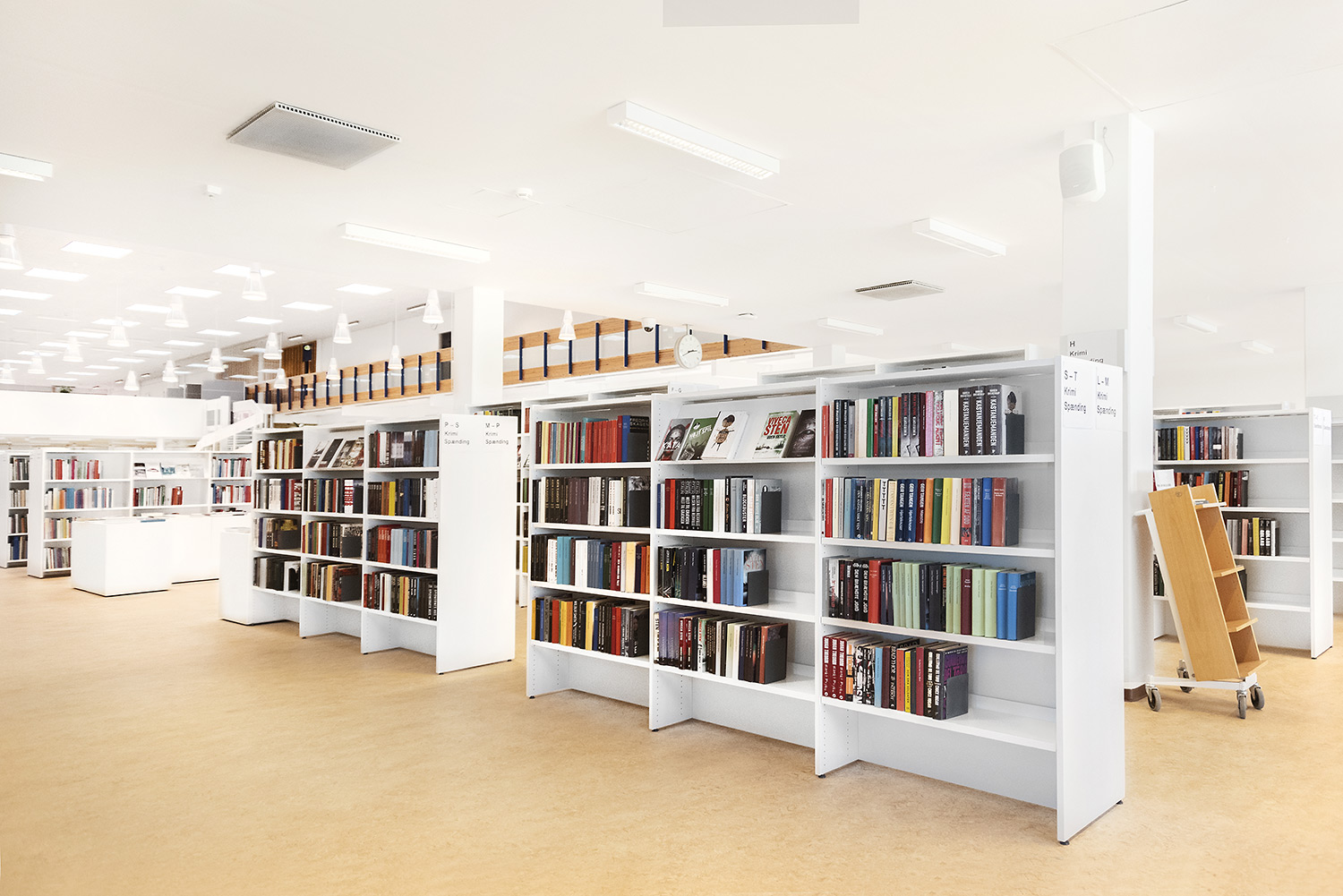 In addition to display podiums and the low shelving, sloping shelfs have been added in the adult’s area in order to show more front covers.