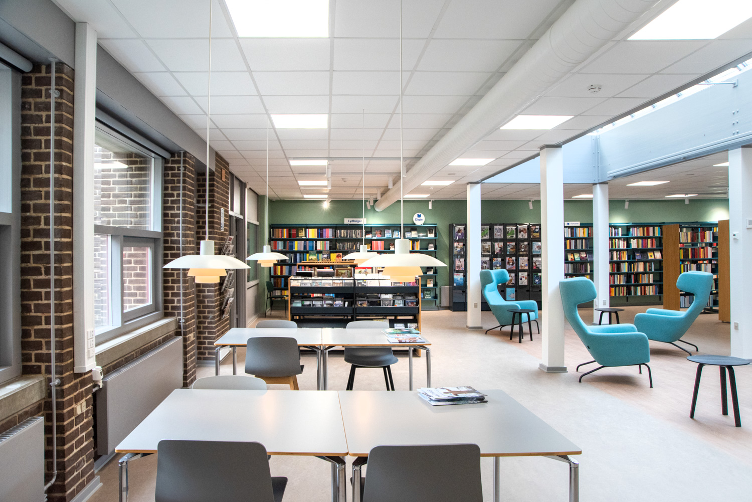 Jægerspris is a combination of several cultural functions in the town, including the school and public library. Every room has been dedicated to a certain audience. Whether you want to work out, find your new favorite book, study, or just take a break - this is the place to be.