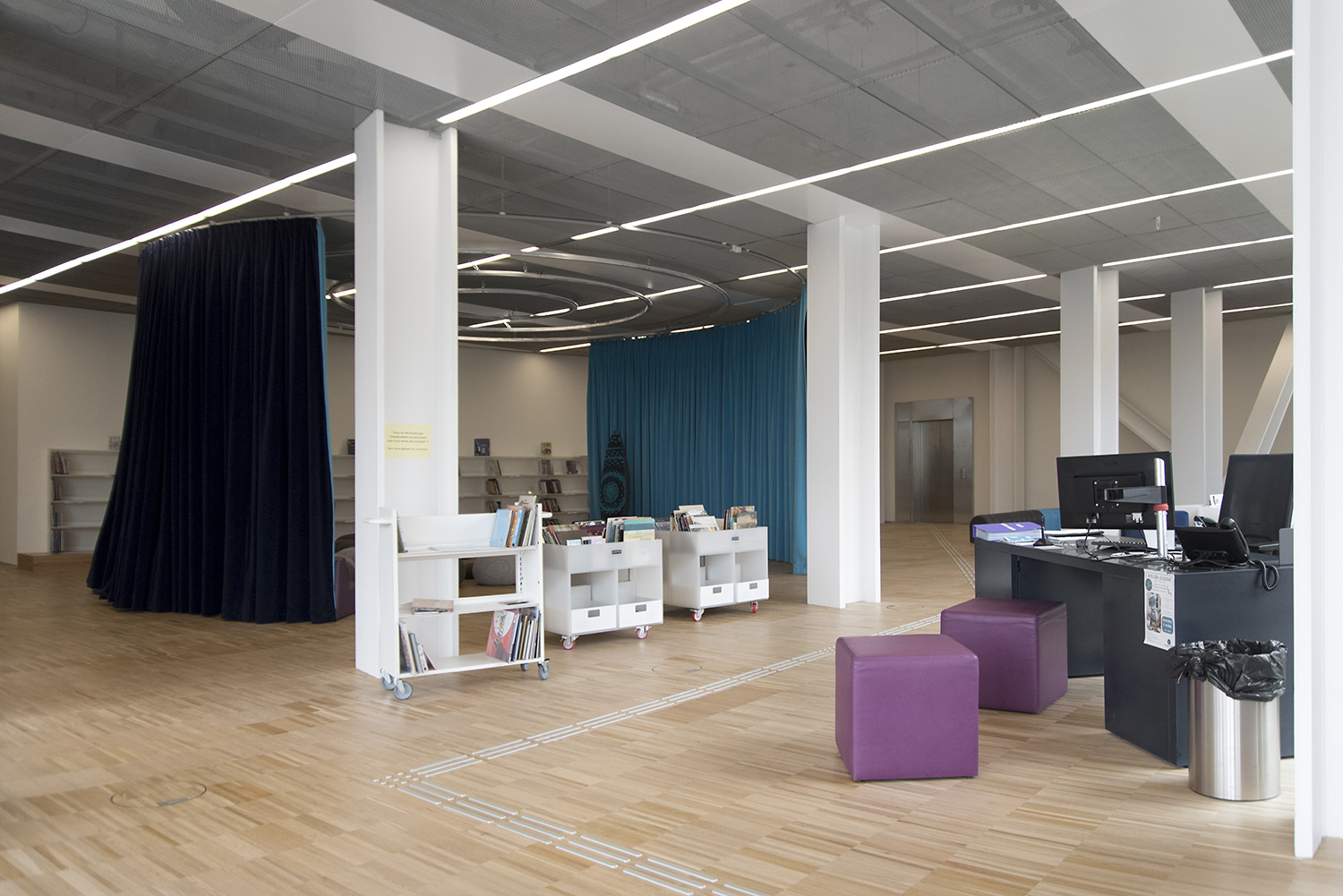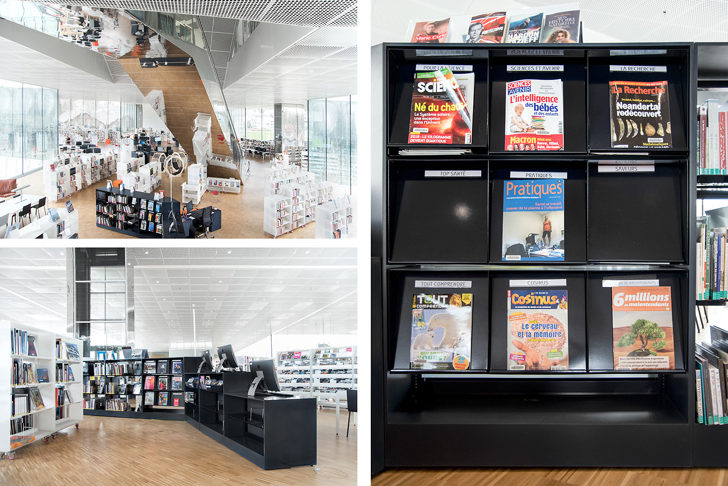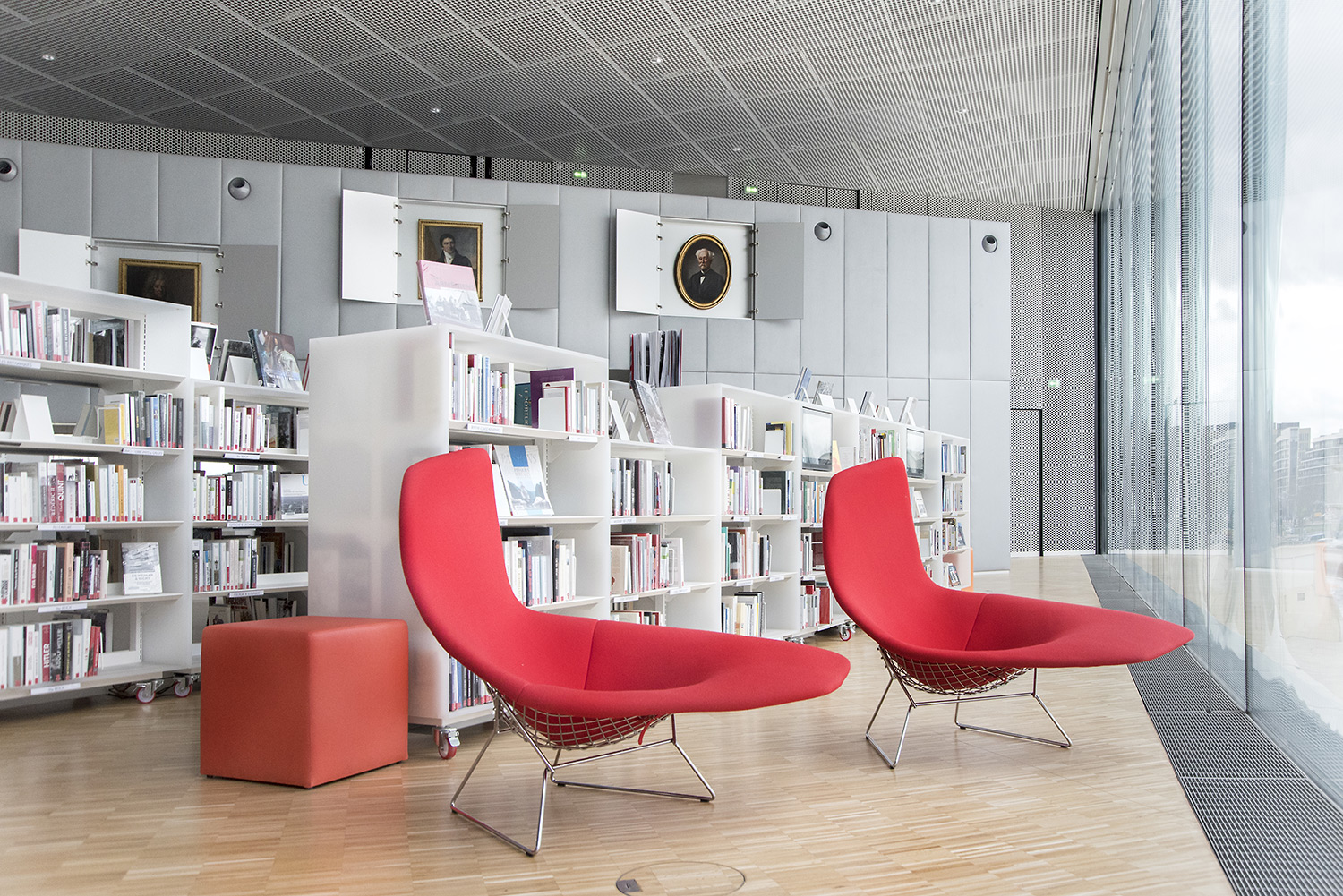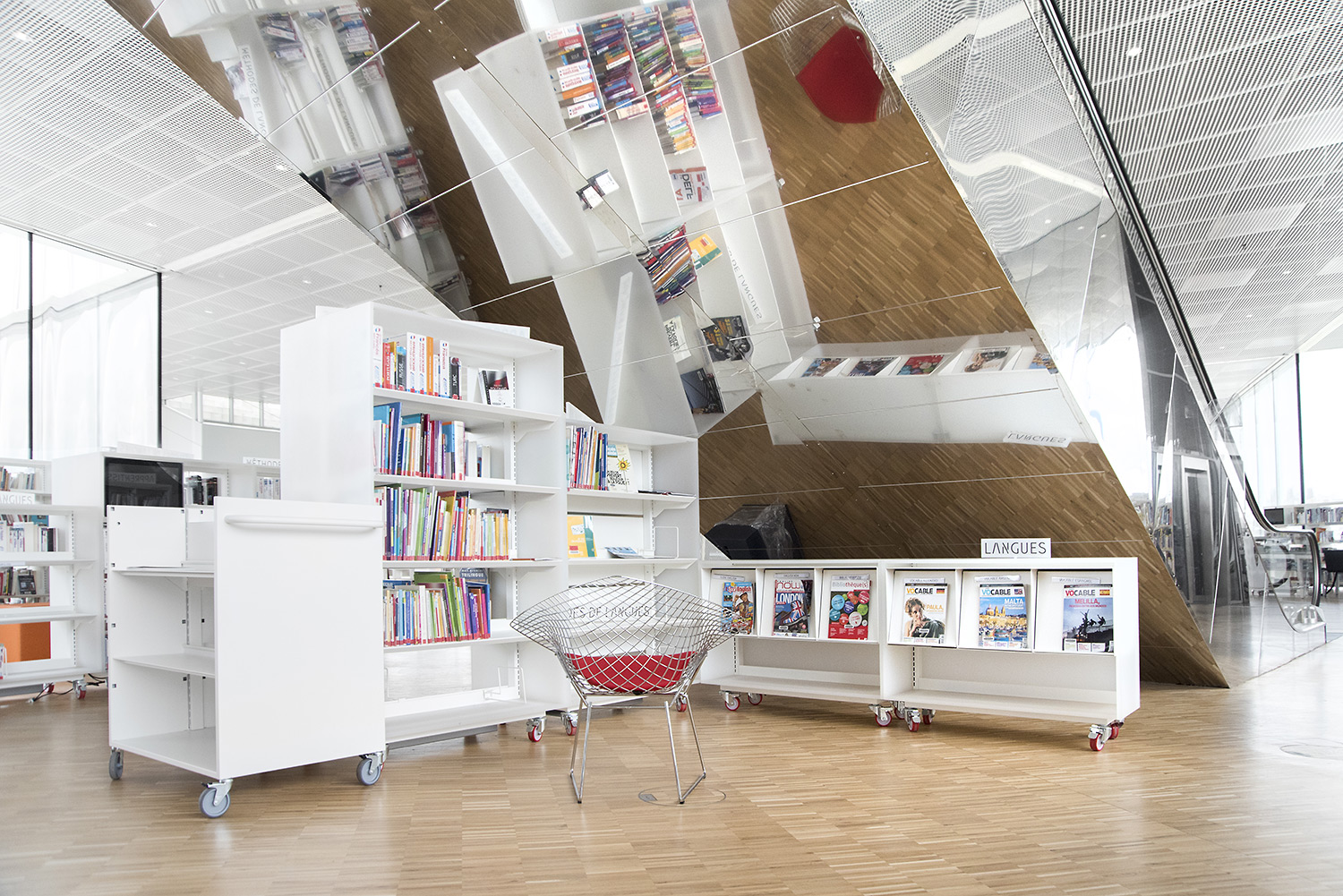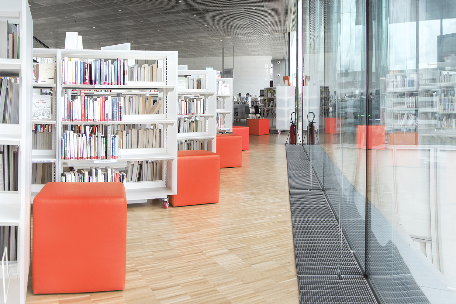 The integration of various types of media has been one of the focus points for the new library. BC Intérieur has also been involved in this process by supplying customized furniture to accommodate not only the 120,000 documents but also digital media.