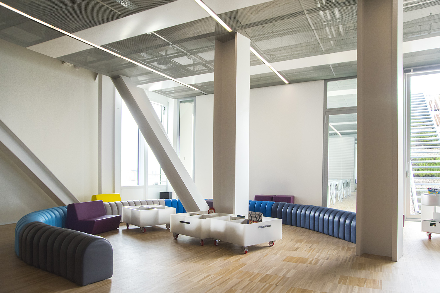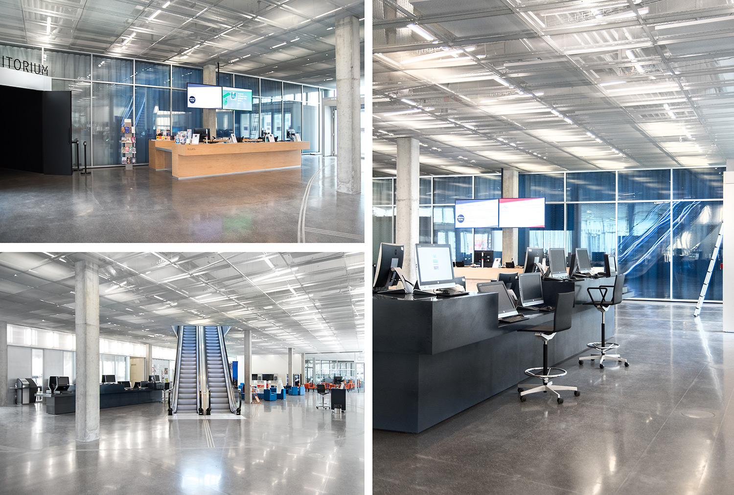 With a total area of 12 000 m² spread out on 4 levels, the building is located facing the Saint-Pierre lake in Caen. Open from east to west and with its generous natural lighting thanks to its fully transparent and unobstructed horizontal opening, the building has been designed to resemble an urban forum.