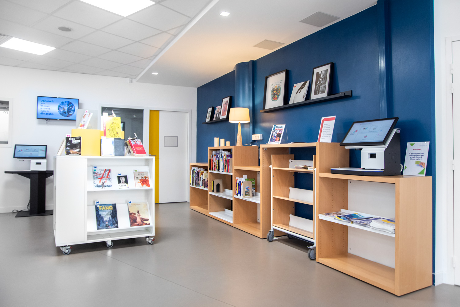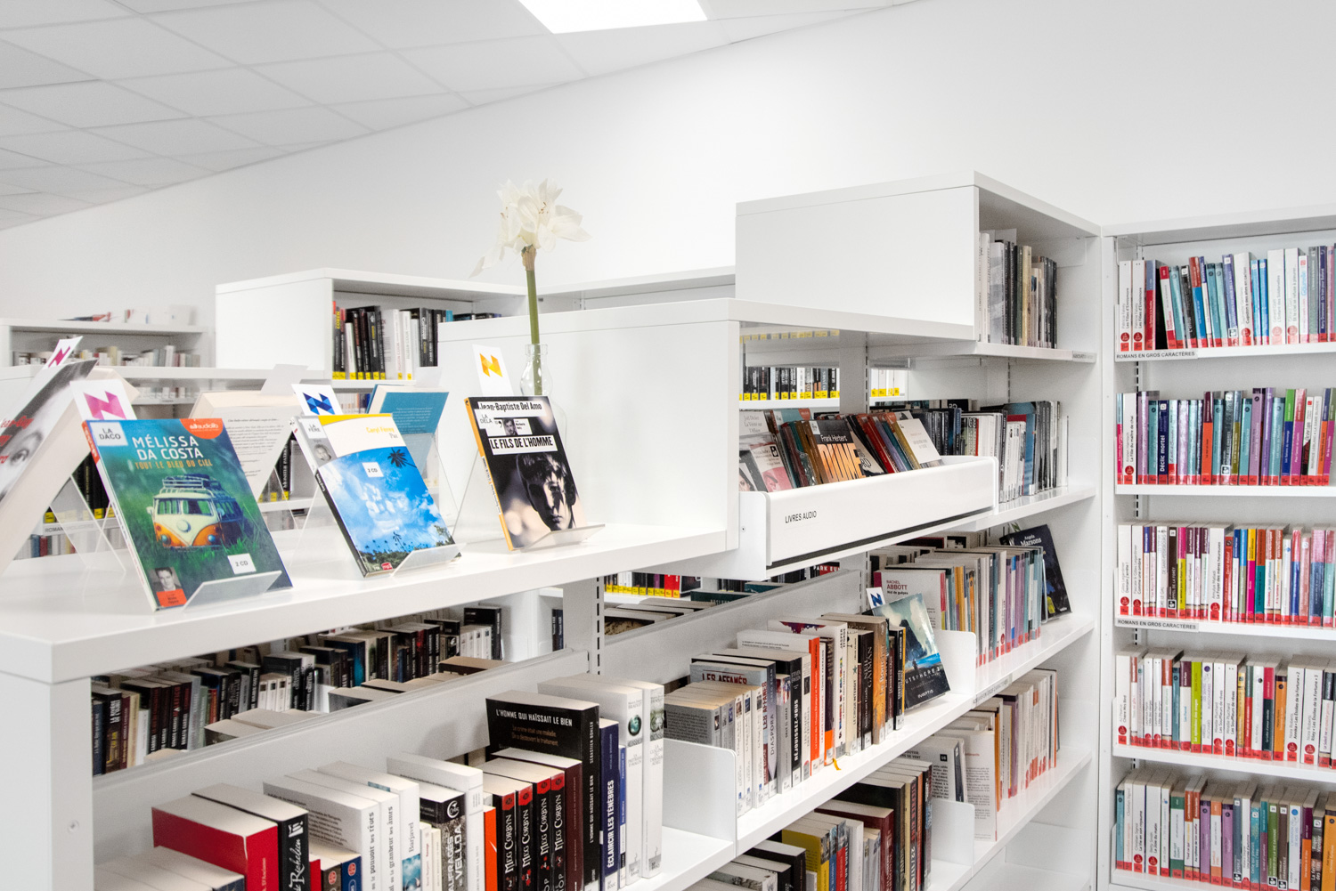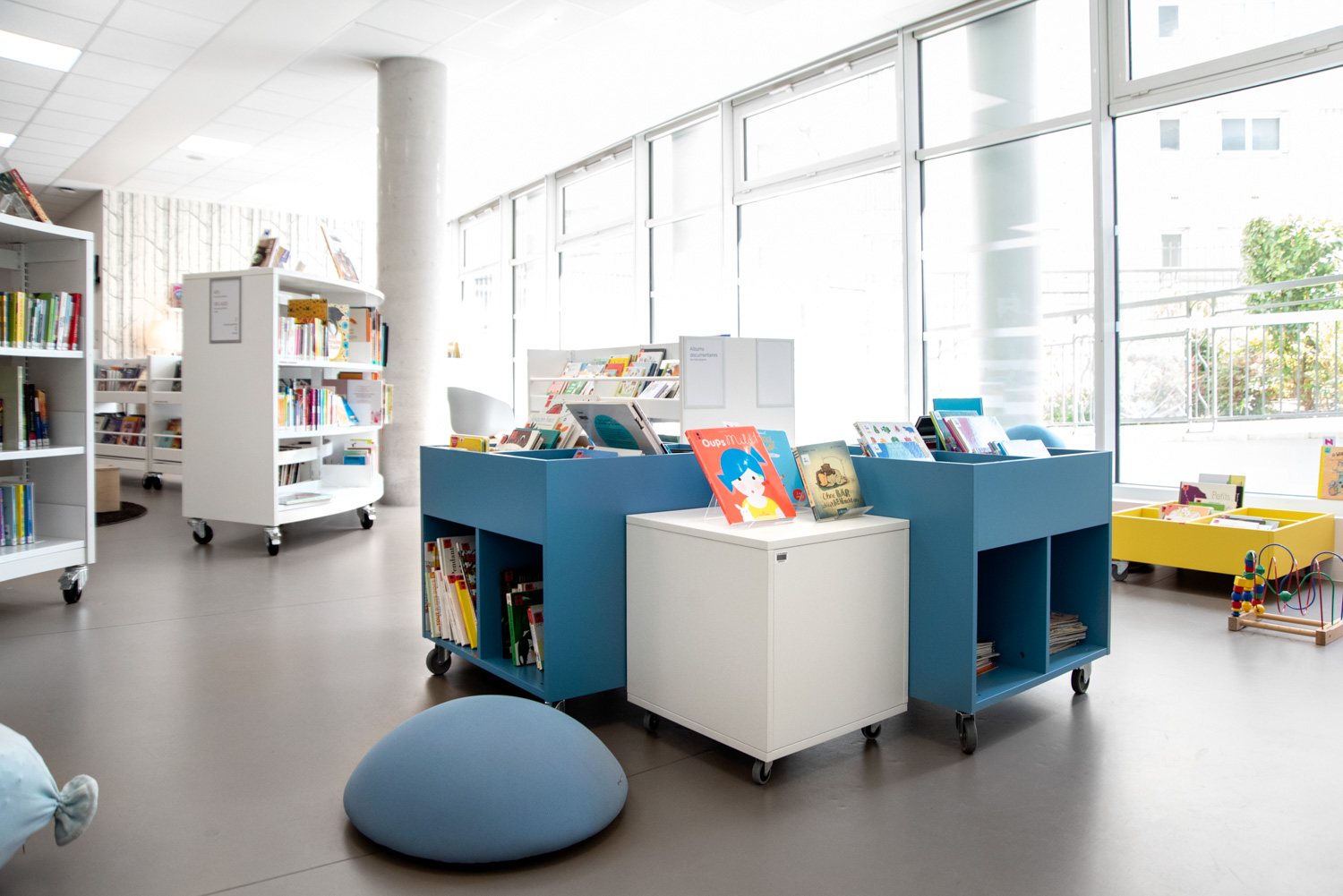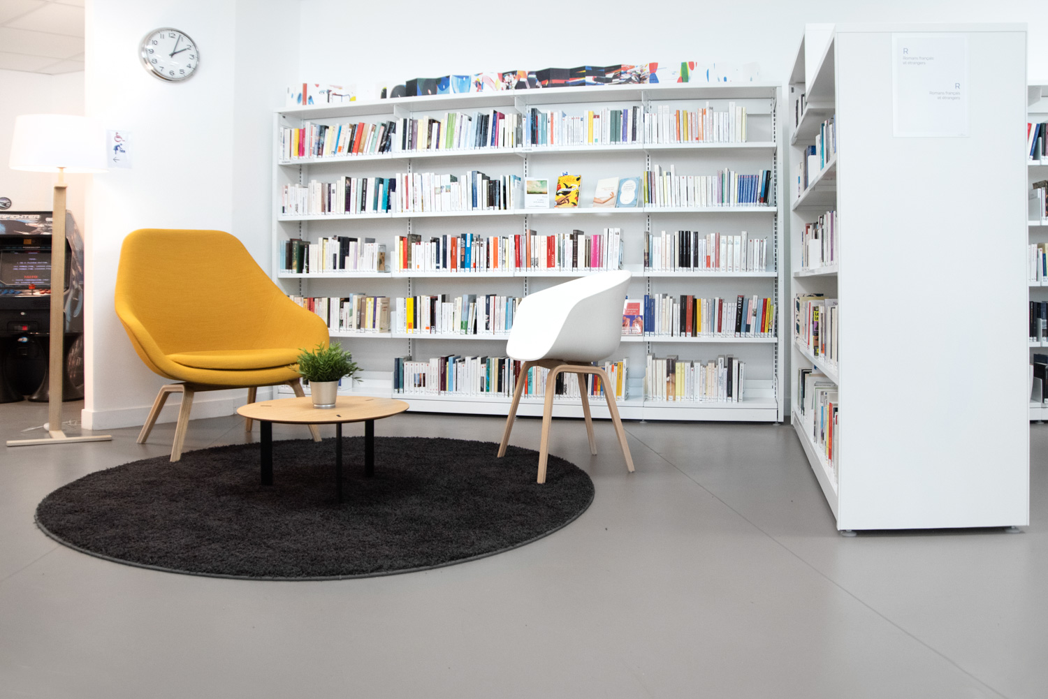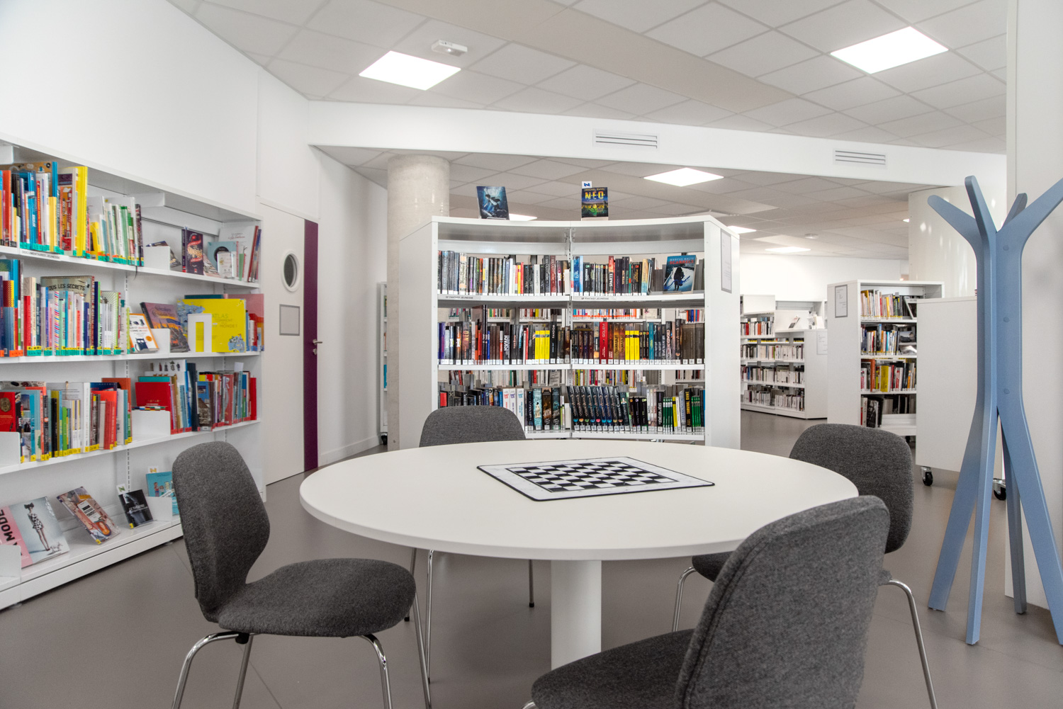 The work carried out in collaboration with BC Intérieur for the entire interior design has resulted in a cheerful and flexible library, with spaces that are visually coherent and clearly differentiated! This successful cooperation has created a cultural space, that invites the citizens to come in and spend time in the library either listening to a record in large armchairs, reading stories or comic books on comfortable poufs, or working in smaller groups.