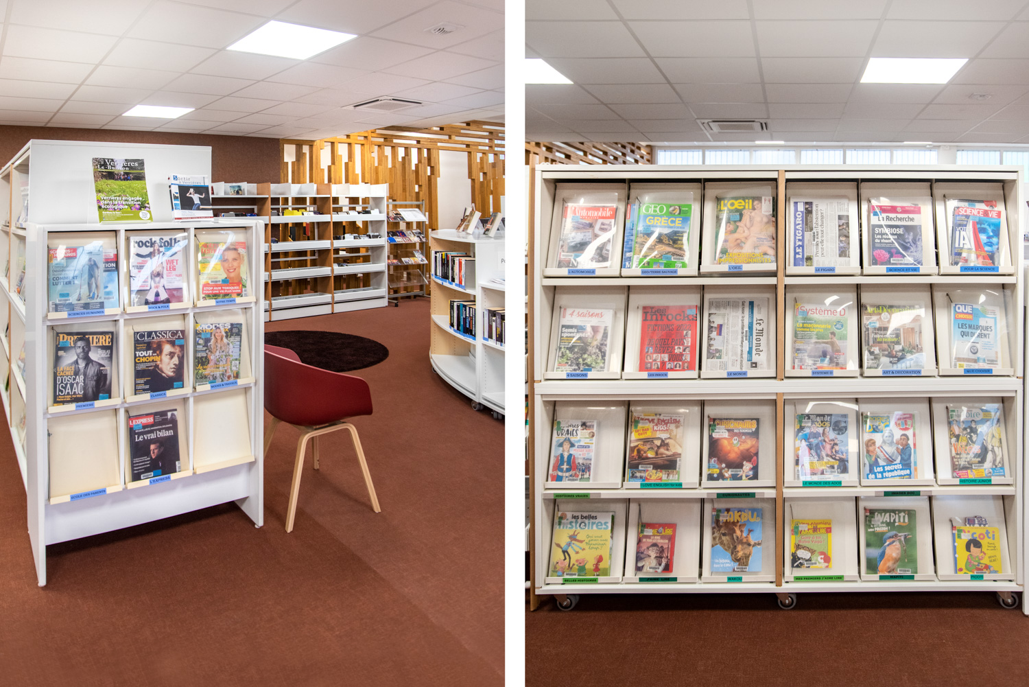 The renovation of Verrières-le-Buisson Public Library near Paris in France began in 2018. Our BC Intérieur team in France suggested reusing several items of exiting furniture instead of buying a completely new package of products. The library, convinced of the benefit of up-cycling bought into the idea.