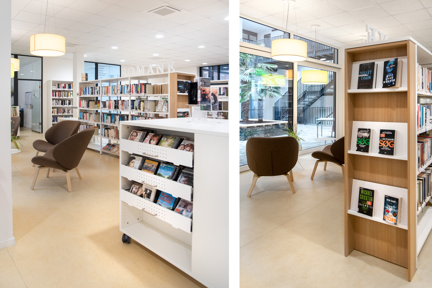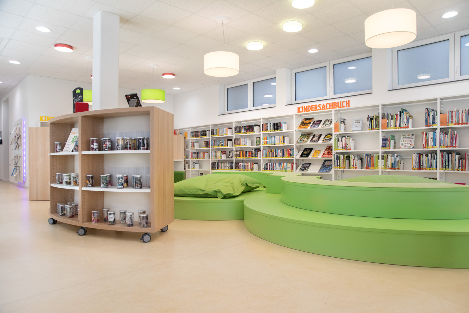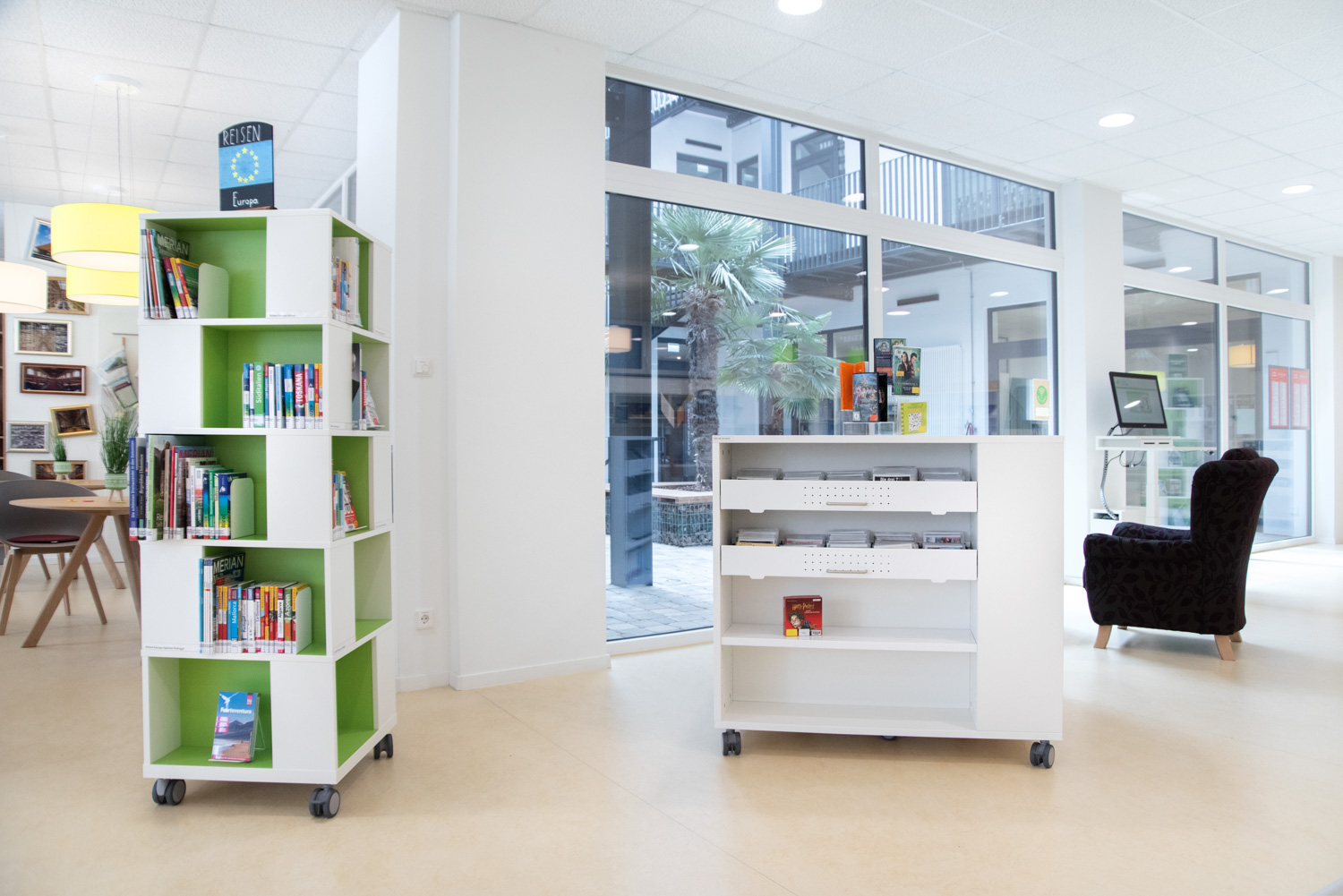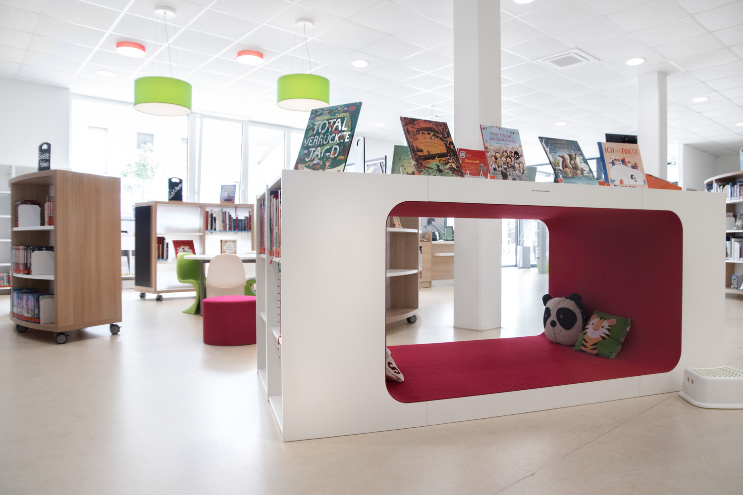 Our architect team, in cooperation with Ilsfeld Library, came up with some creative suggestions for the colours and shapes of the furniture, that have resulted in this very nice, welcoming library of high quality.
