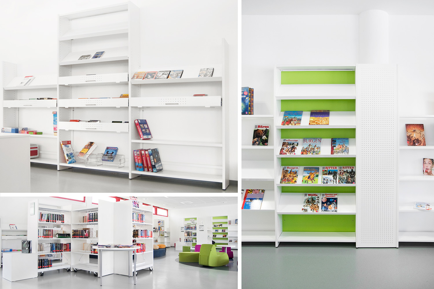 Located on the outskirts of the beautiful city district Edigheim in Ludwigshafen, a creative and progressive integrated comprehensive school has taken form. Its modern and multifunctional library is filled with unconventional ideas. The green and white interior has a natural and fresh atmosphere and correlates with the garden in the adjacent atrium.