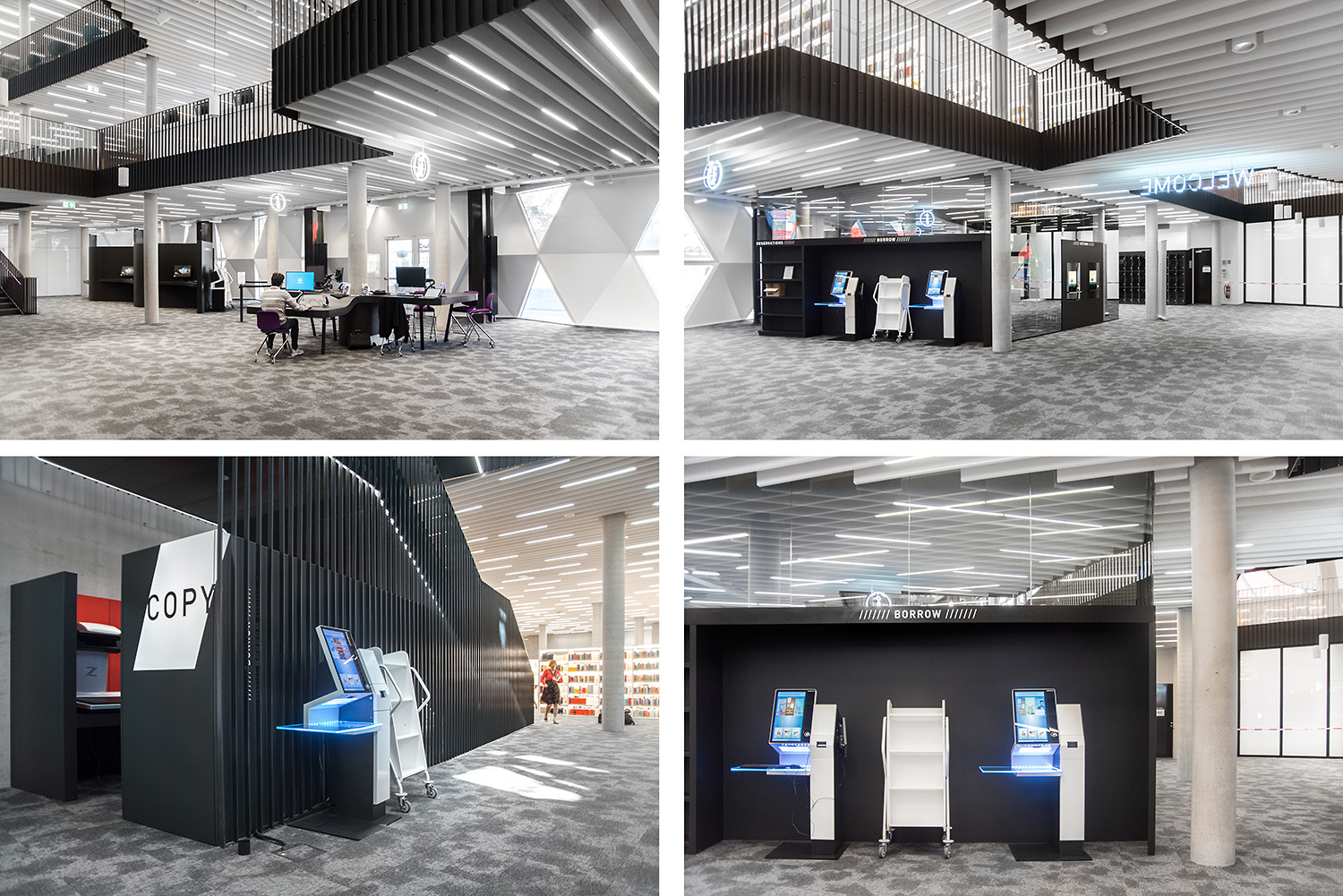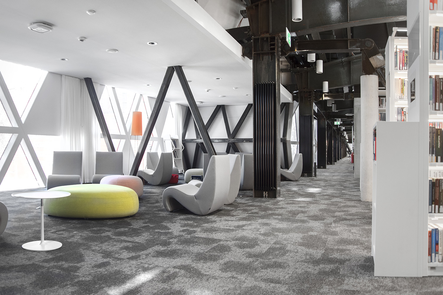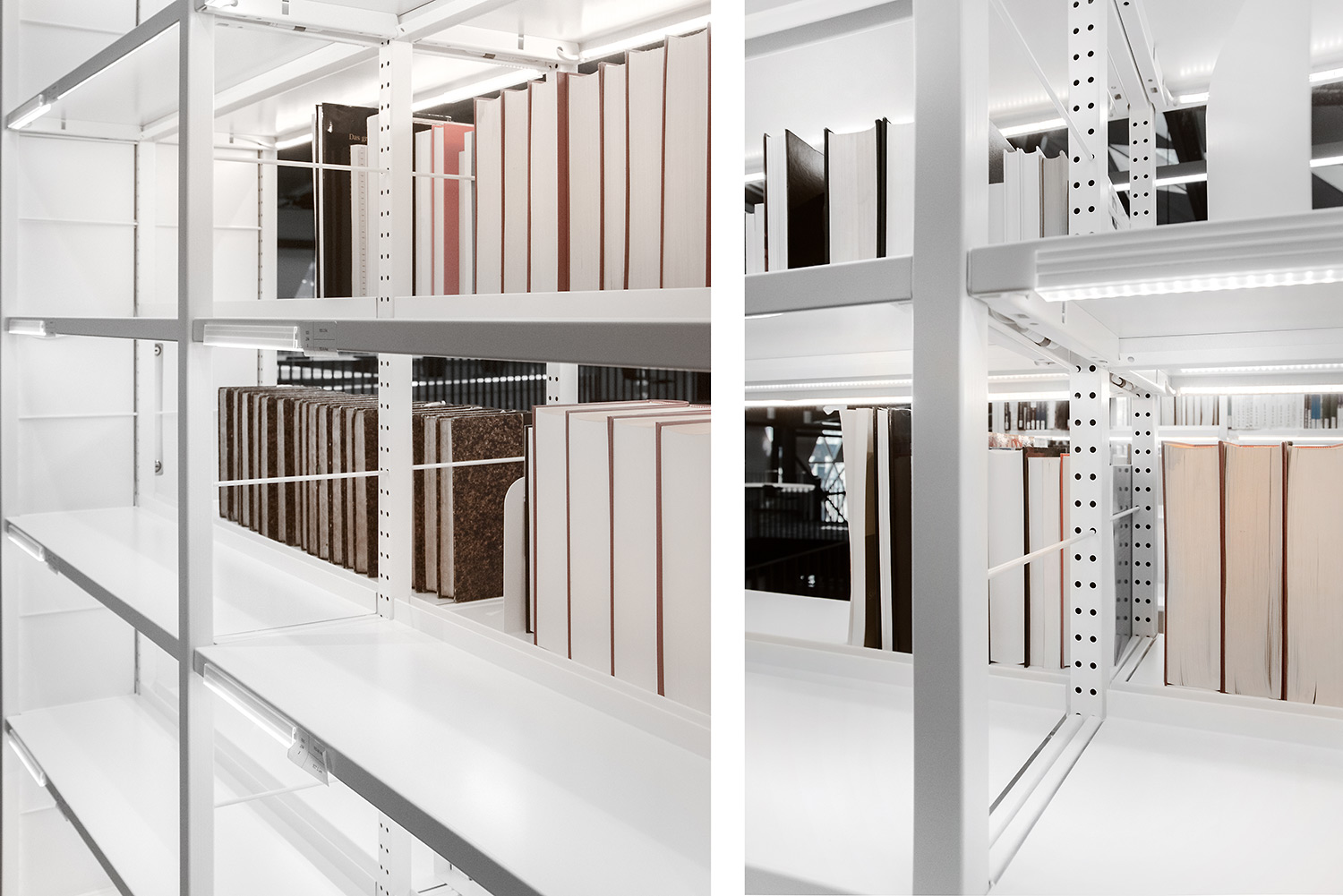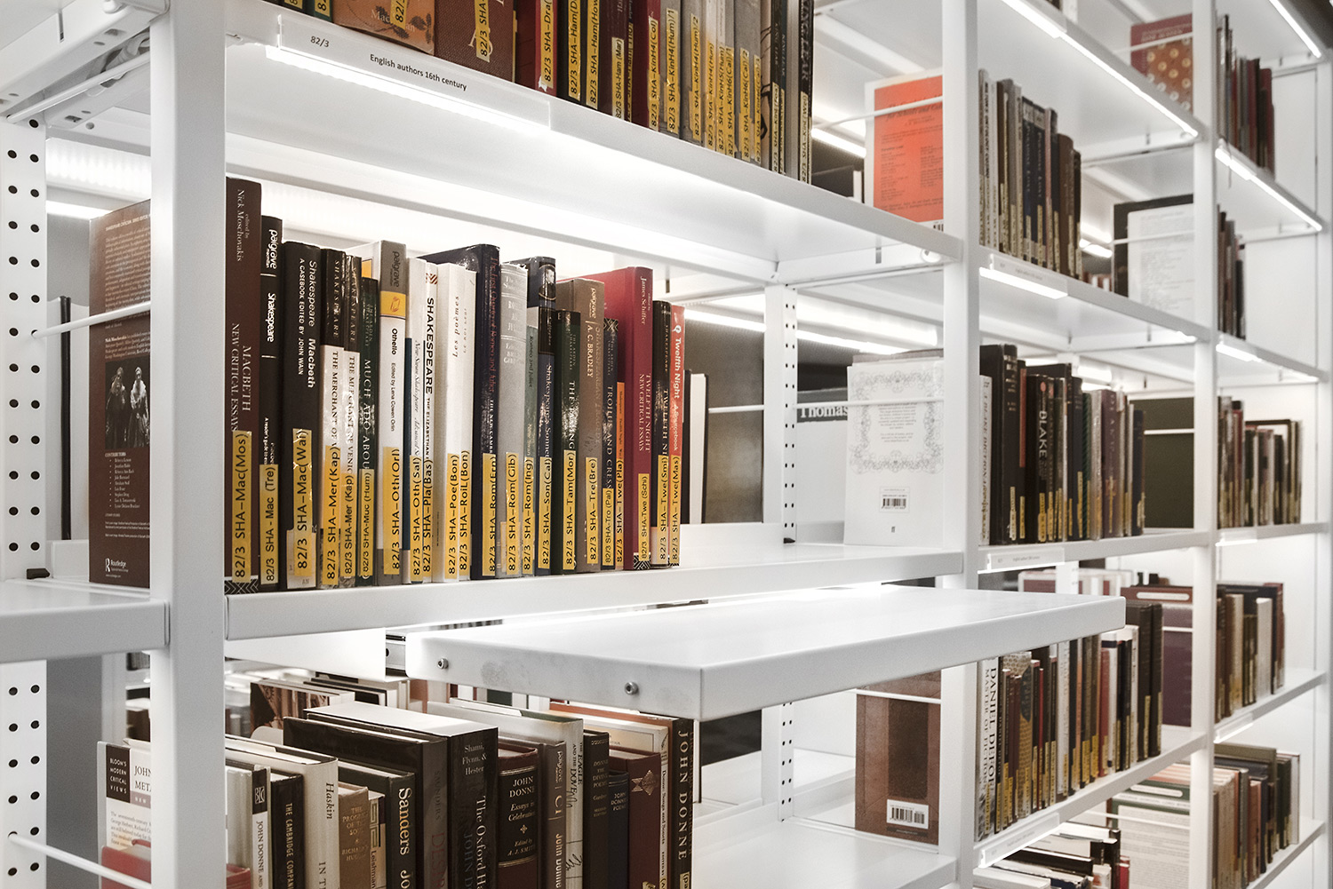 With its clear design and practical all day usability our Uniflex Shelving System with integrated LED lighting provides 10.7 km of shelf capacity spread over 5 floors.