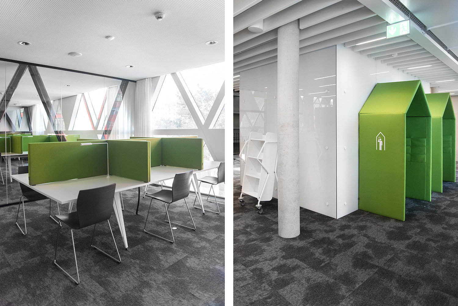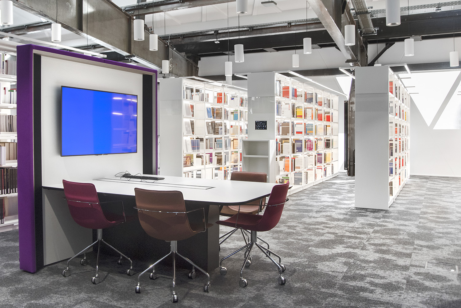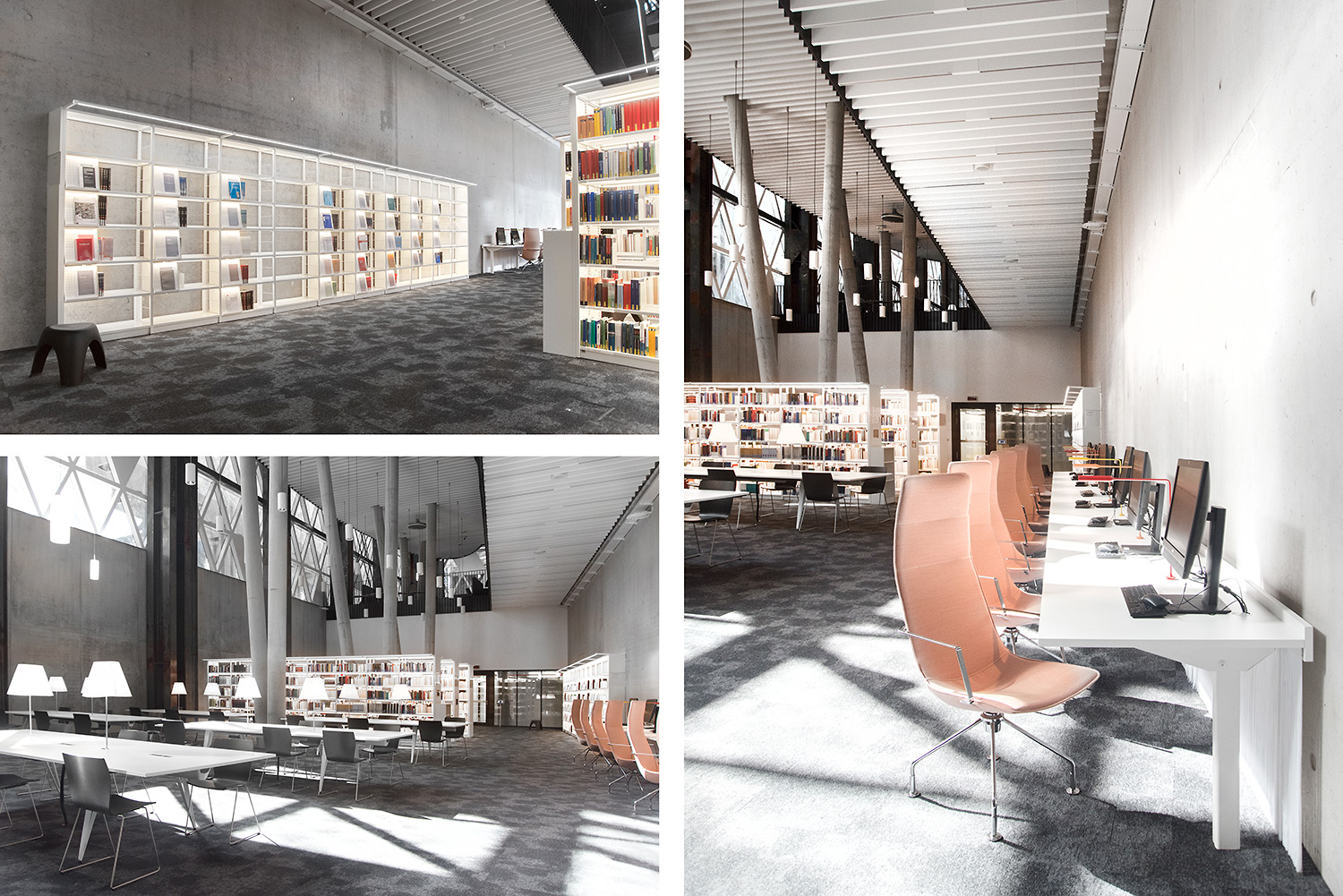 The outstanding architecture and high quality furniture offer an attractive and flexible framework that makes the scientific library an enjoyable place to meet, work and share knowledge.