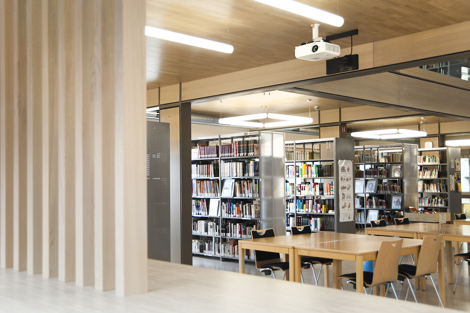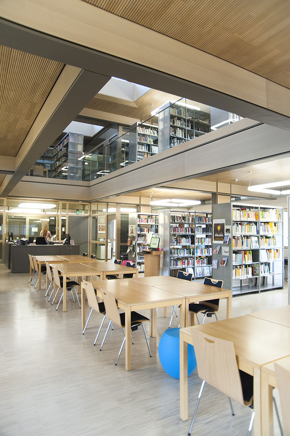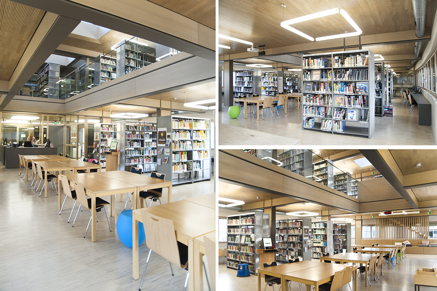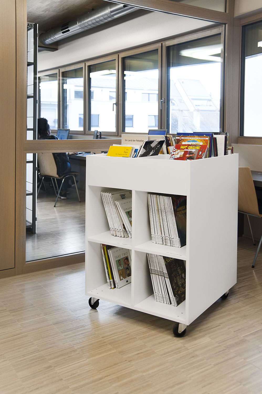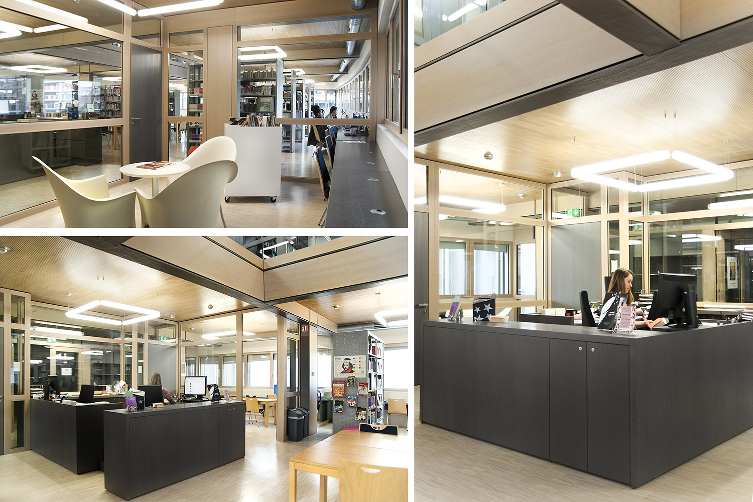 In 2015, a part of the private school Fieldgen in Luxembourg was renovated. The new library was assigned a central location within the site. It was crucial that the library should have a central location. The library is now easily accessible to everyone and can therefore also serve as a classroom or study area. An integrated stage is the perfect place for lectures and performances.