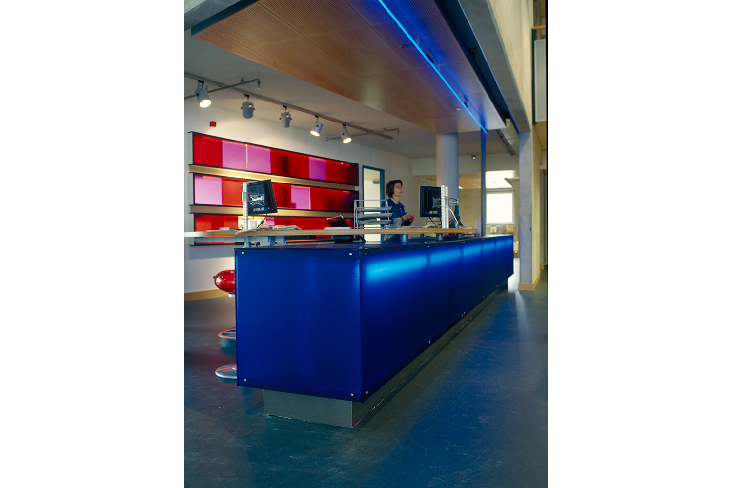 BCI´s Opal shelving system has been an important element in this context, where the end panels’ transparency and neon effect define the entire interior design.