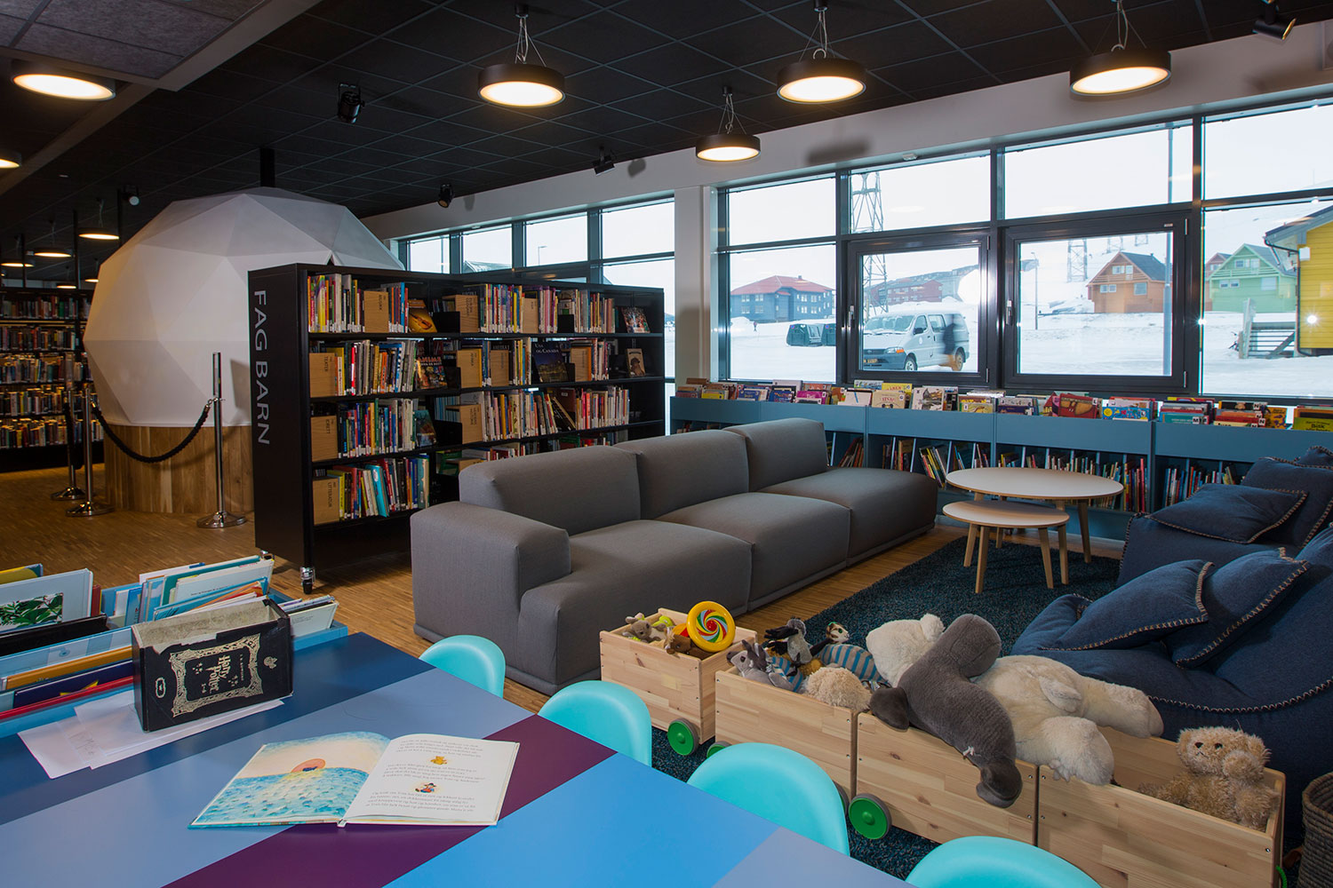 In the middle of the Arctic Ocean at the northern polar circle lies the Norwegian archipelago Svalbard. In the Arctic main town Longyearbyen is the world's northernmost public library placed. The library has been refurbished and now shares location with the cultural house. The number of visitors has doubled since the library opened its doors to the 2,000 inhabitants of Svalbard in June 2017.