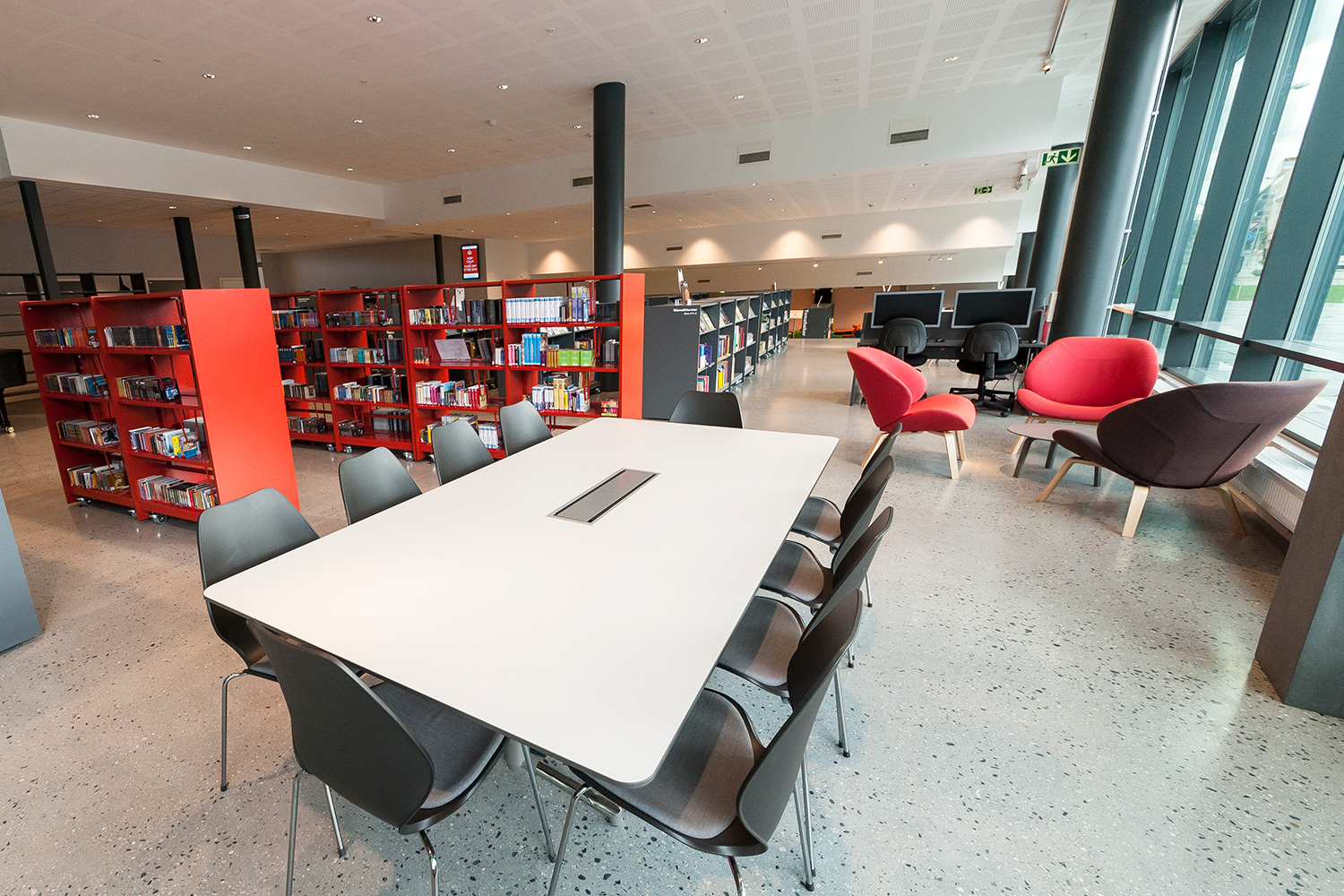 Our sister company, BS Eurobib, has equipped the library with shelving, furniture and interactive solutions.