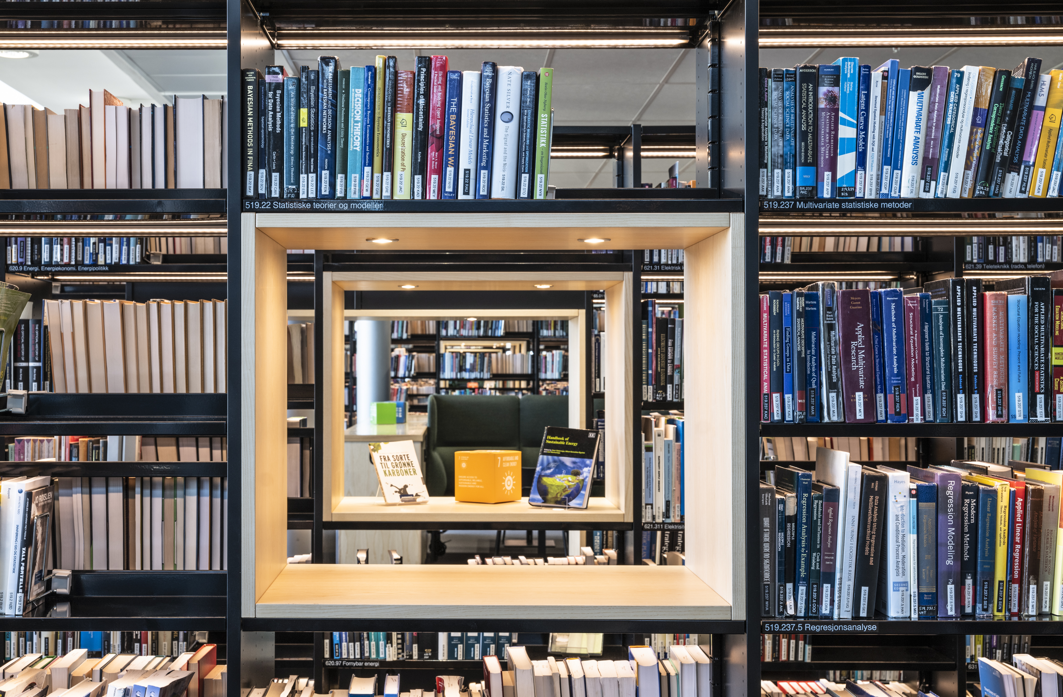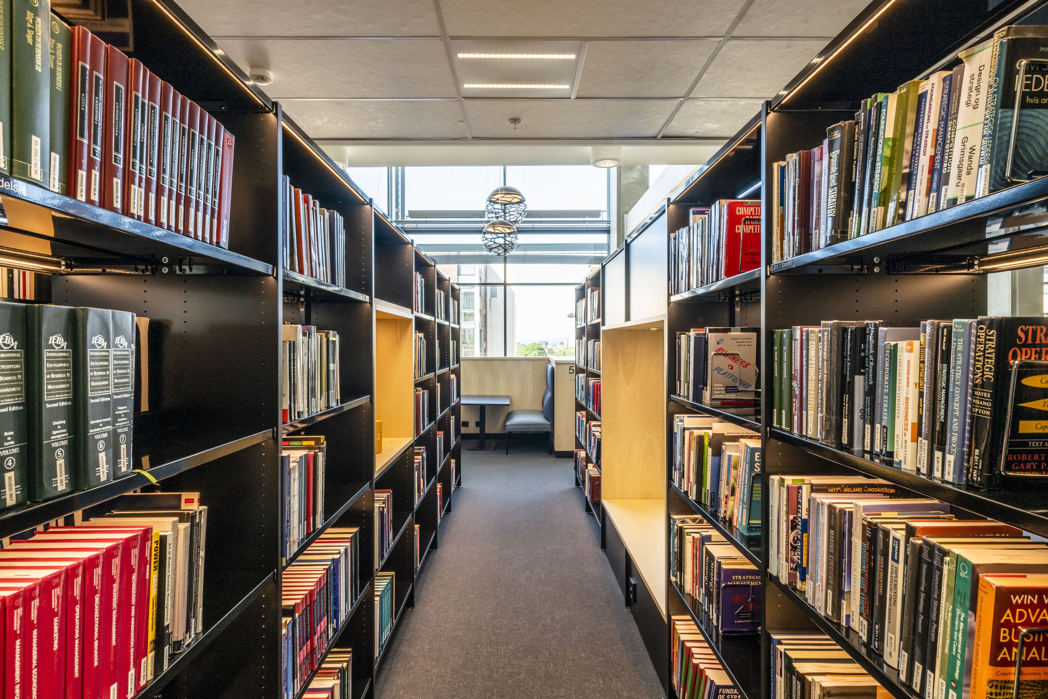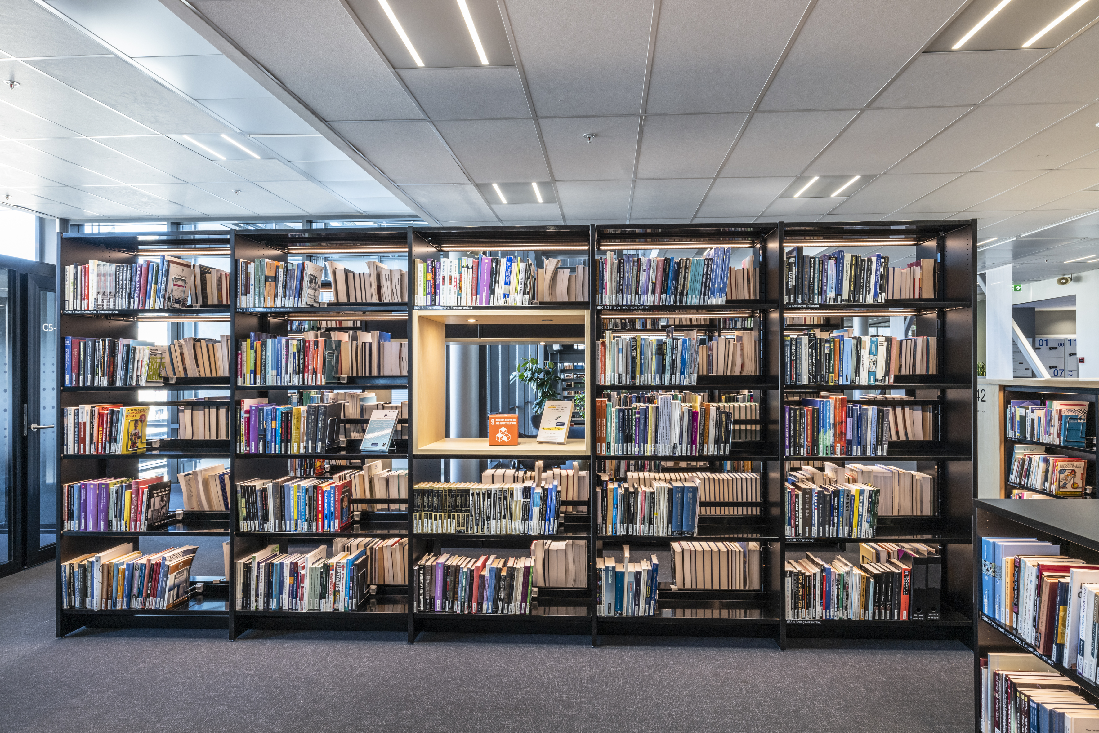 The university decided to renovate the library and all its furnishings in 2022. In collaboration with Input Interiør Oslo, BS Eurobib in Norway has installed all freestanding shelves, along with their accompanying shelf lighting and book supports.