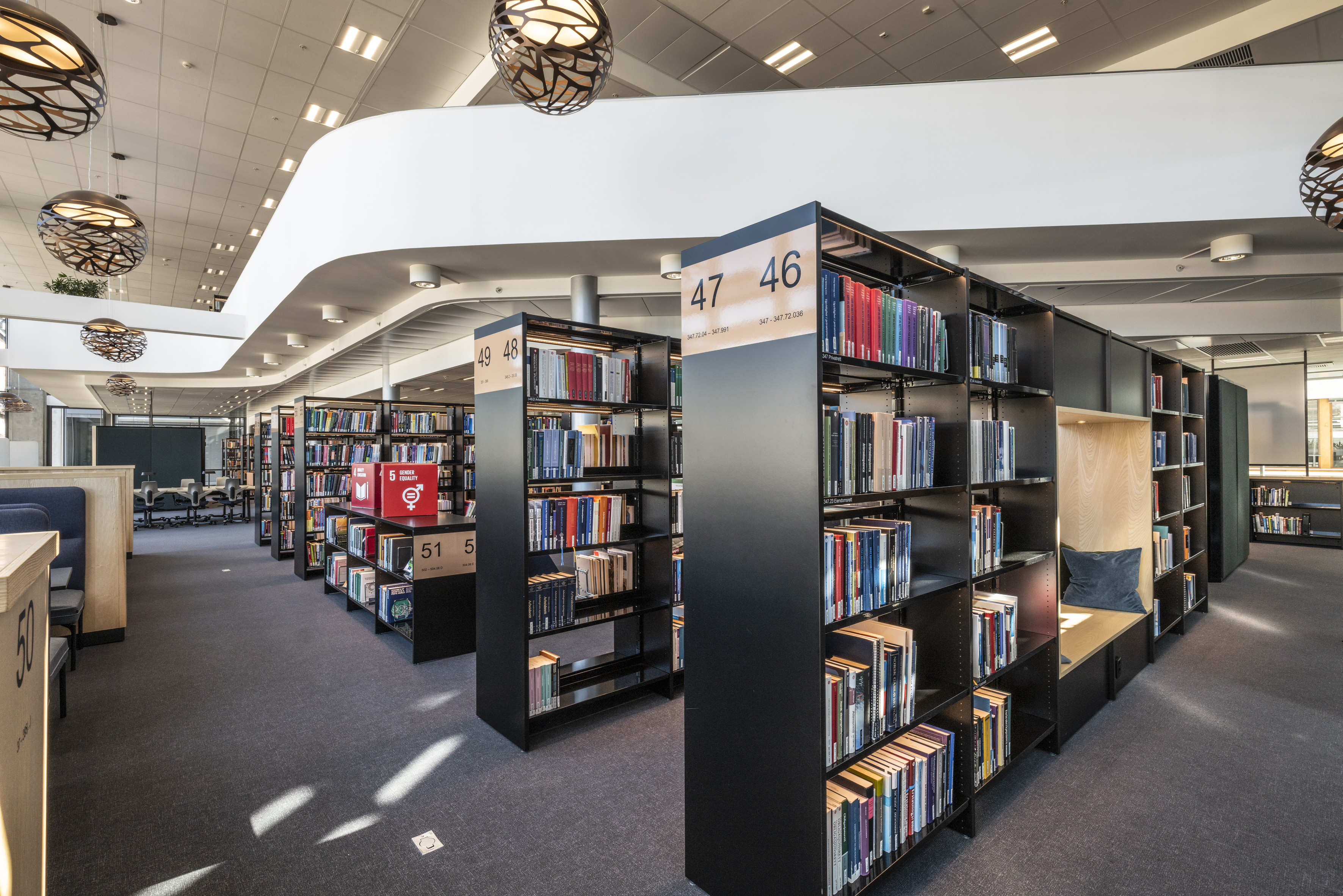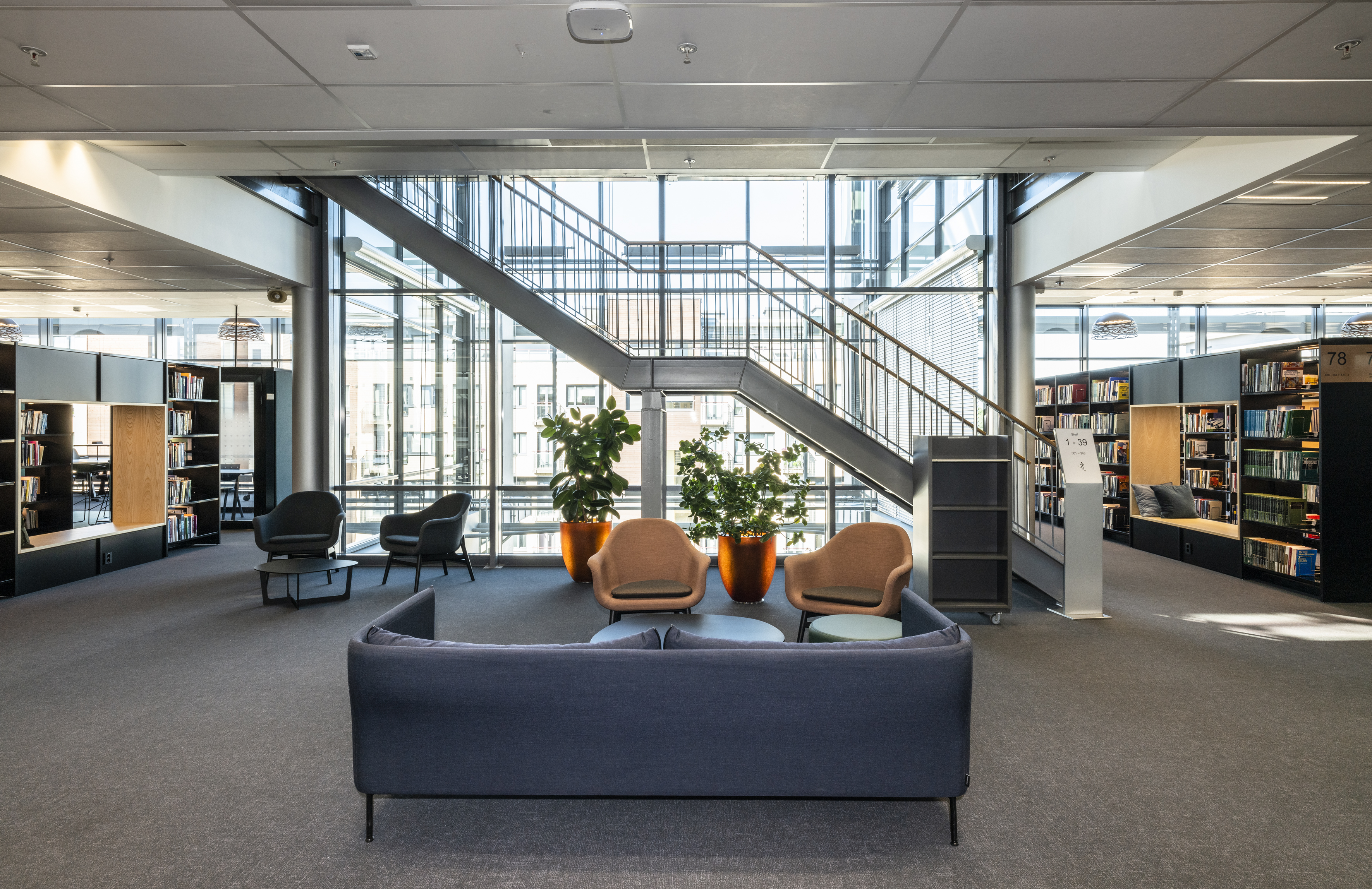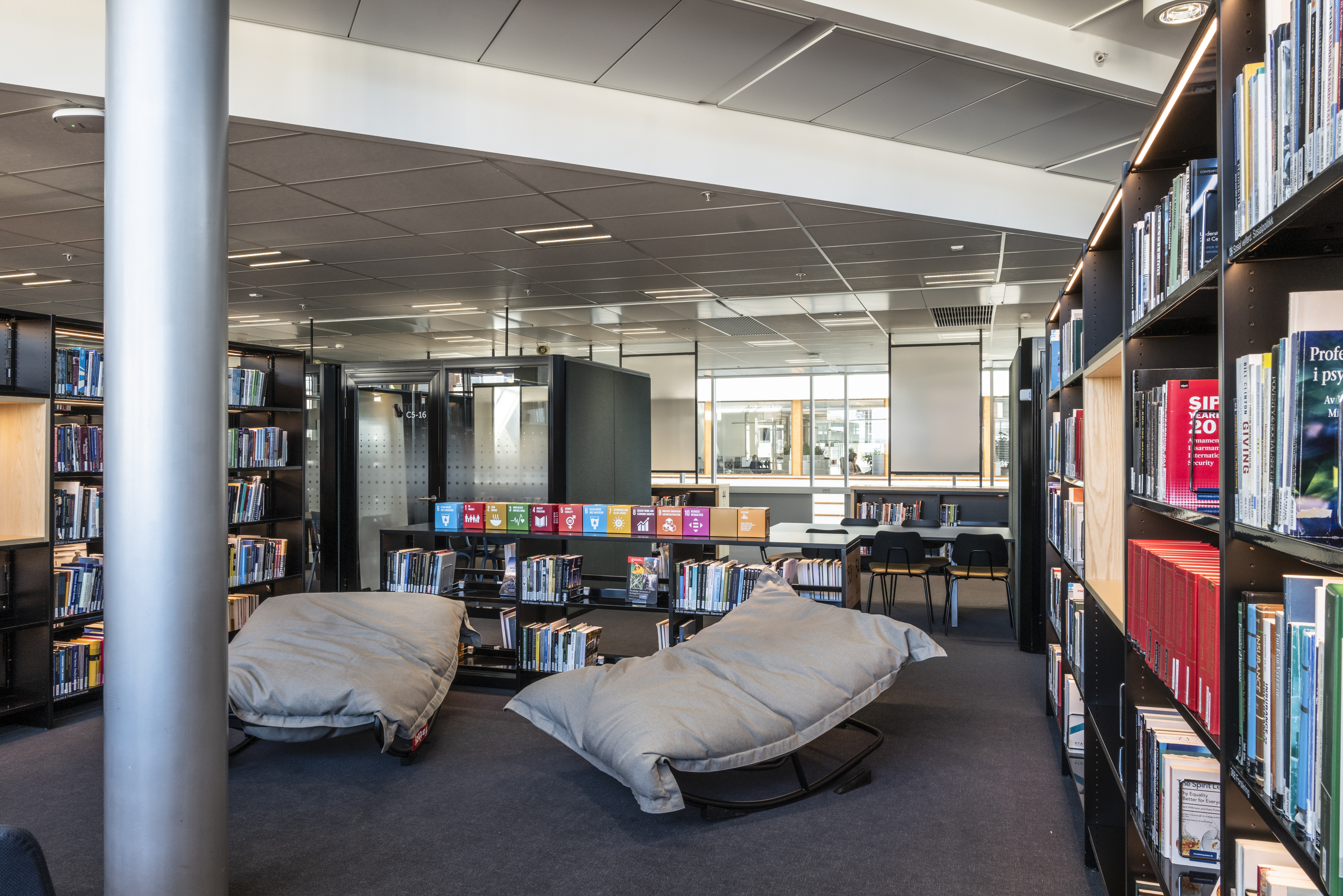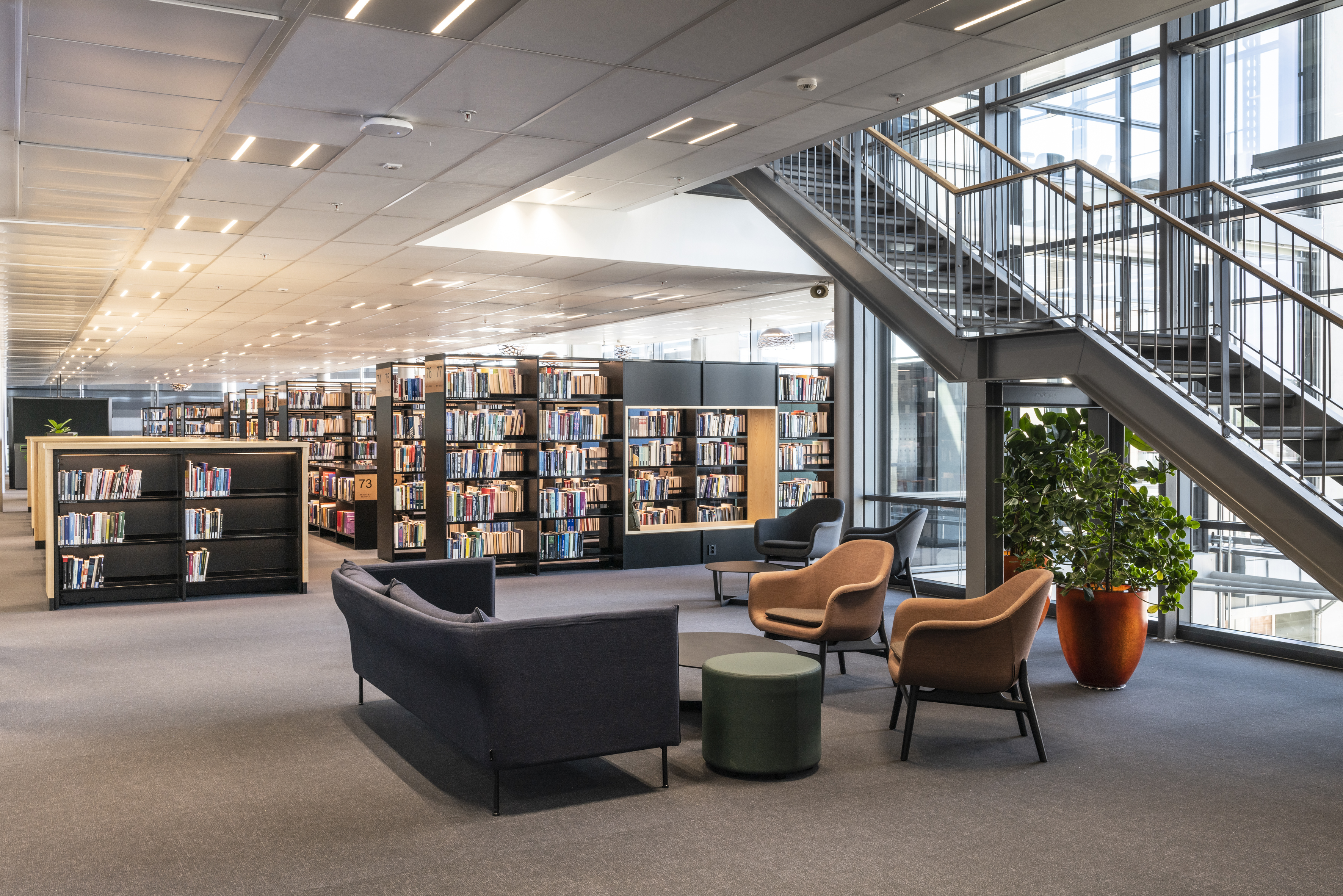 The library at BI Norwegian Business School is one of Europe's most modern research and study libraries. The library envisions itself as an inspiring learning space, which has led to meaningful dialogues and relationships between students and staff, inspiring one another. The students themselves have played a significant role in designing the space, focusing on noise reduction, collaboration, and concentration.
