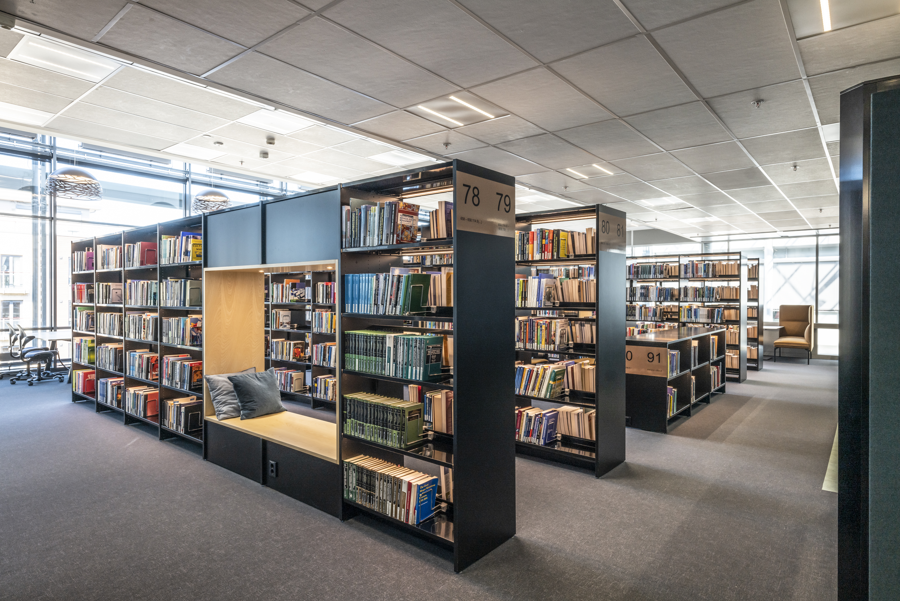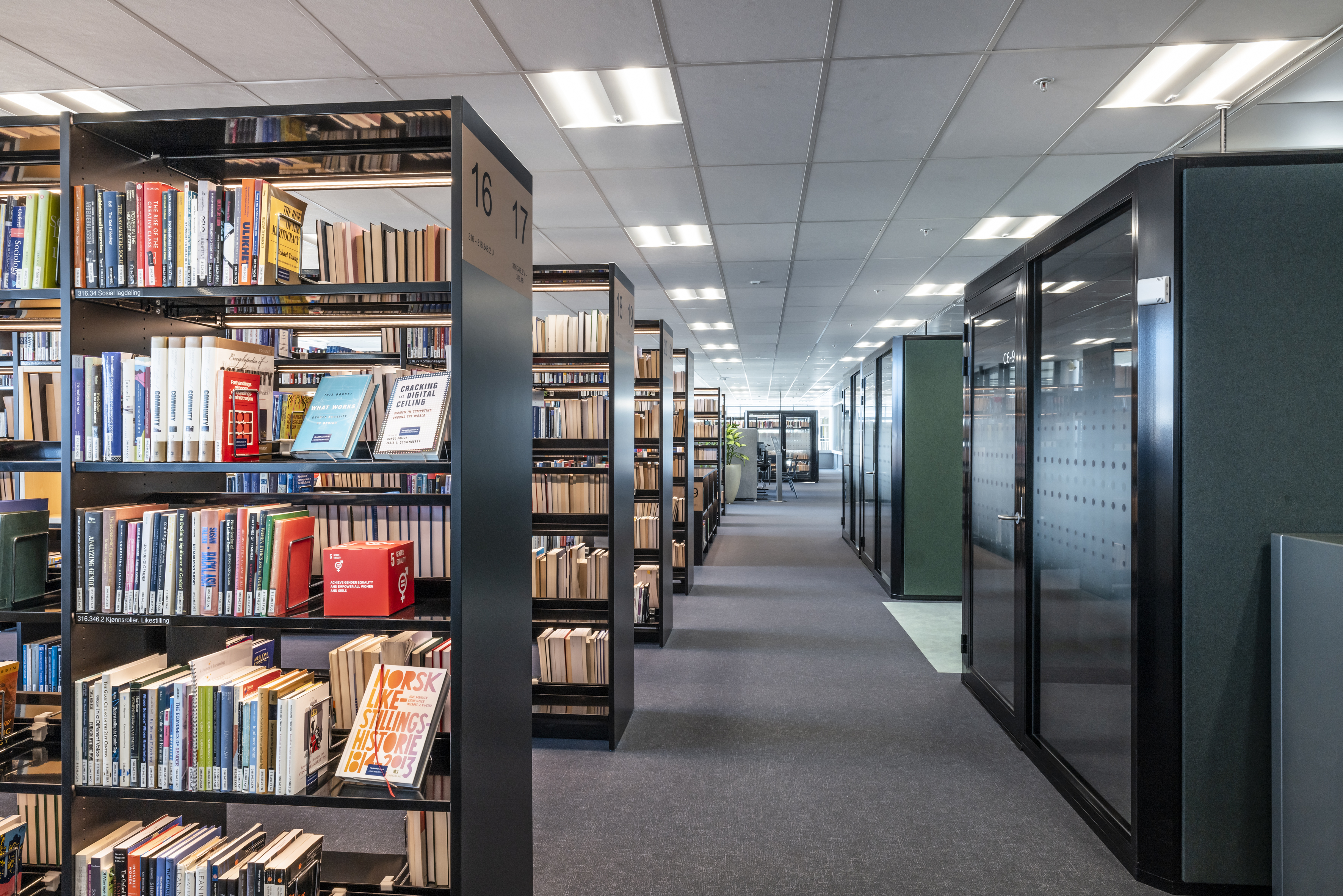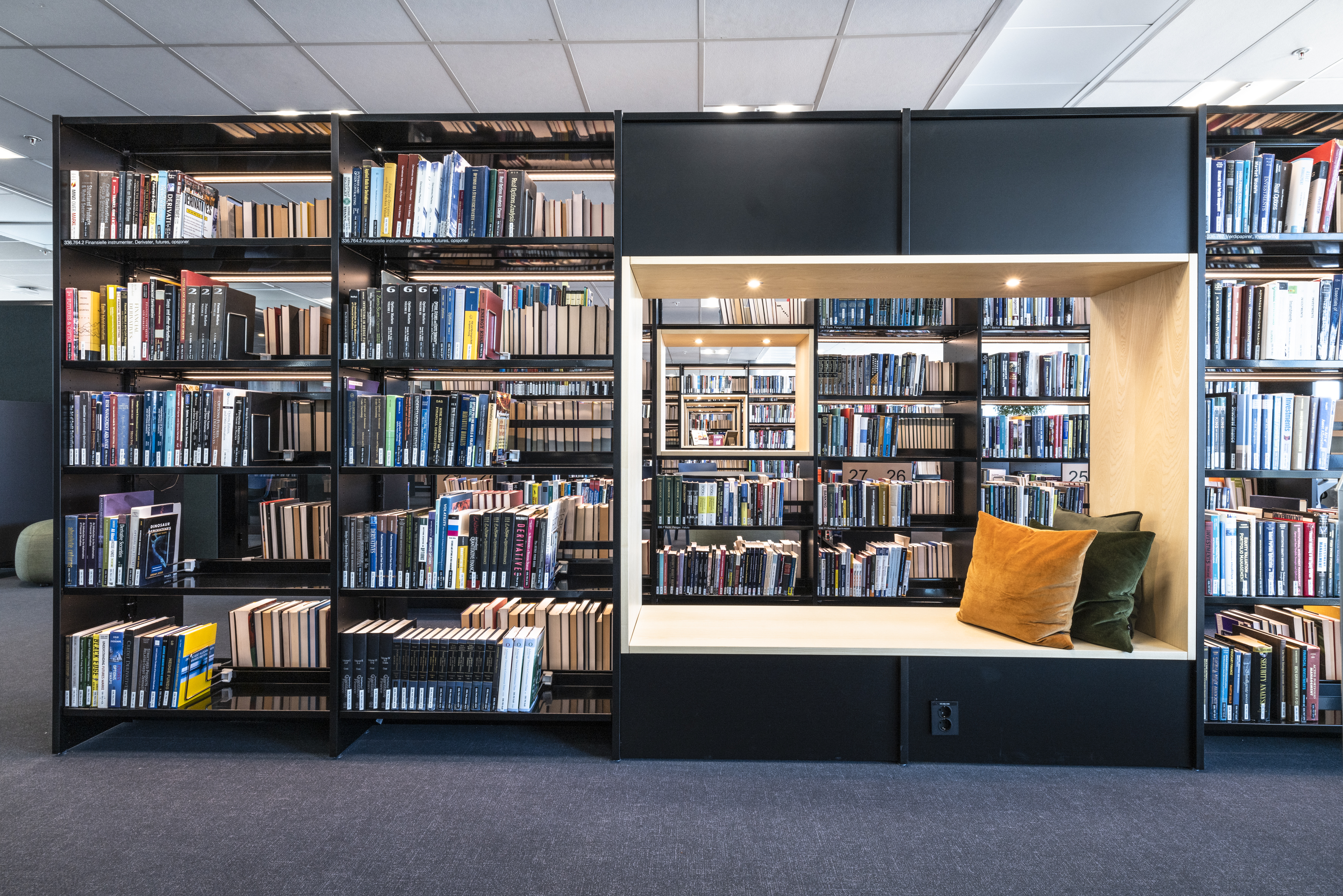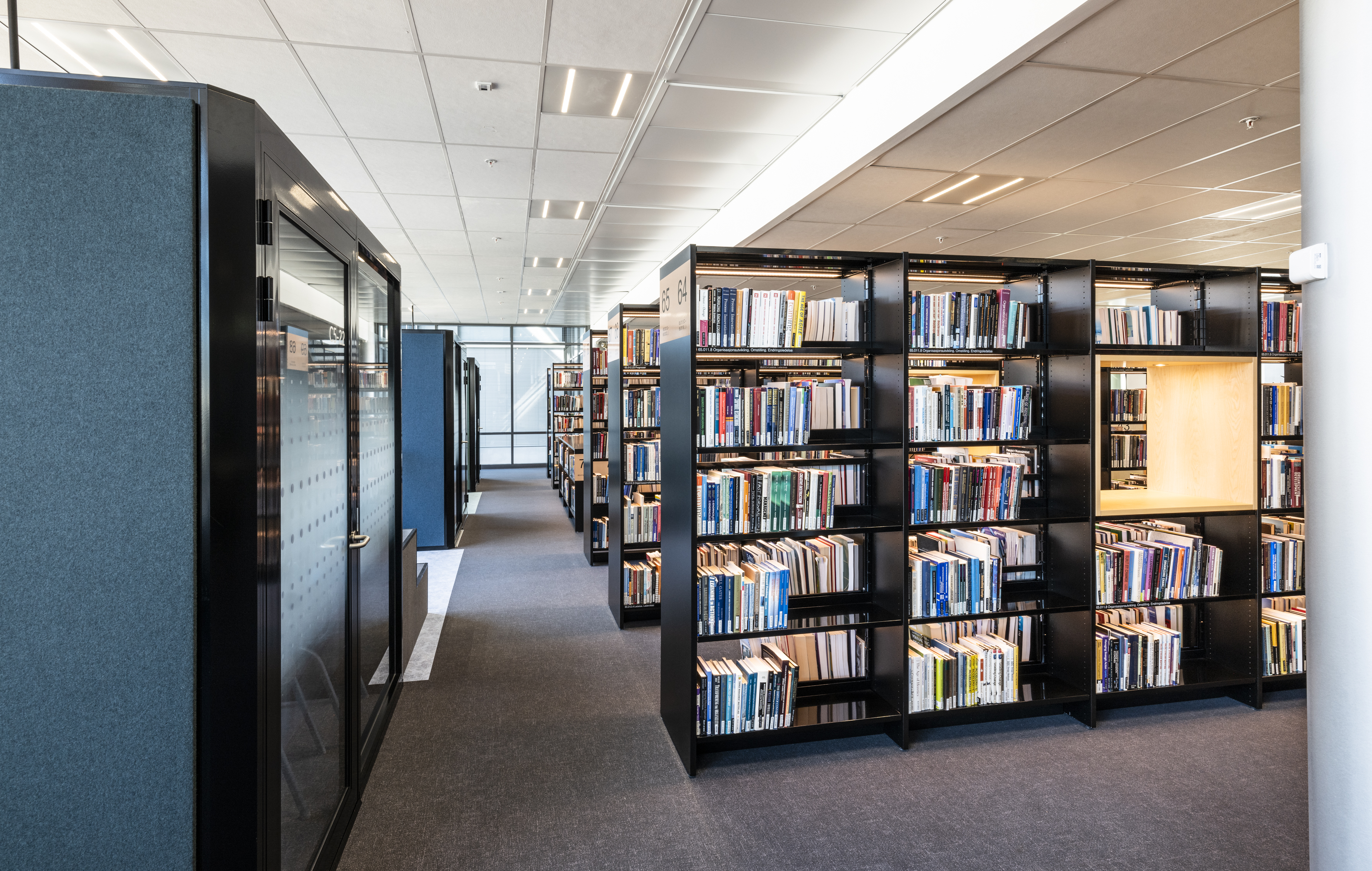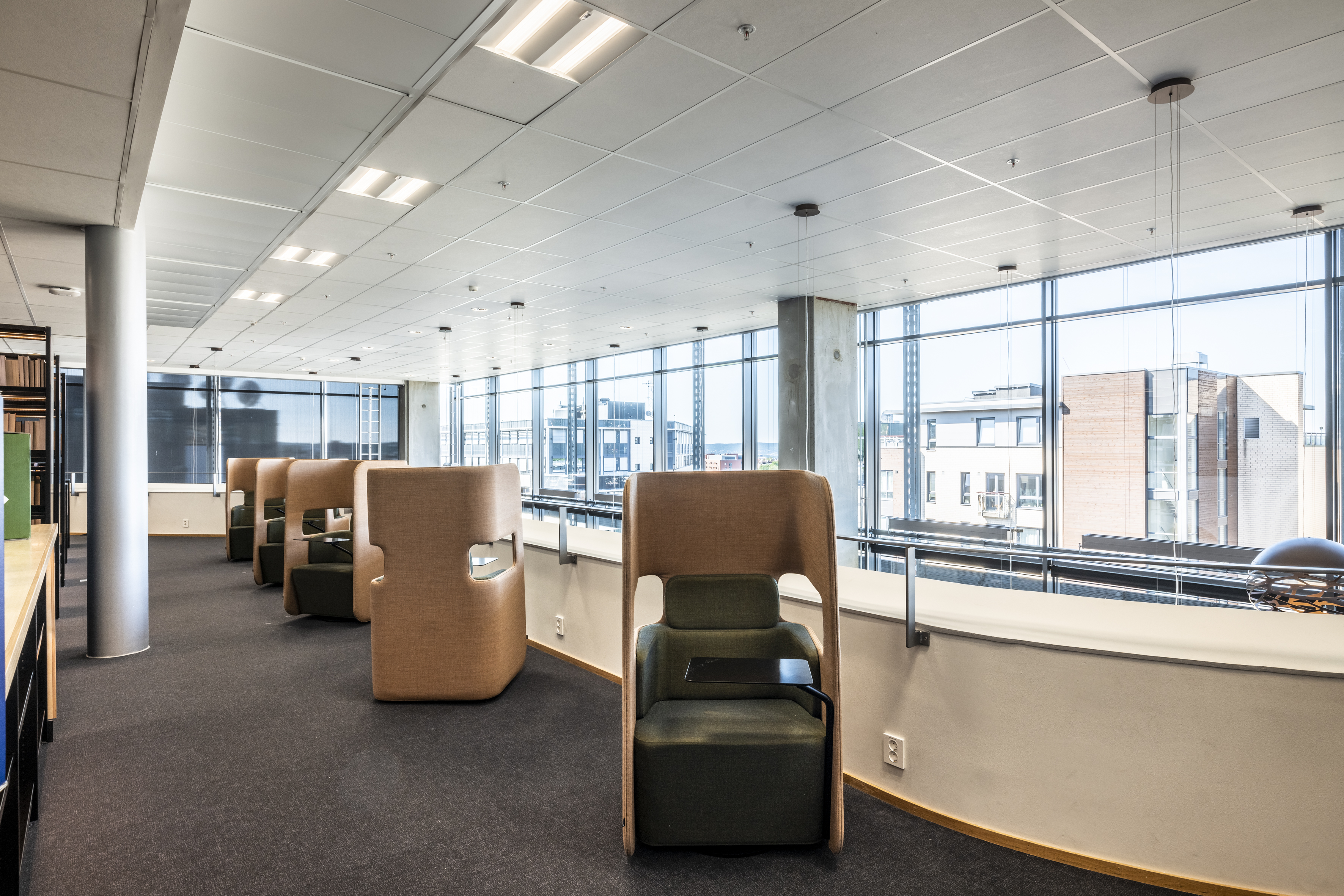 The library at BI Norwegian Business School is one of Europe's most modern research and study libraries. The library envisions itself as an inspiring learning space, which has led to meaningful dialogues and relationships between students and staff, inspiring one another. The students themselves have played a significant role in designing the space, focusing on noise reduction, collaboration, and concentration.