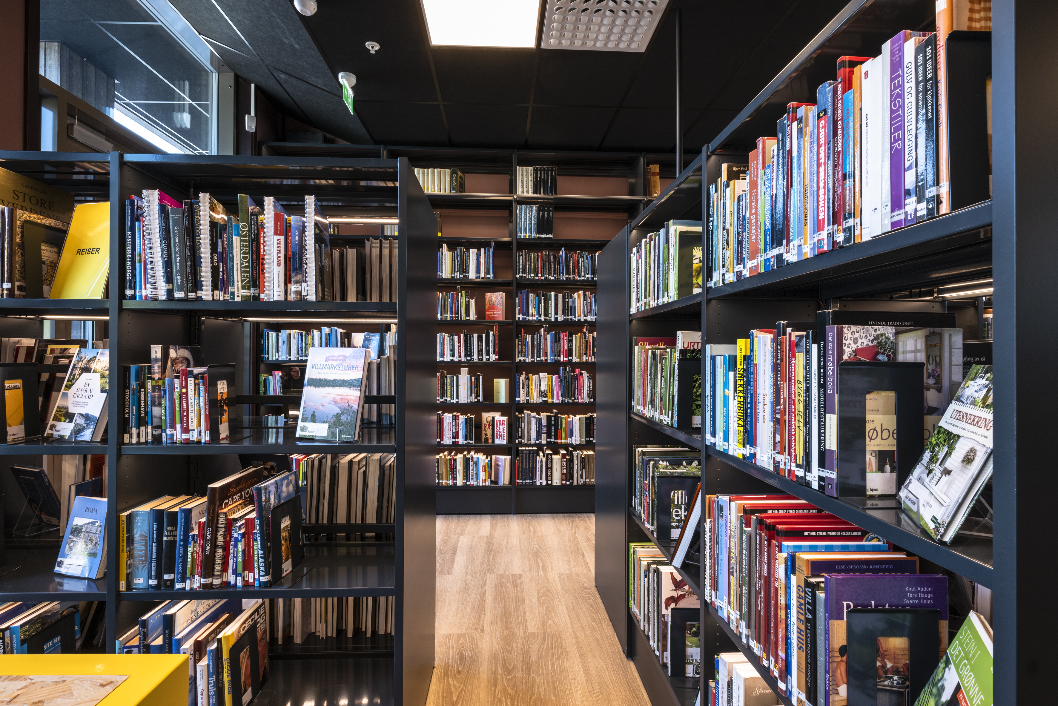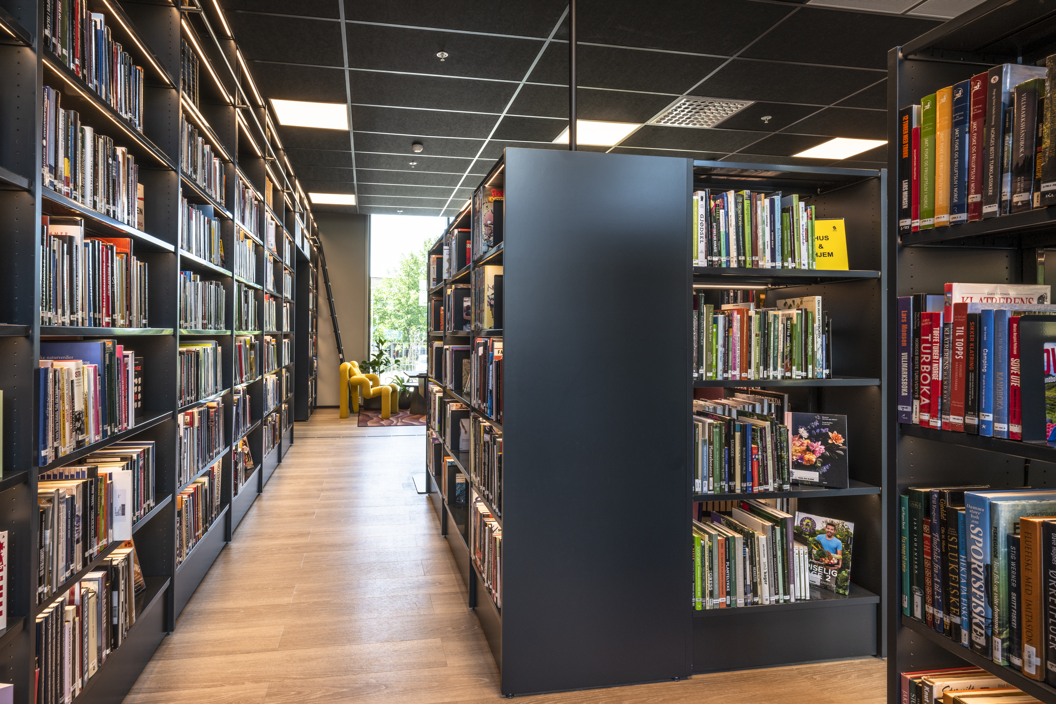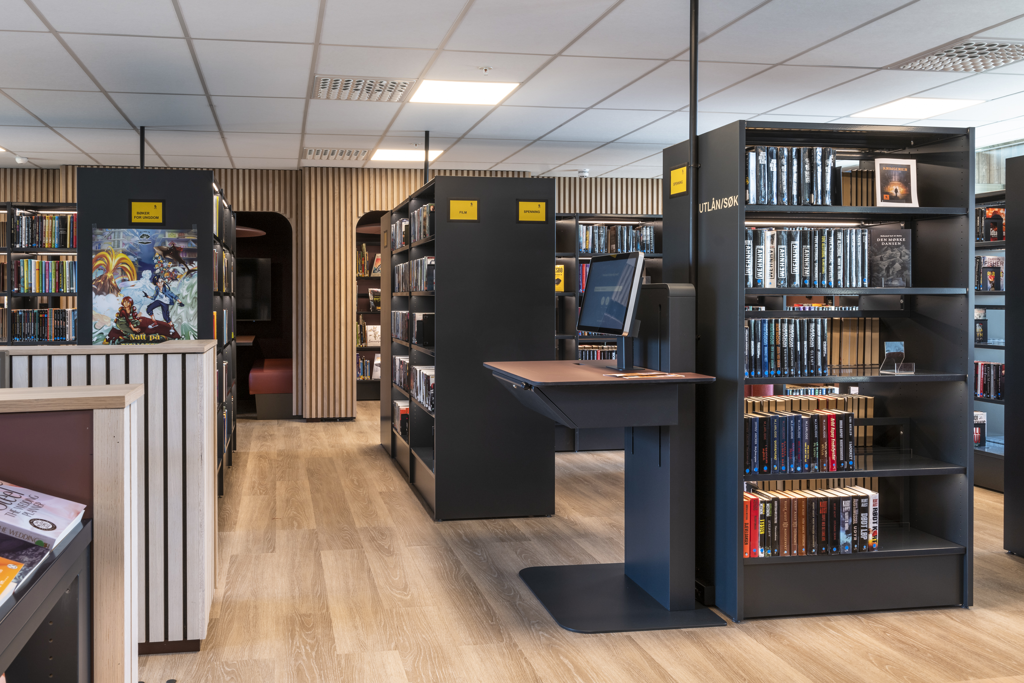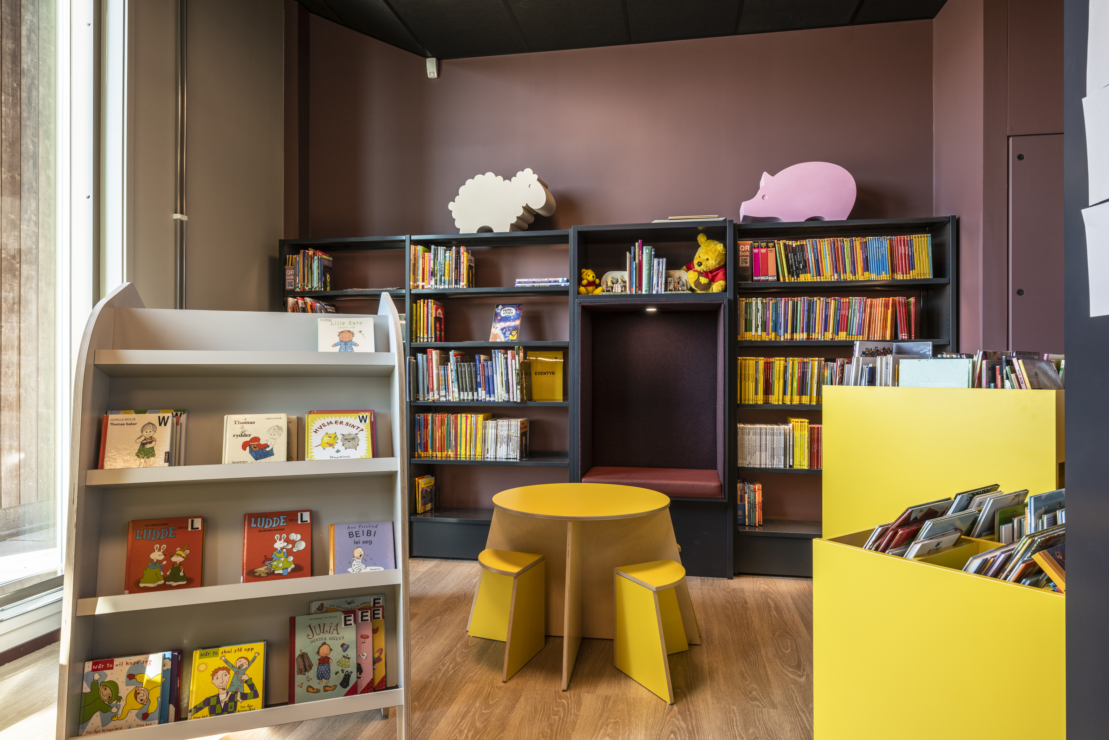 On the first floor, you’ll find the children’s section with colourful furniture and picture book browsers, alongside the adult section for factual material and a magazine zone. On the second floor, fiction for adults can be found with its own “room” for mysteries. The youth section has been given a slightly secluded location at the innermost part of this floor, where young people can retreat to cosy booths for study and teamwork. The local collection can also be found up here, well-preserved in tall shelves with lockable glass doors.