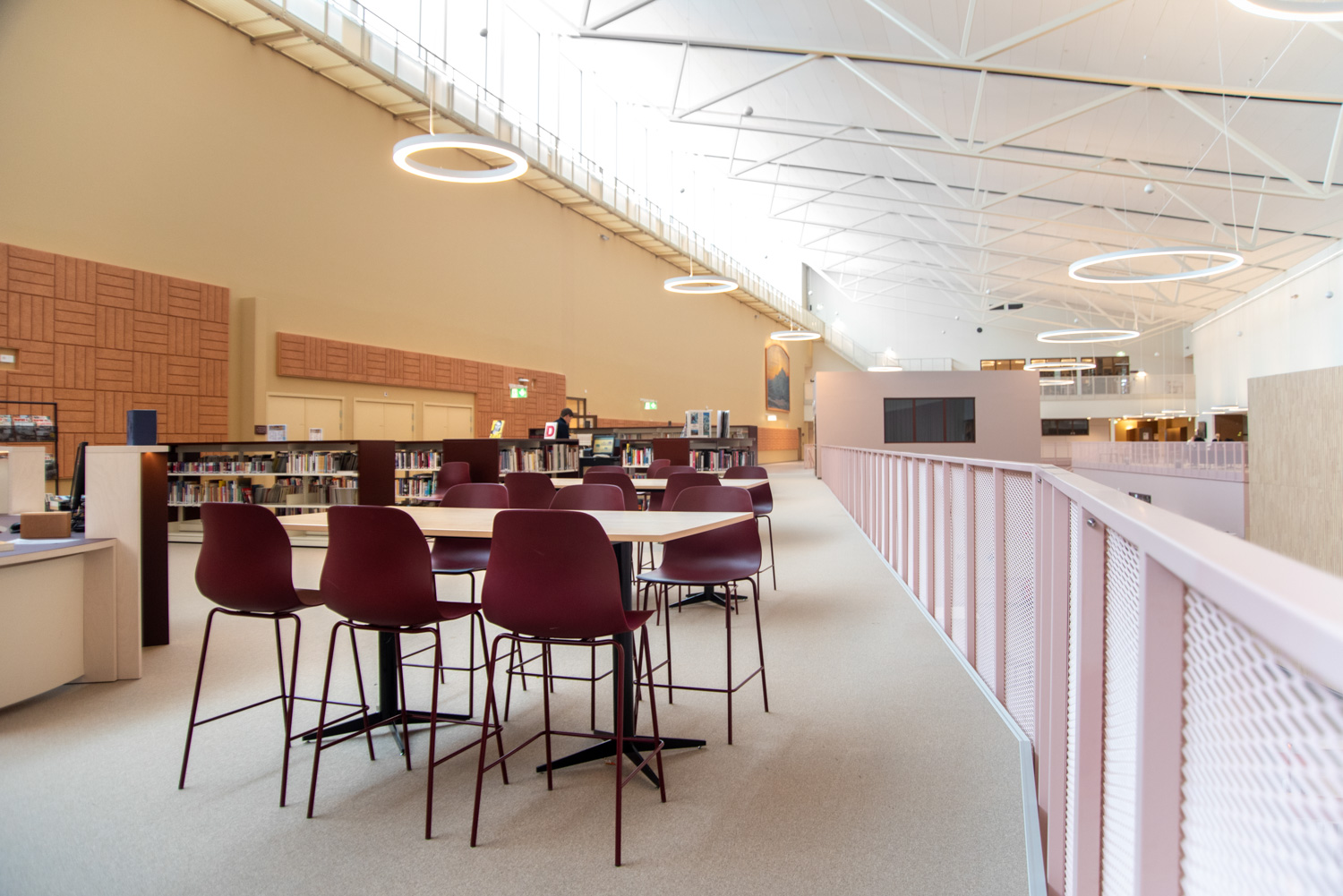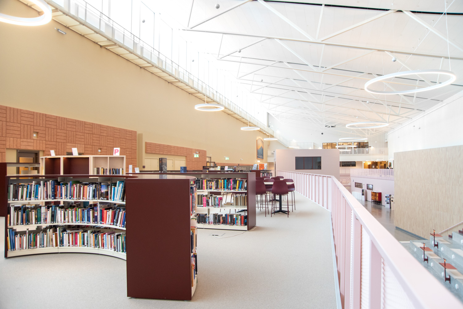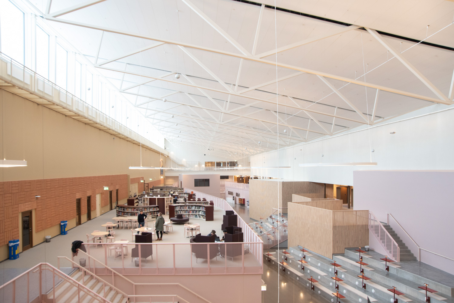 The core of the building is a central square that forms a link between the city of knowledge and the rest of the city centre. From here, the visitor is led into a spacious atrium, where the activities of the city and the school meet in a common and public space. The library is also located here, where a generous amount of daylight comes from large glass sections near the roof, which invite visitors to look up at the sky and follow the different characteristics of the seasons.