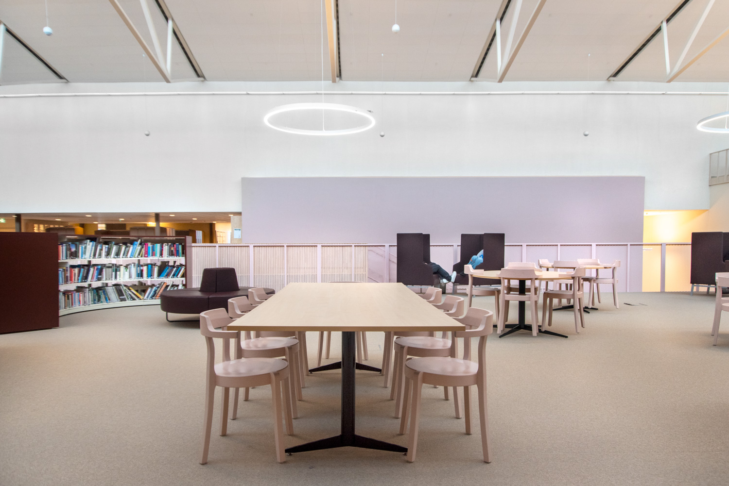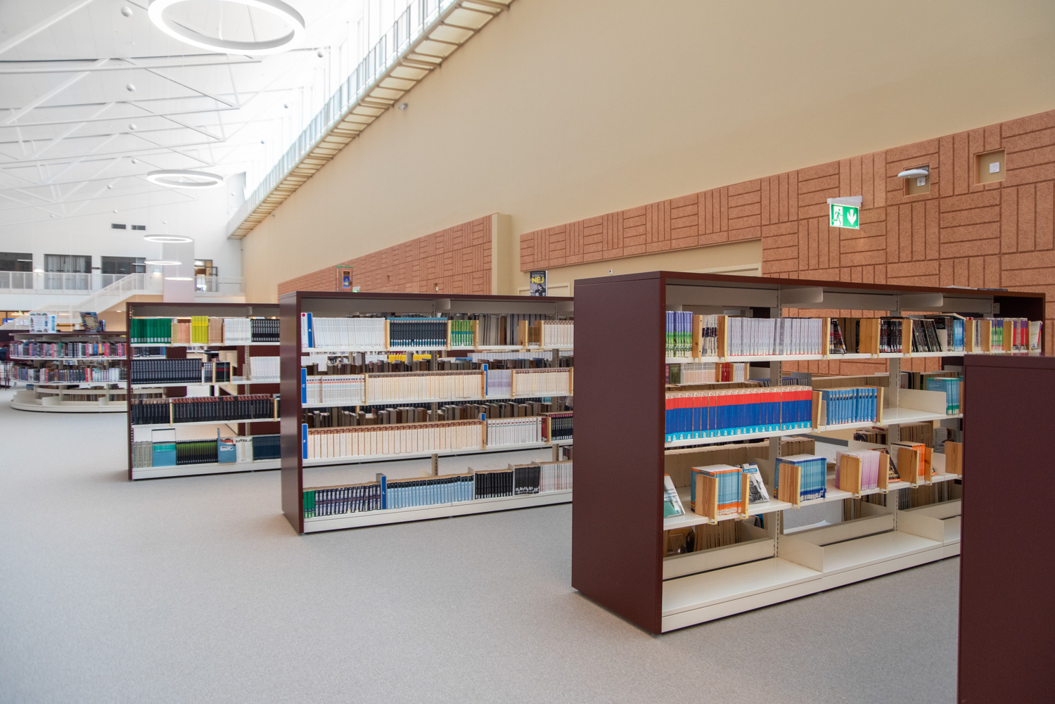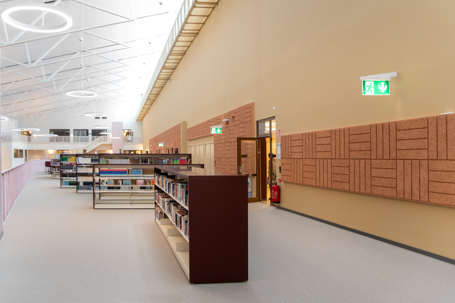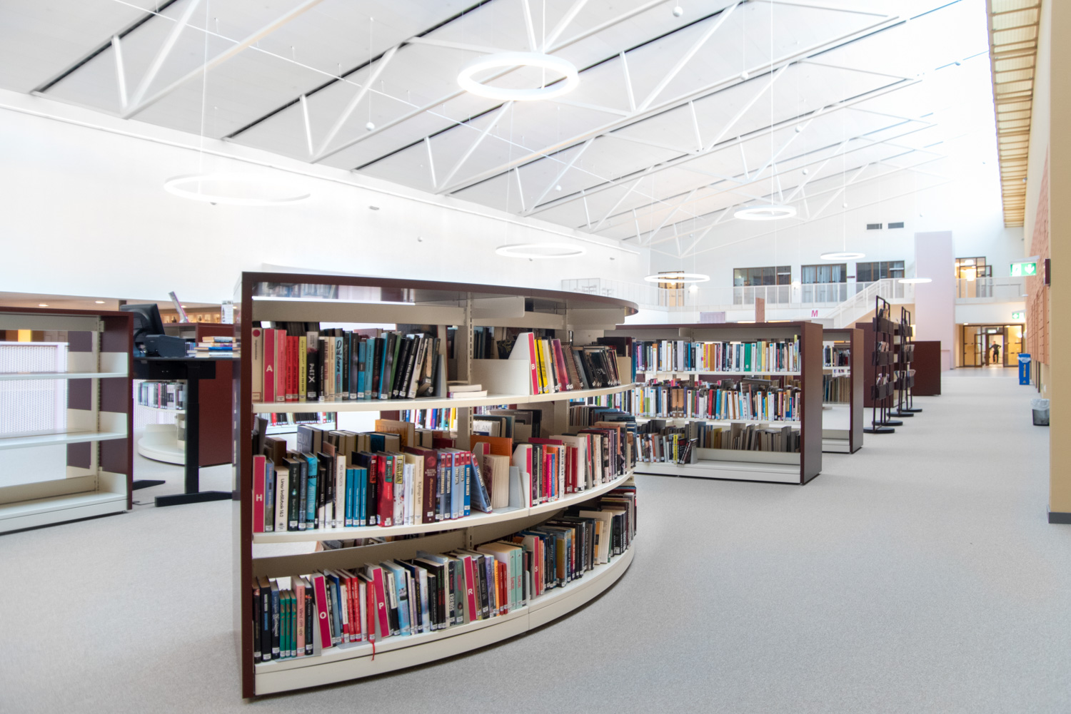 The core of the building is a central square that forms a link between the city of knowledge and the rest of the city centre. From here, the visitor is led into a spacious atrium, where the activities of the city and the school meet in a common and public space. The library is also located here, where a generous amount of daylight comes from large glass sections near the roof, which invite visitors to look up at the sky and follow the different characteristics of the seasons.