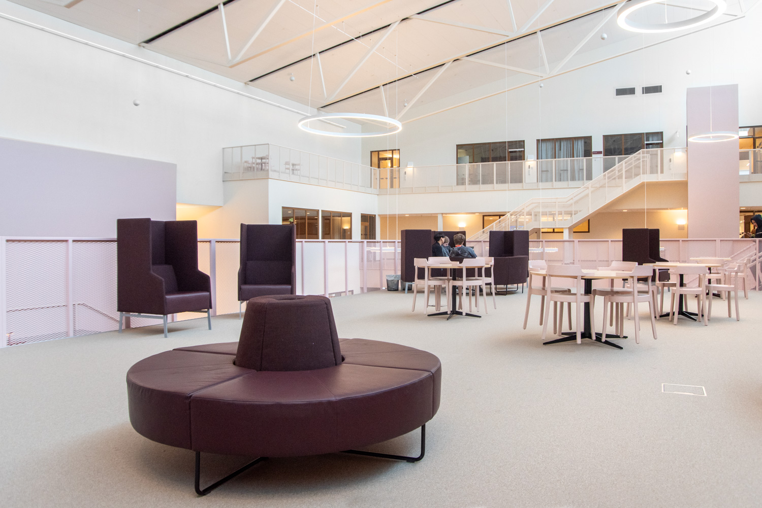 In the interior design, great emphasis has been placed on creating inviting environments that highlight the elements of nature. The inspiration is taken from the annual changes of the polar sky, with natural and untreated materials in interaction with contrasting materials and colours.