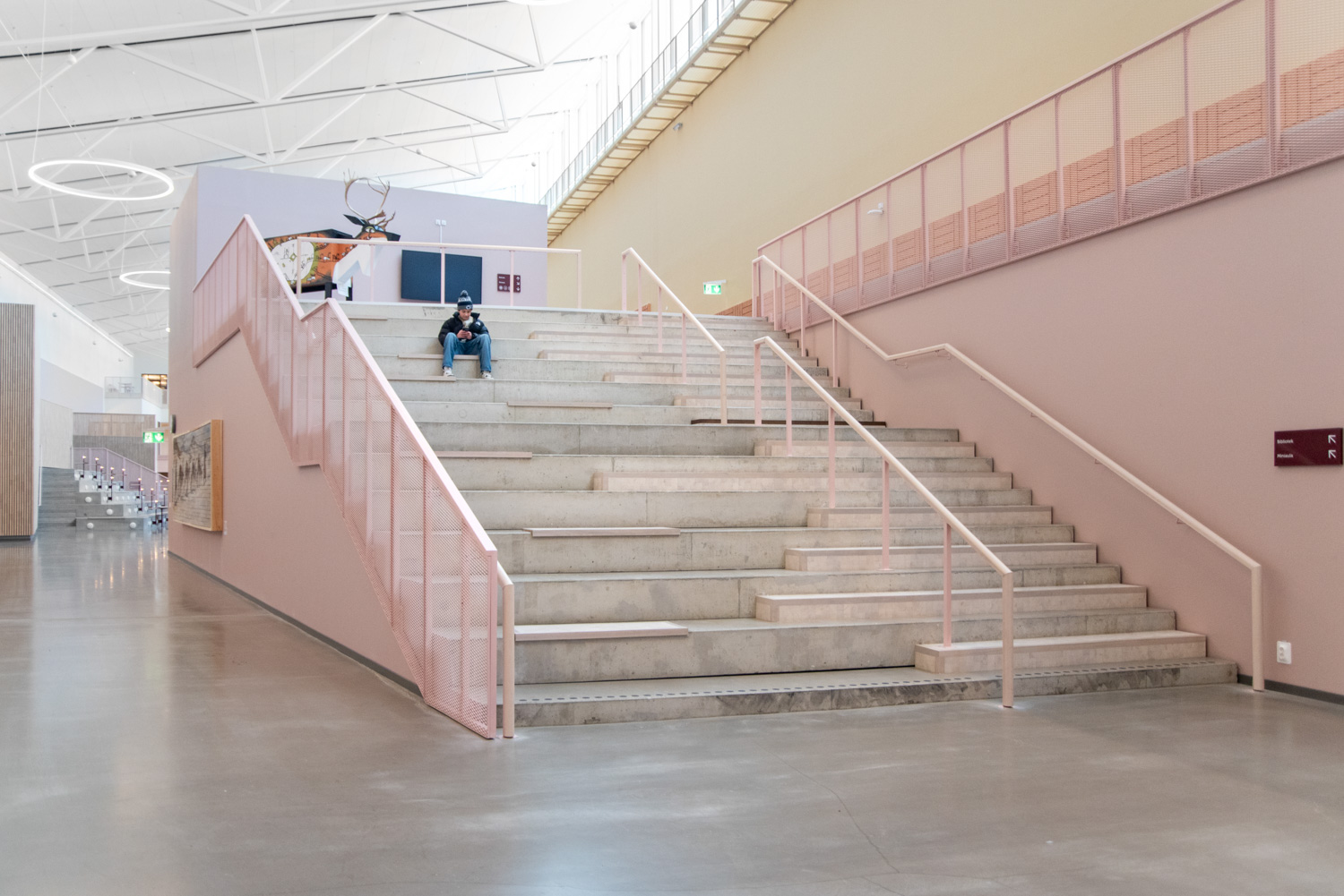 In Kiruna a 40,000 m2 education centre is located in extension of the city park, where several educational facilities work together; a culture school, a high school with theoretical and practical fields of study and a university with adult studies. The building also contains a sports hall, library and exhibition areas as well as a café and restaurant open to the public.