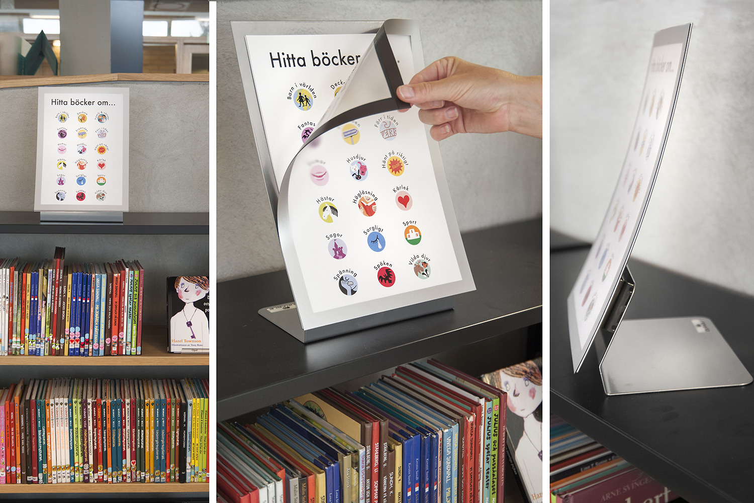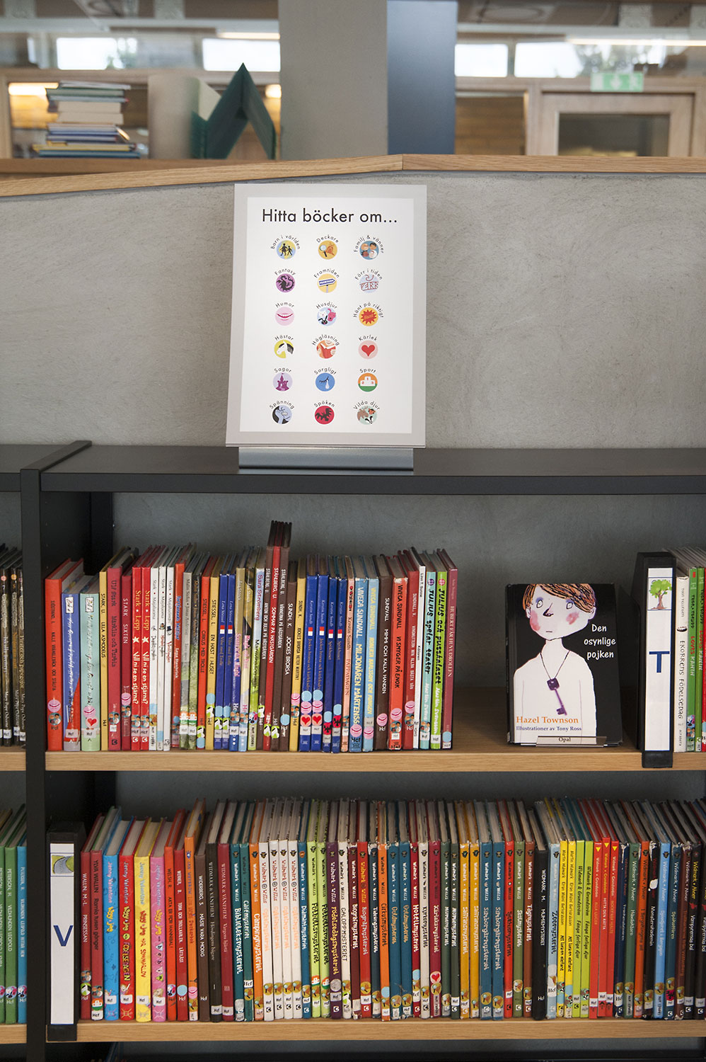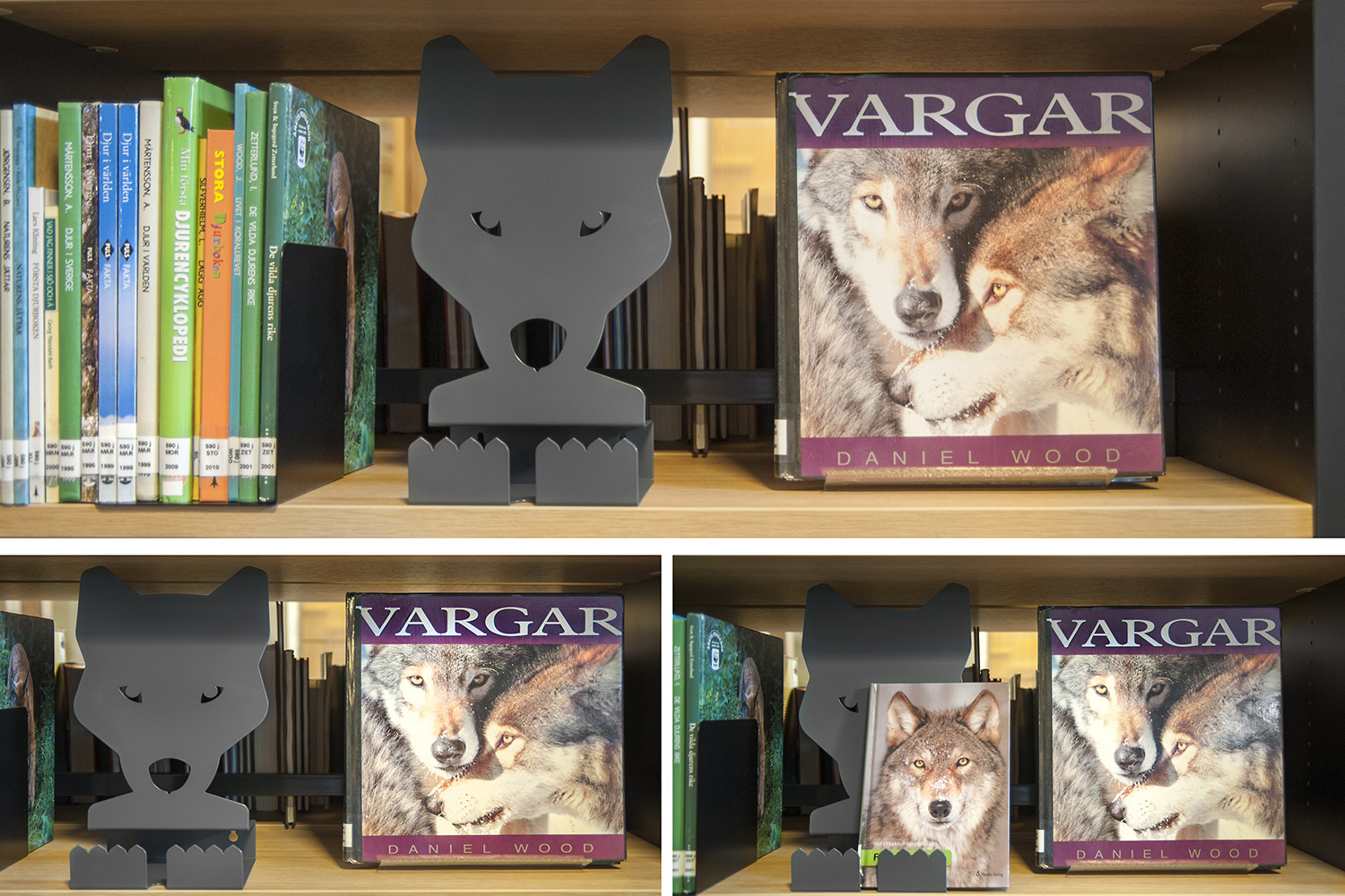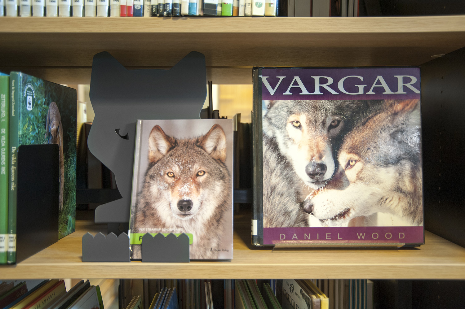 The library especially focuses on displaying and making books and other material easy accessible by using symbol labels to mark book spines. Display stands in an attention-grabbing format such as Owl, Rabbit, Wolf and Lion are used as focal points for books and other media in an inspiring and enjoyable way. Next to the “easy to read” shelving system the owl family sits on the wall showing exciting book titles!