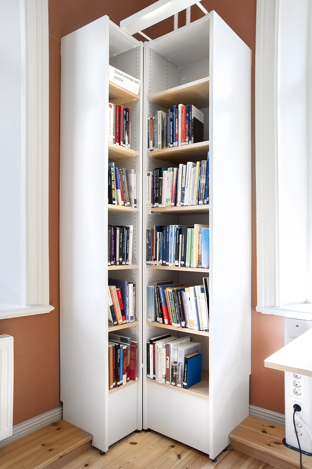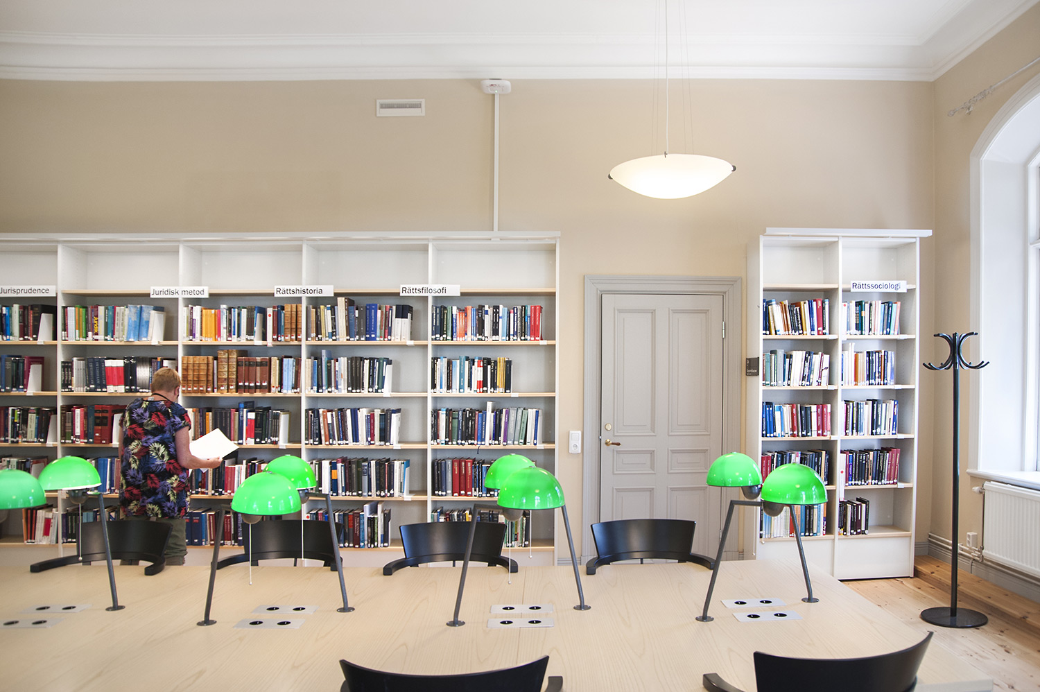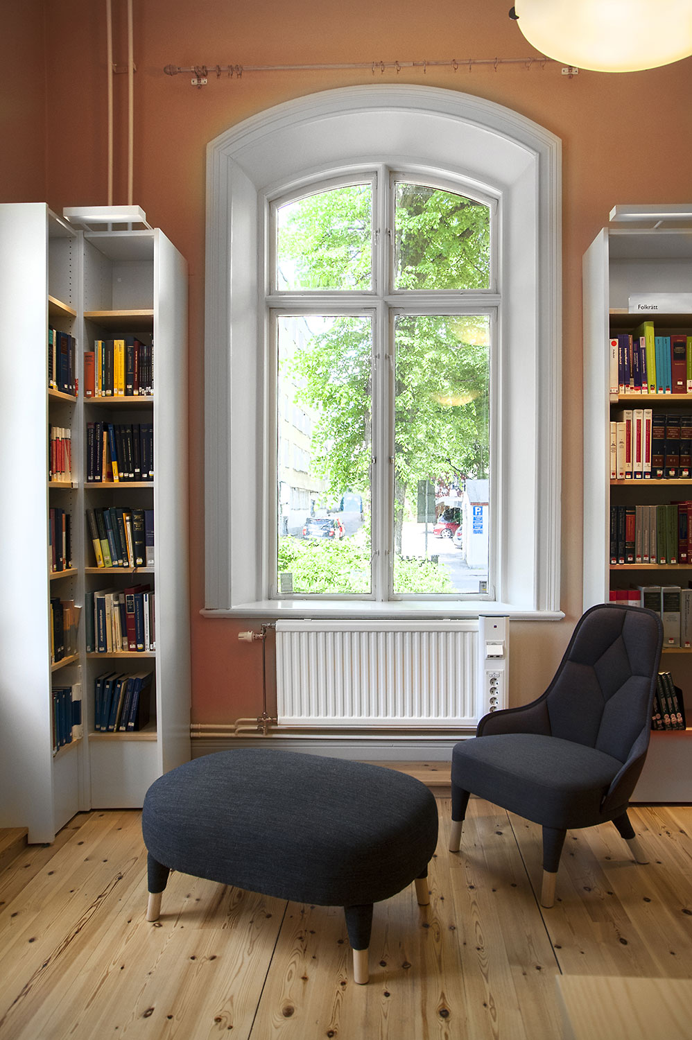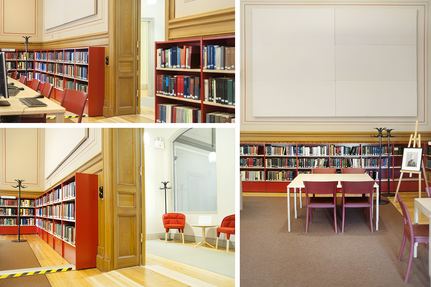 A listed building results in some challenges with the interior of a library where the shelving needs to be adapted for the characteristics of each room with regards to plumbing, sockets and wiring on the floor. The shelving system we have worked with in this project and that now decorates the library and fulfill the needs is Frontline with lacquered panels and shelves in ash.